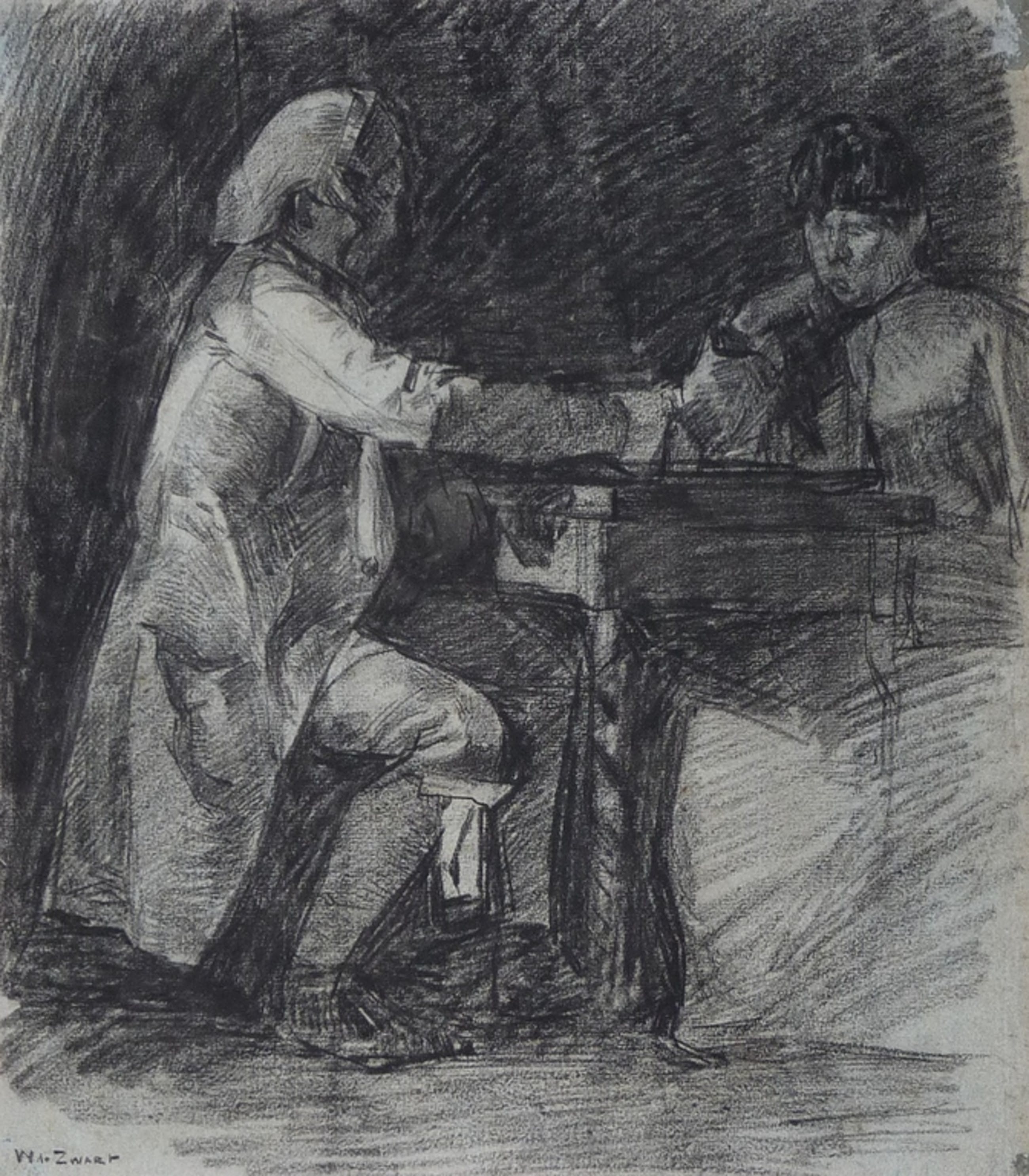 *Zeer fraai gedetailleerde tekening van de bekende kunstenaar van de Haagse school Willem de Zwart. Het werk is voor 100% gegarandeerd. De kenners zullen de kwaliteit van dit werk onmiddelijk herkennen. De tekening is gemaakt op groengrijs Ingrespapier.