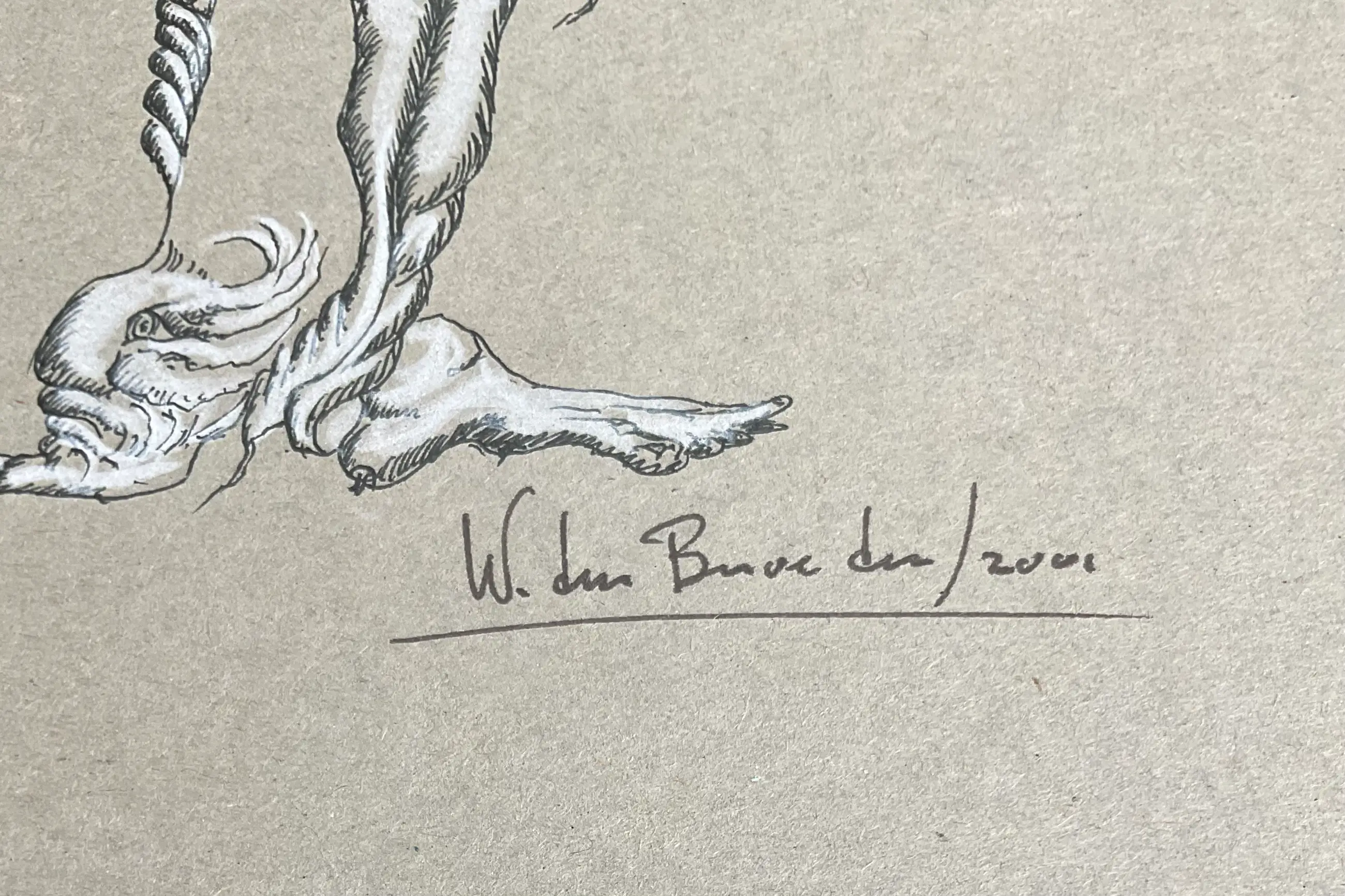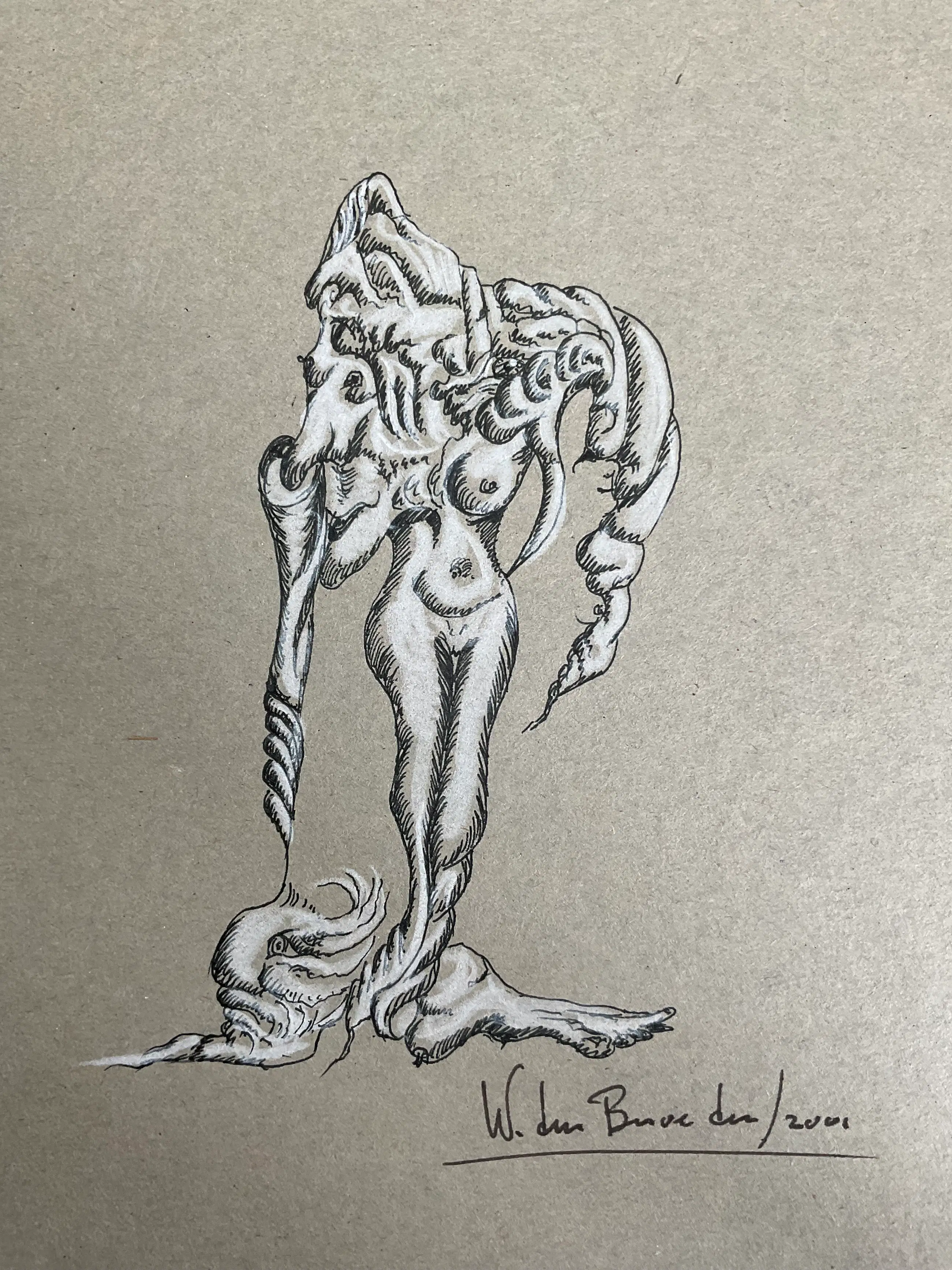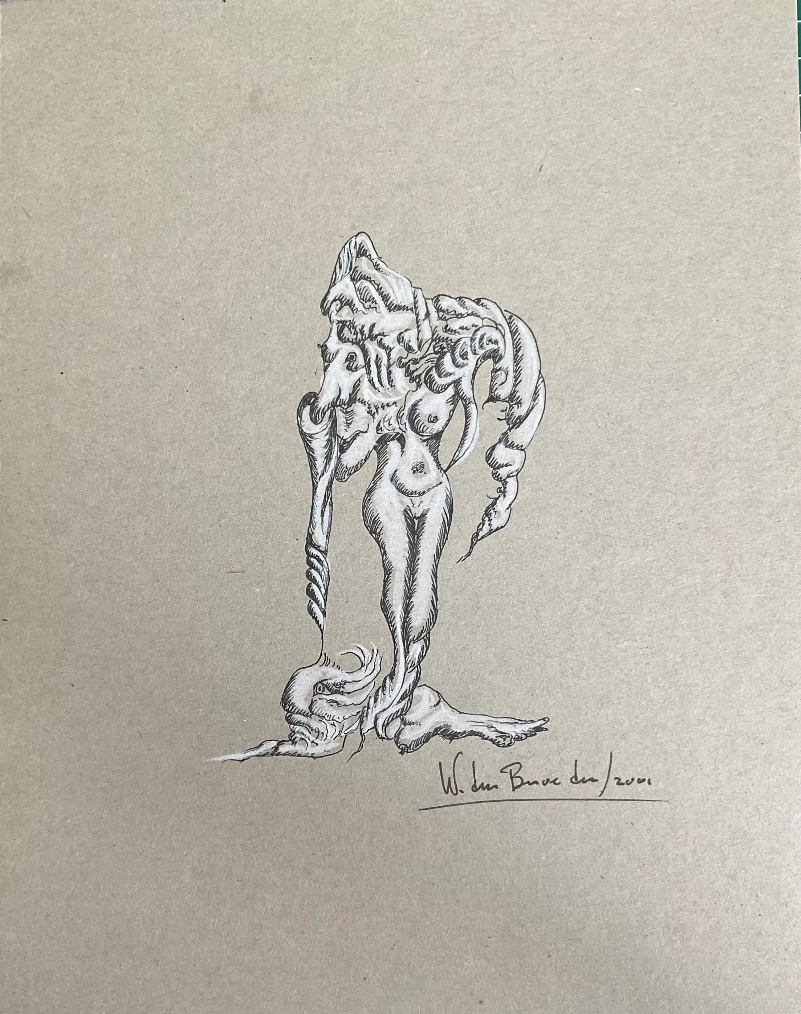 ‘Verwarring ’ is een automatisch gemaakte tekening, inkt en conté op karton. Het werk is uniek! Levering zonder lijst