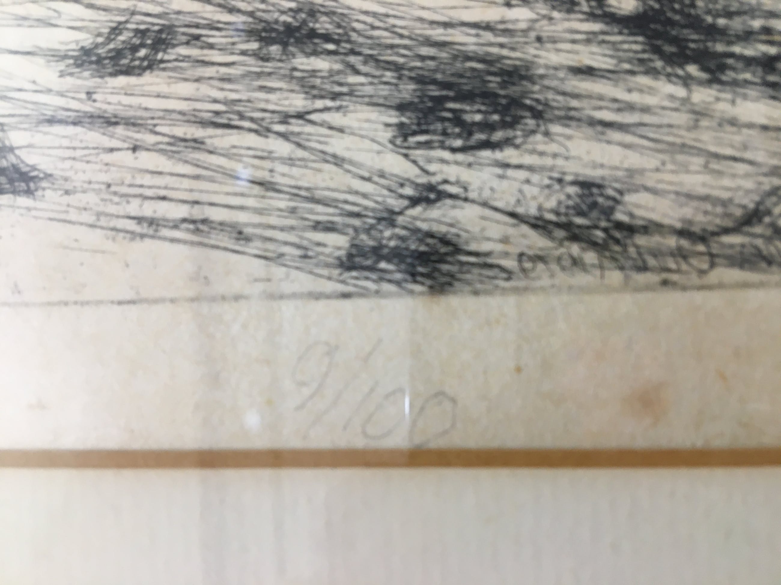 Grote ets door Willem den Ouden met passe-partout en mooie lijst met een koper randje. Nr 6 van 100 . Het formaat van het beeld is 41 x 51.