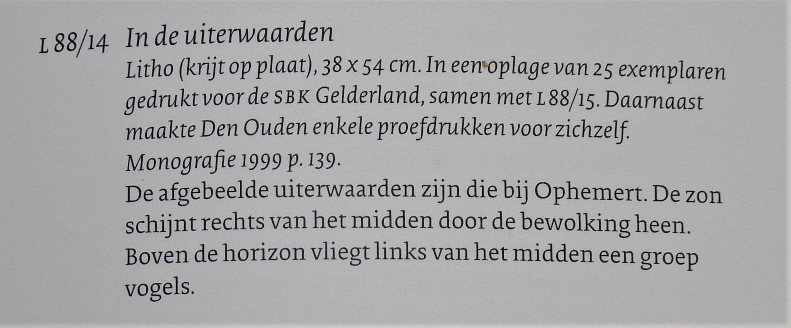 *Fraaie ets in van de bekende graficus en schilder Willem den Ouden. *Beeldmaat is 38 x 54 cm. Papiermaat is 50 x 65 cm *In potlood van links naar rechts: Eigen druk 3/25 den Ouden * Afgebeeld in boek Leven en werk van Willem den Ouden op blz.169 - L88/14 - In de uiterwaarden. *Verzending is aangetekend, verzekerd en goed verpakt.