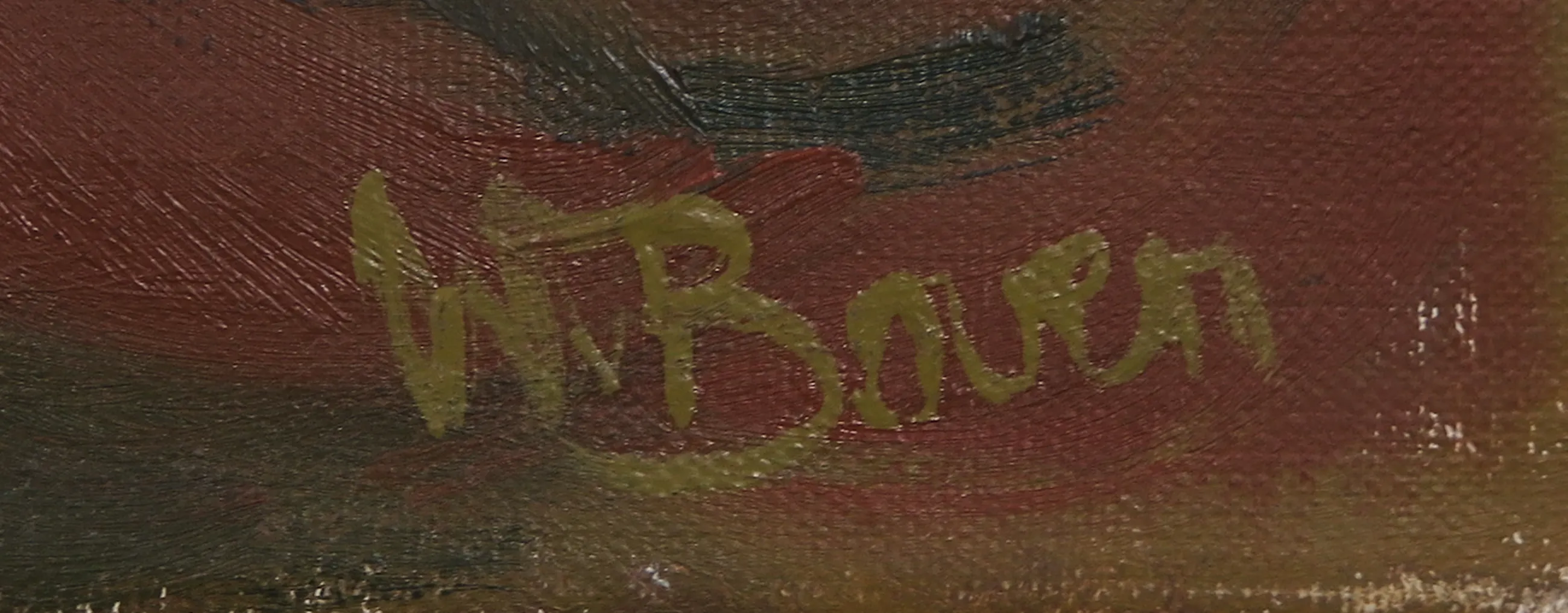 | Enkele krasjes en beschadigingen op het doek. | |