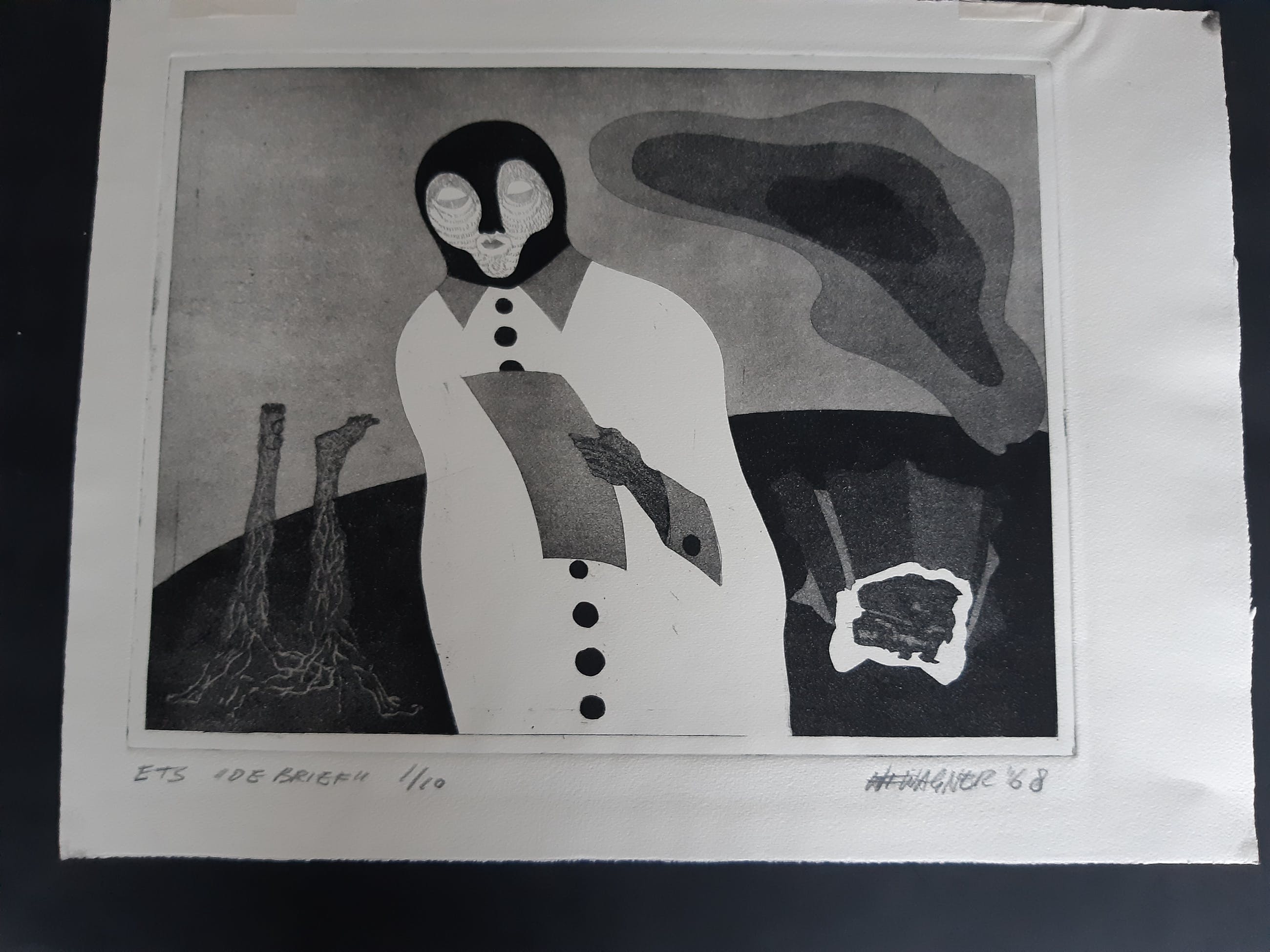 Ets genaamd de brief nr 1 uit oplage van 10. Afmetingen zijn zonder de witte rand.