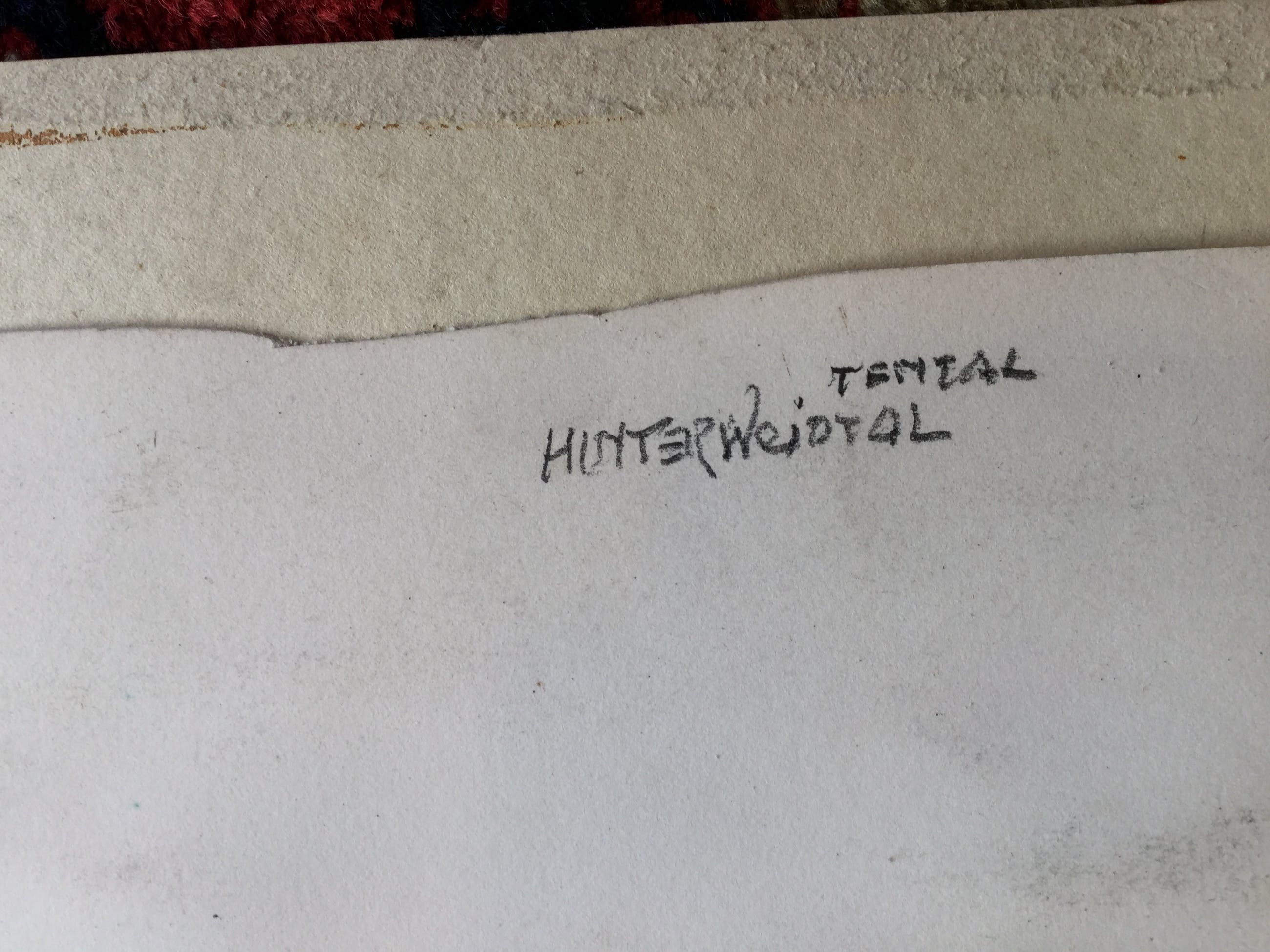 | Papier en passe-partout verkleurd met vlekjes. | |