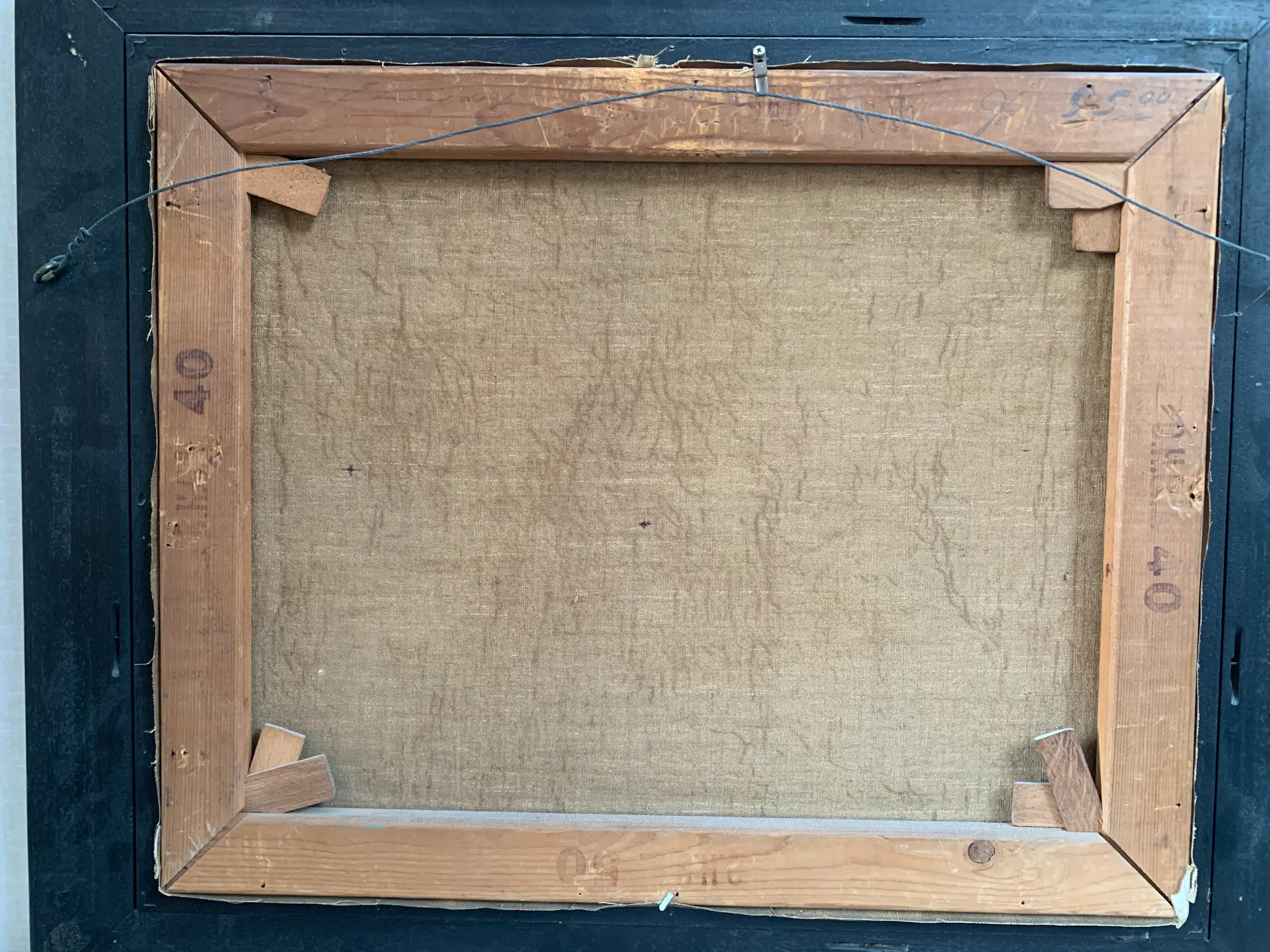 Staat: Goed geconserveerd schilderij (lichte craquelé, vergeelde vernis); originele lijst met gebruikssporen. Erfelijk verkregen uit familiebezit.
