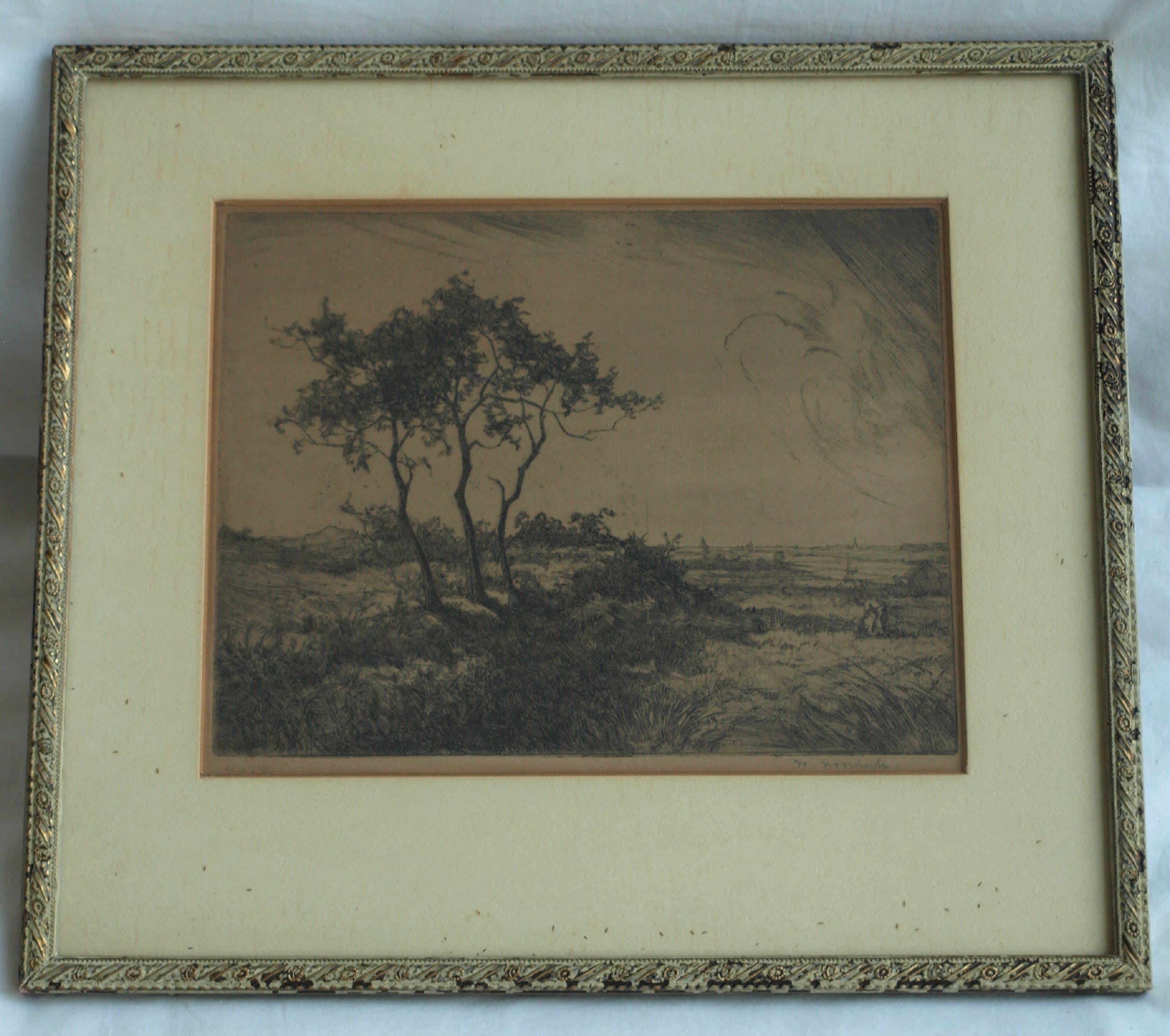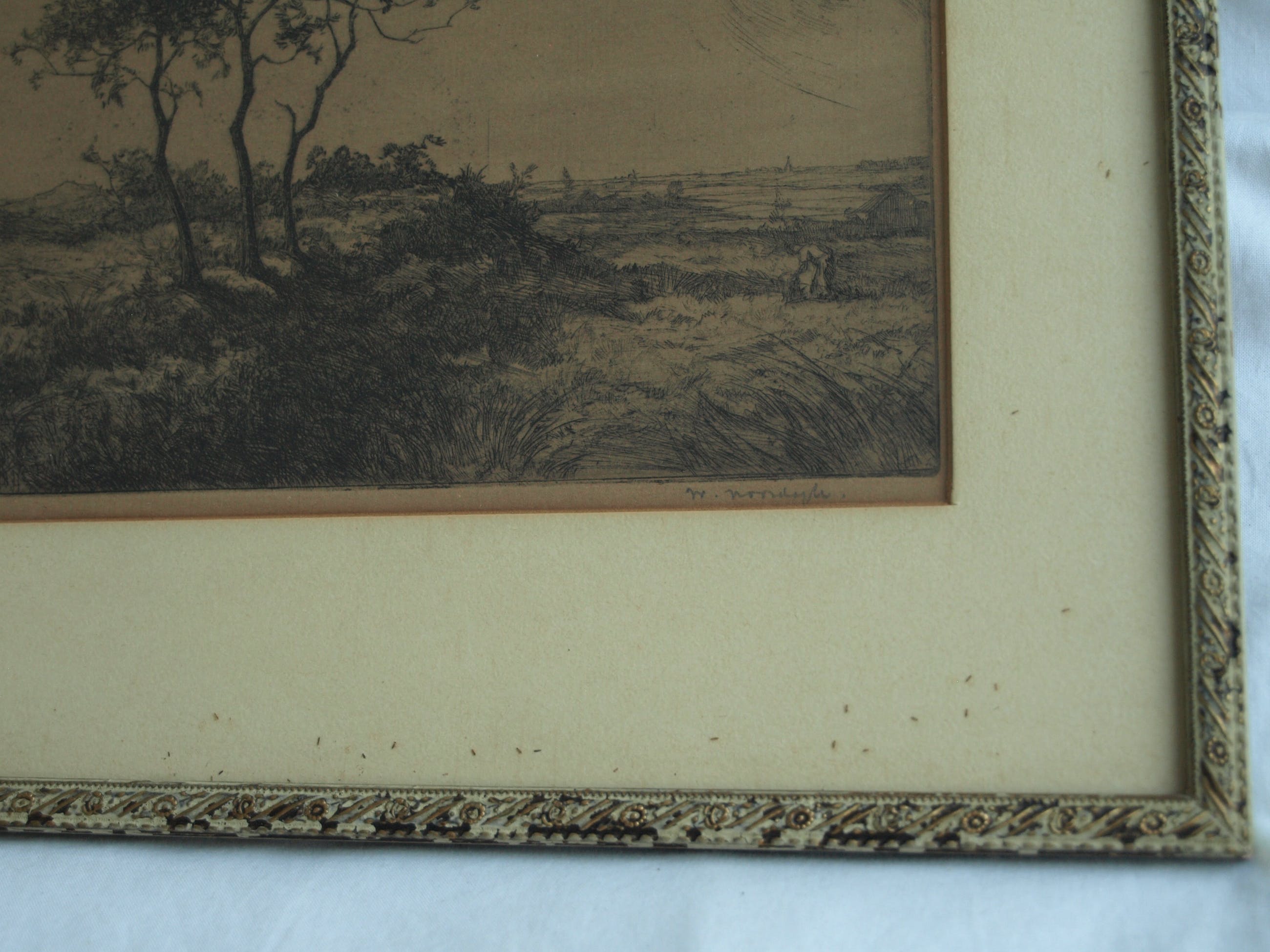 Een ingelijste ets van de Nederlandse kunstenaar Willem Frederik Noordijk (1887-1970).