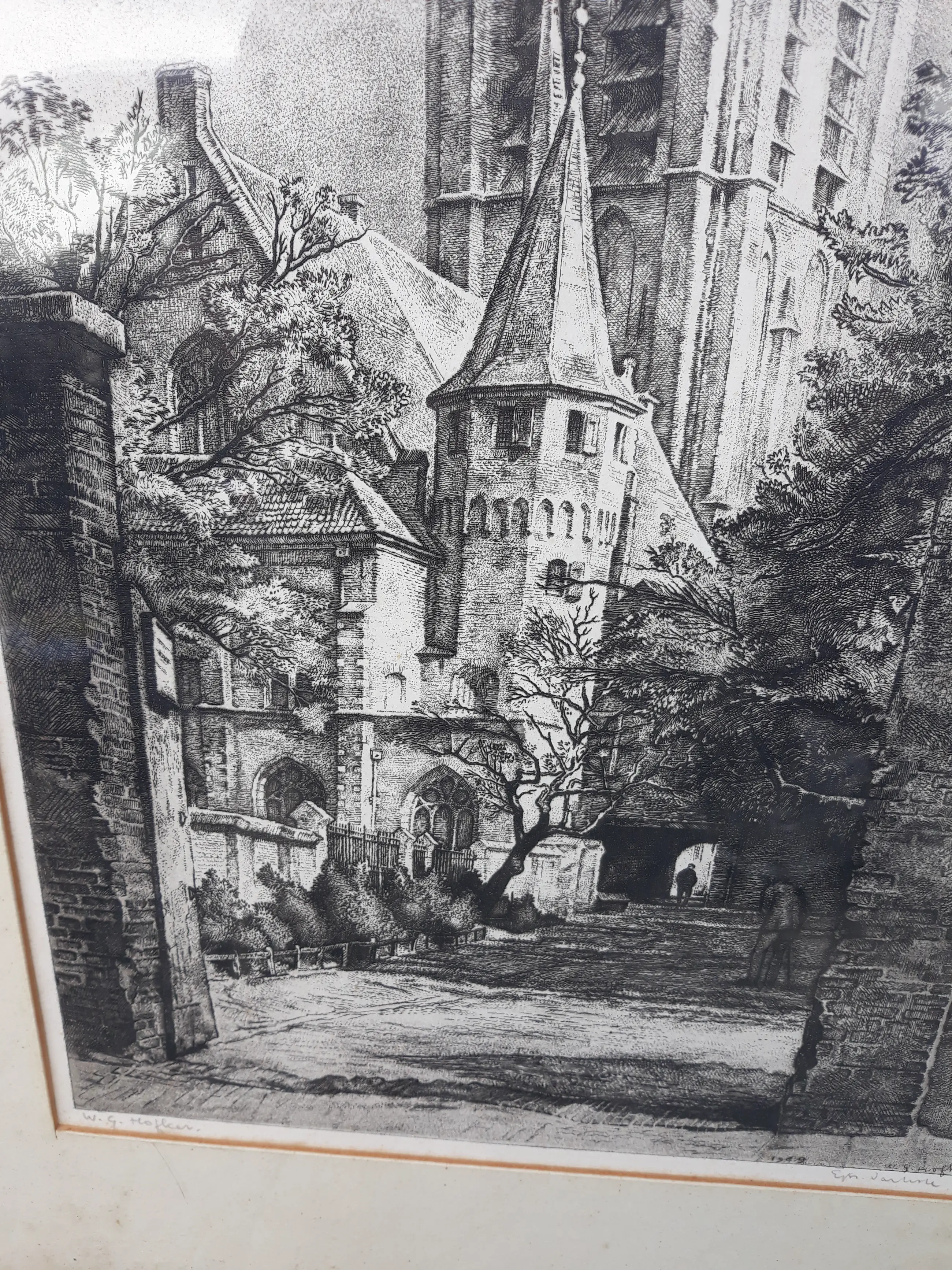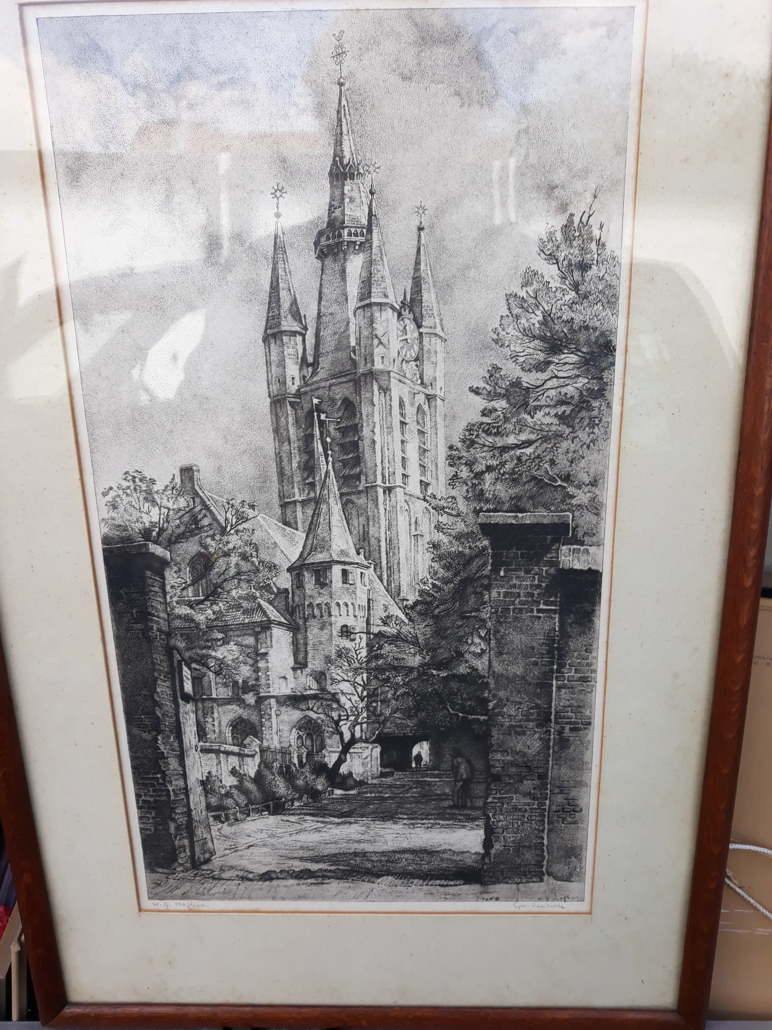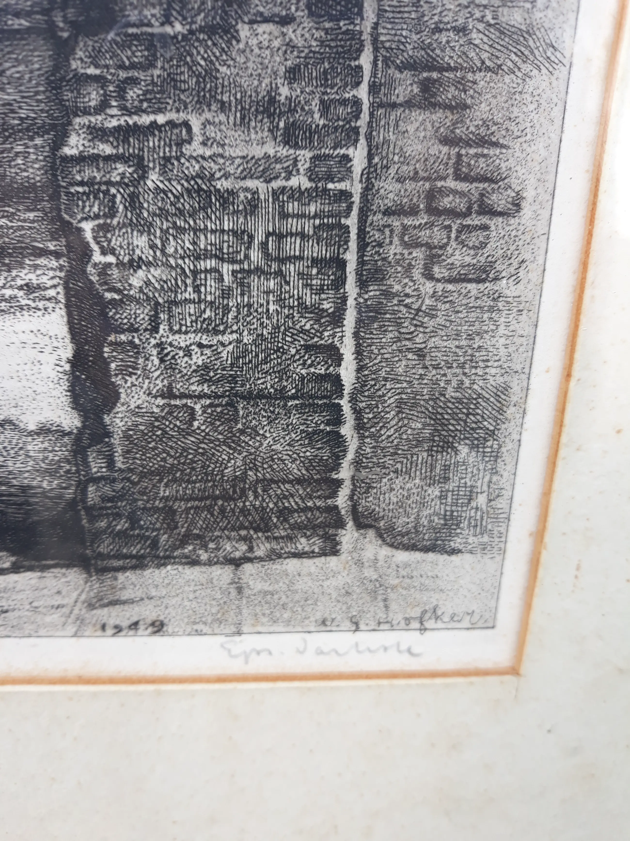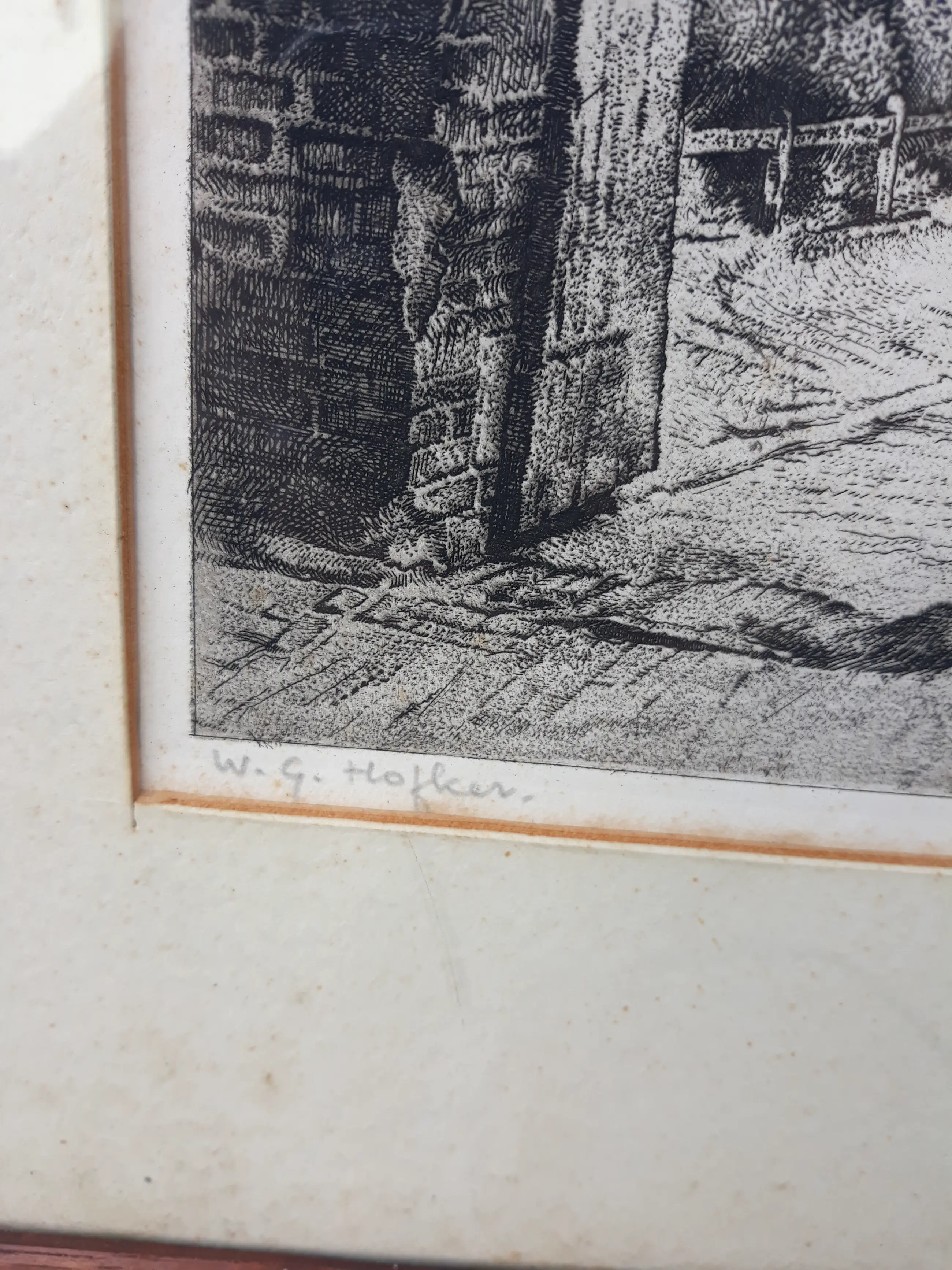 Mooie grote Hofker ets,gesigneerd l.o.,r.o. epreuve d artist,zeldzame proefdruk.