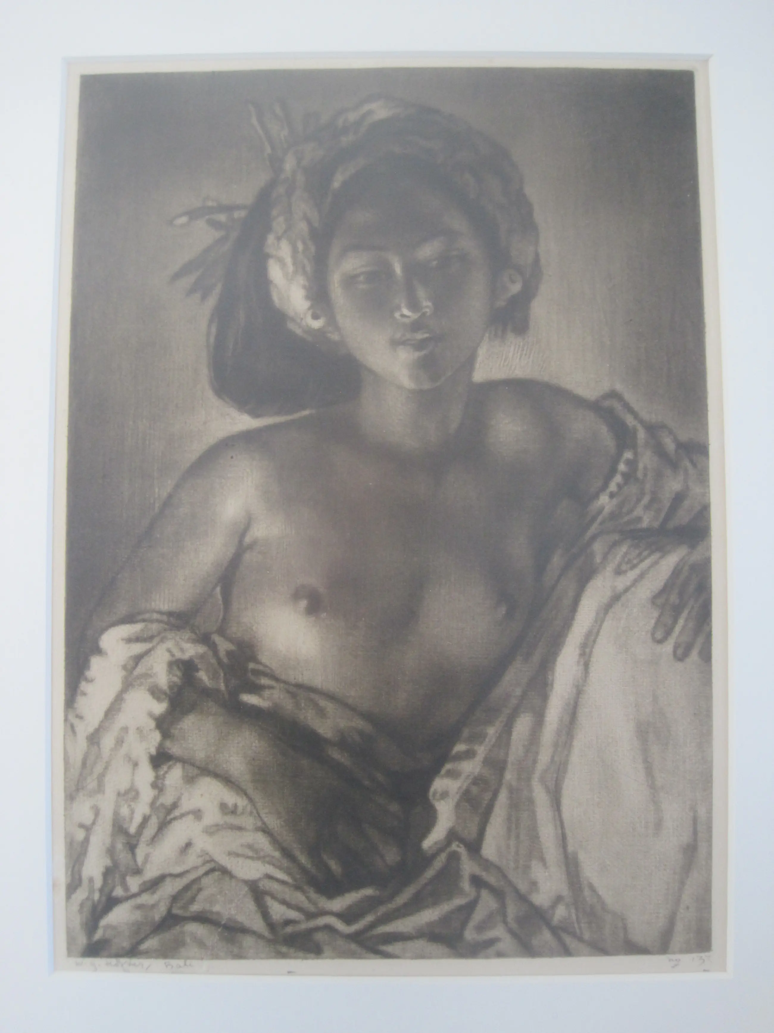 Willem Gerard Hofker (Den Haag 1902-Amsterdam 1980), Ni Kendjoeng, ets/mezzotint, 35 x 25 cm, in lijst. ( 66 x 54 )Gesigneerd l.o. met potlood: W.G. Hofker Bali en r.o. genummerd: no. 133. Voorzien van ontspiegeld glas.