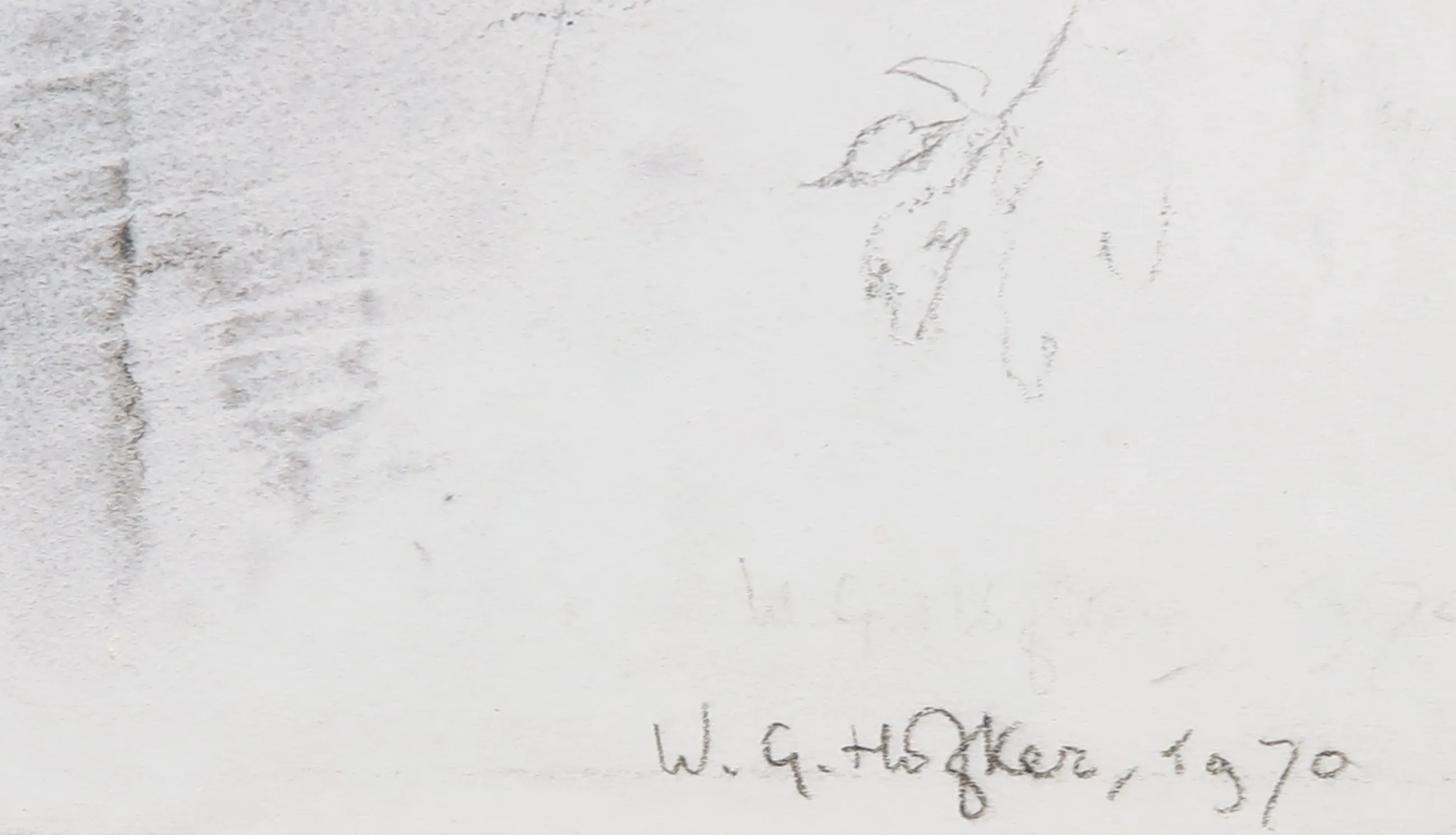 | De tekening is in zeer goede conditie.Het passe-partout oogt een beetje smoezelig/vlekkerig. | |
