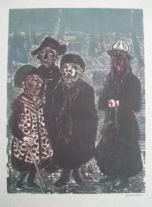 Willem Grimm - Nebliges Neujahr, Farbholzschnitt von 1968, handsigniert