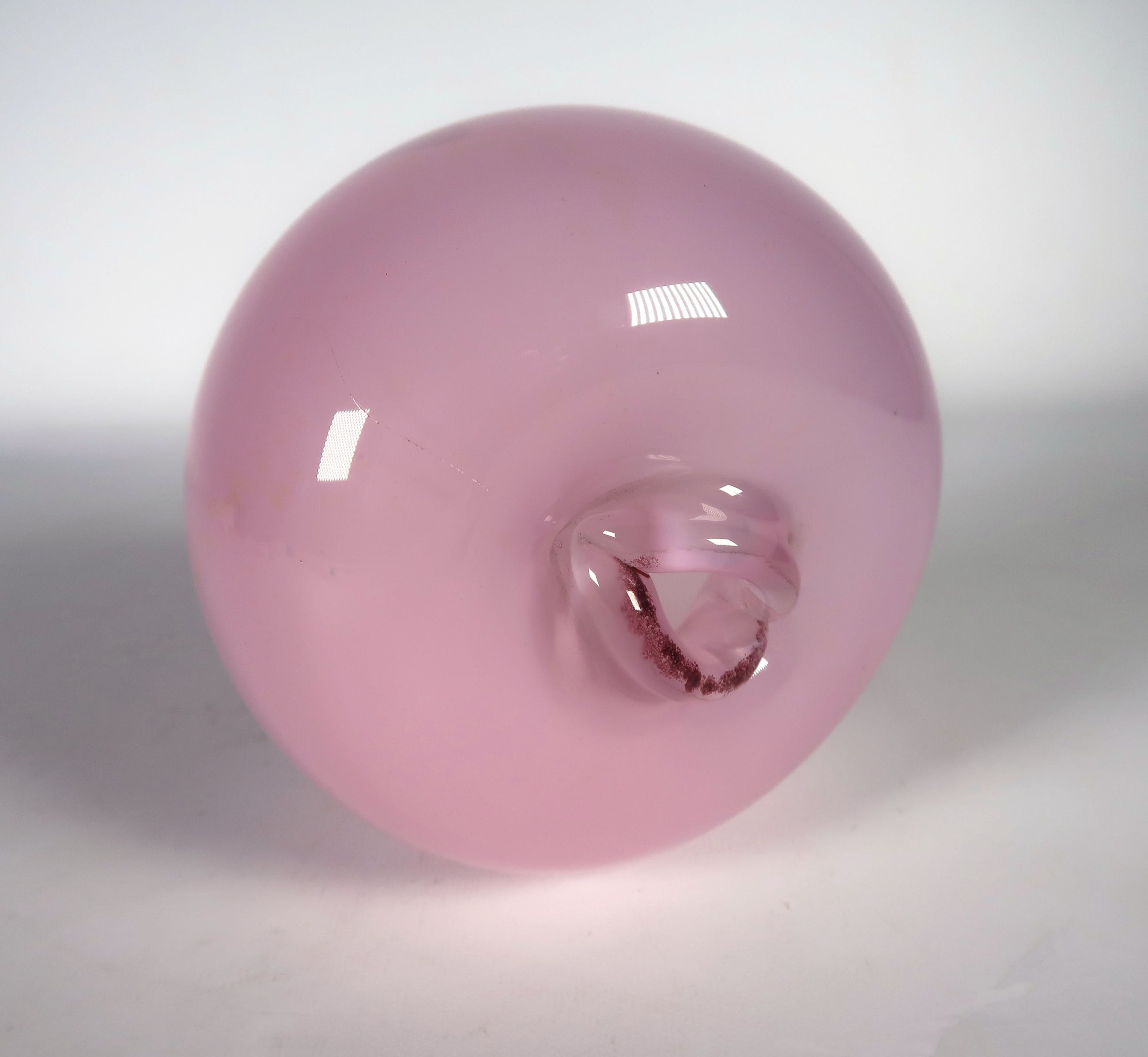 Roze unica glazen granaatappel, gesigneerd met ''W Heesen 910217''