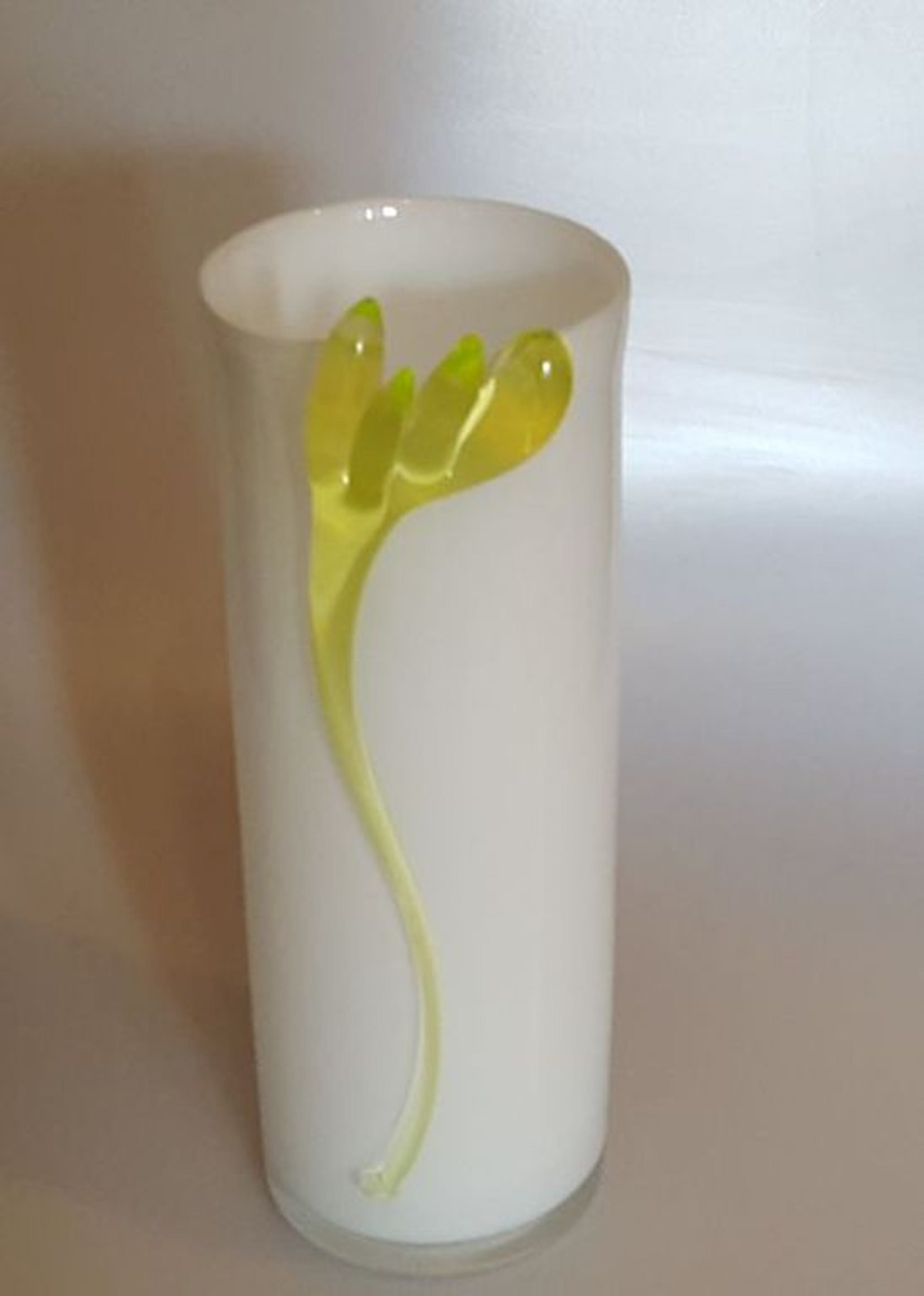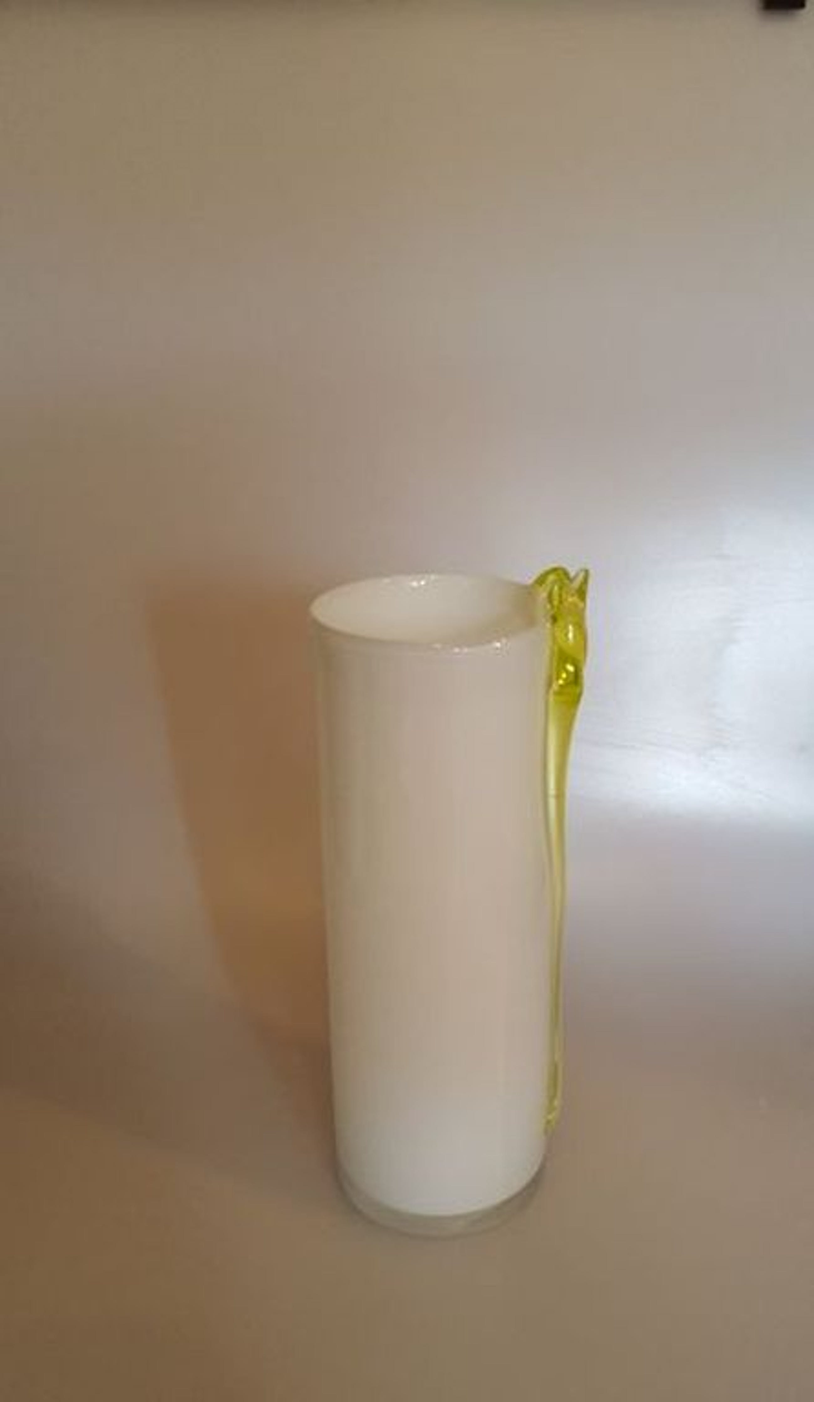 Prachtige melkwitte Serica Vaas van Willem Heesen, voor de Oude Horn te Asperen.