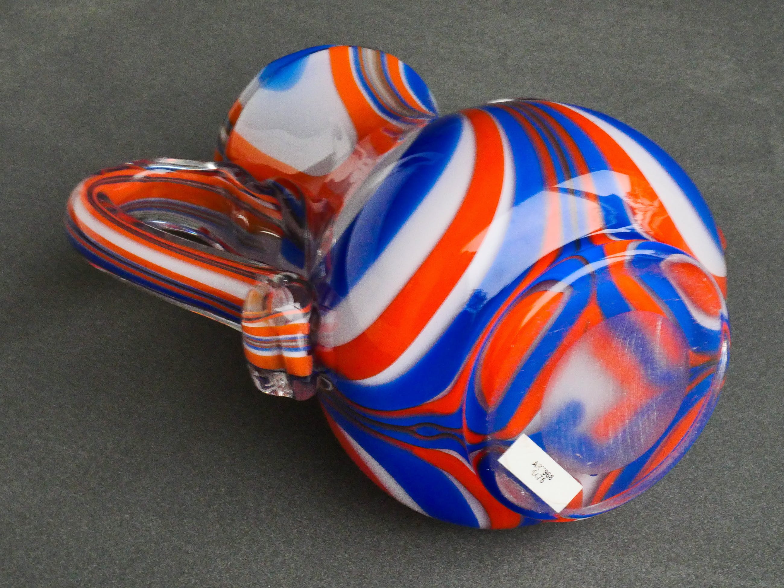 "Willem Heesen - Softpot" kan Object: Softpot kan Afmetingen: H 30 X B 27 X D 15 cm Materiaal: Kristal Kleuren: Gekamde rode, witte en blauwe banen met helder glazen overlay. Genummerd: 100/14 Ontwerper: Willem Heesen Fabrikant: Royal Leerdam Jaar: 1974 Land van herkomst: Nederland Staat: Goed - nauwelijks gebruikt met minimale gebruikssporen maar heeft bij aanzet oor een krimpscheur! (zie laatste foto's).