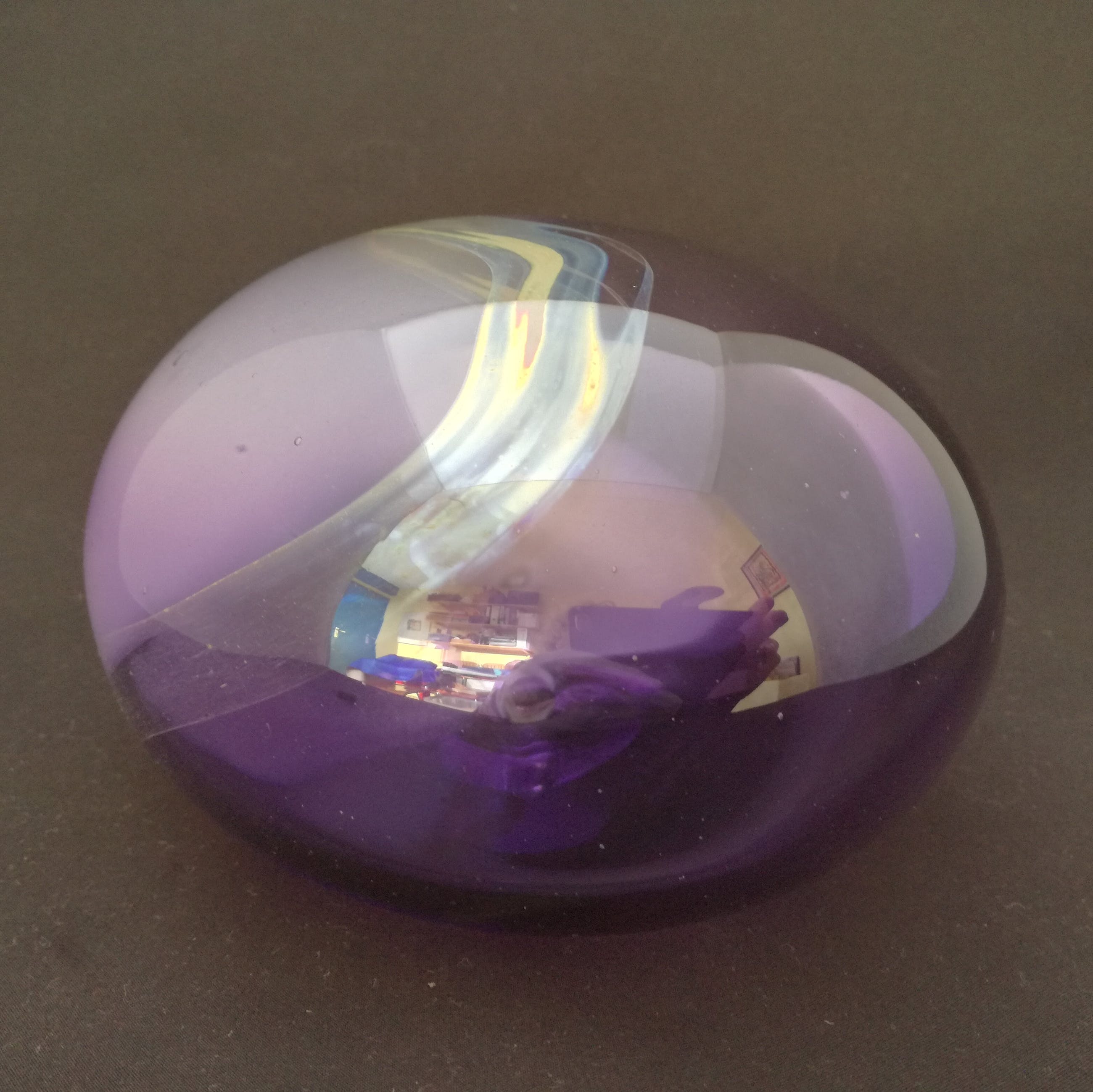Paarsglazen Unica object "Unihorn" met goudgele decoratie