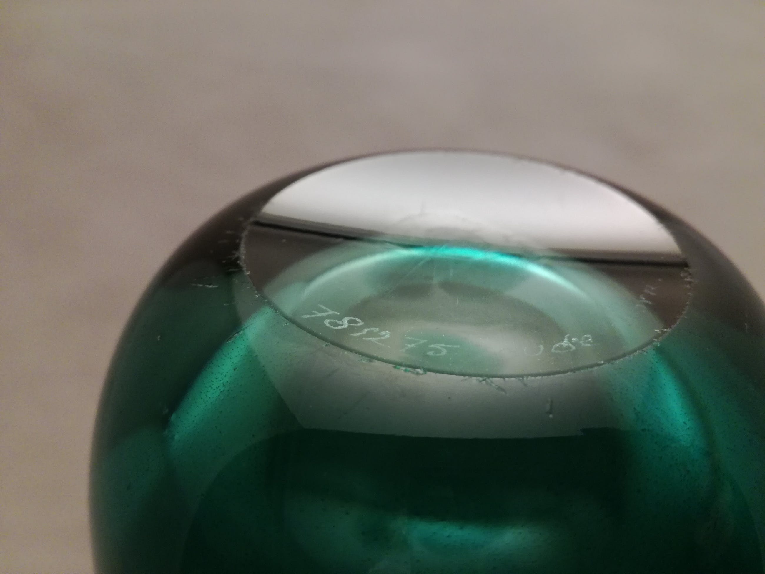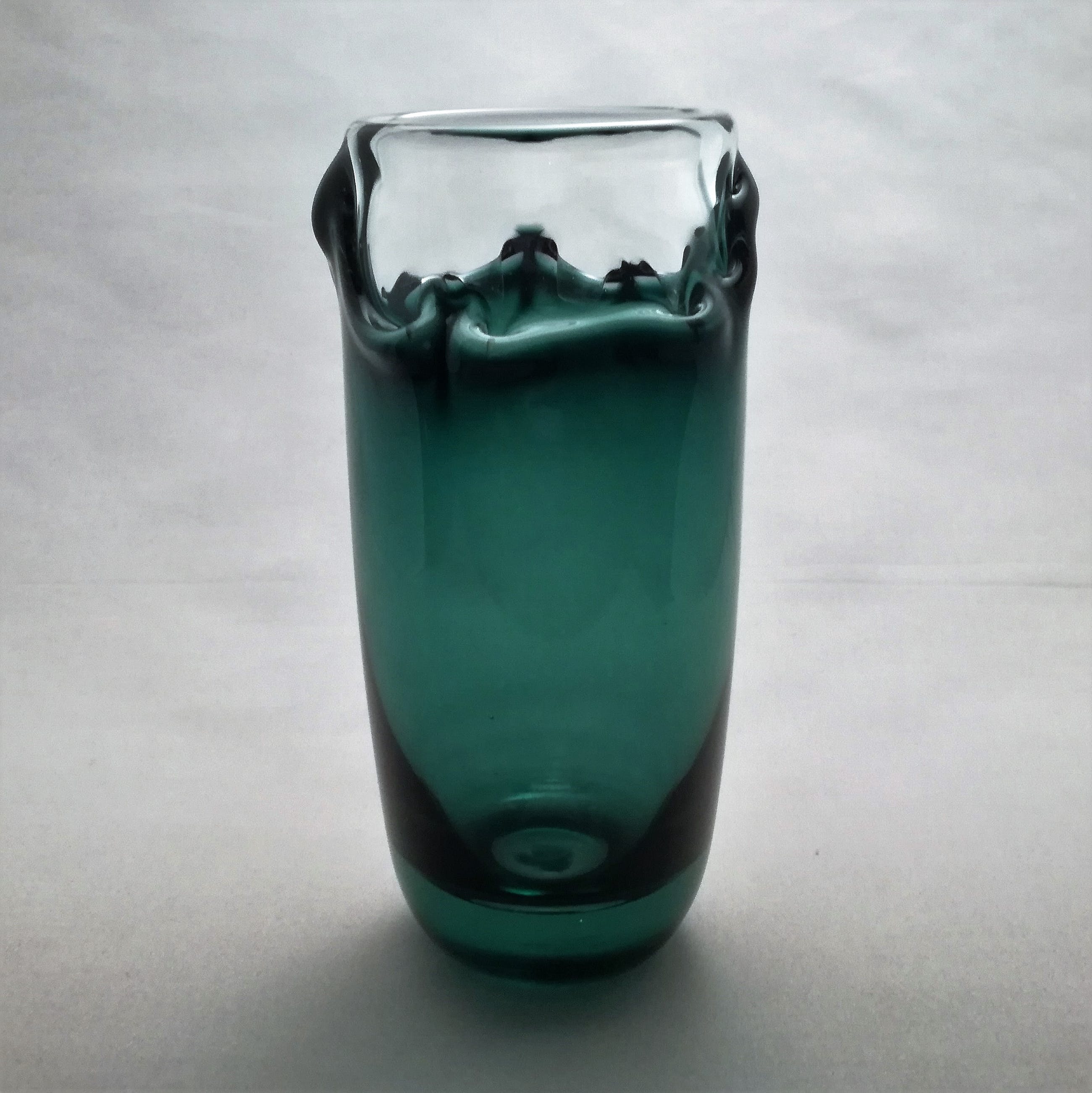 Groen- en helderglazen Unica vaas, ontwerp Willem Heesen, uitvoering in de Oude Horn / Acquoy 1978