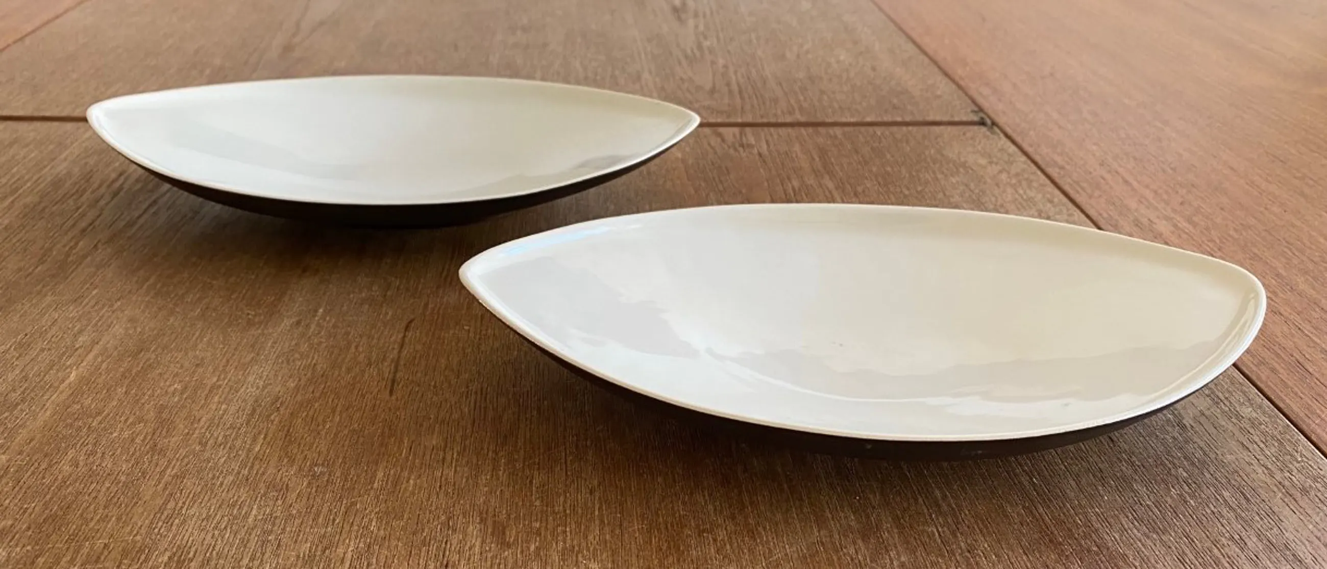 Afmetingen kleine serveerschalen; 3,5 cm hoog, 22,5 cm breed en 14 cm diep