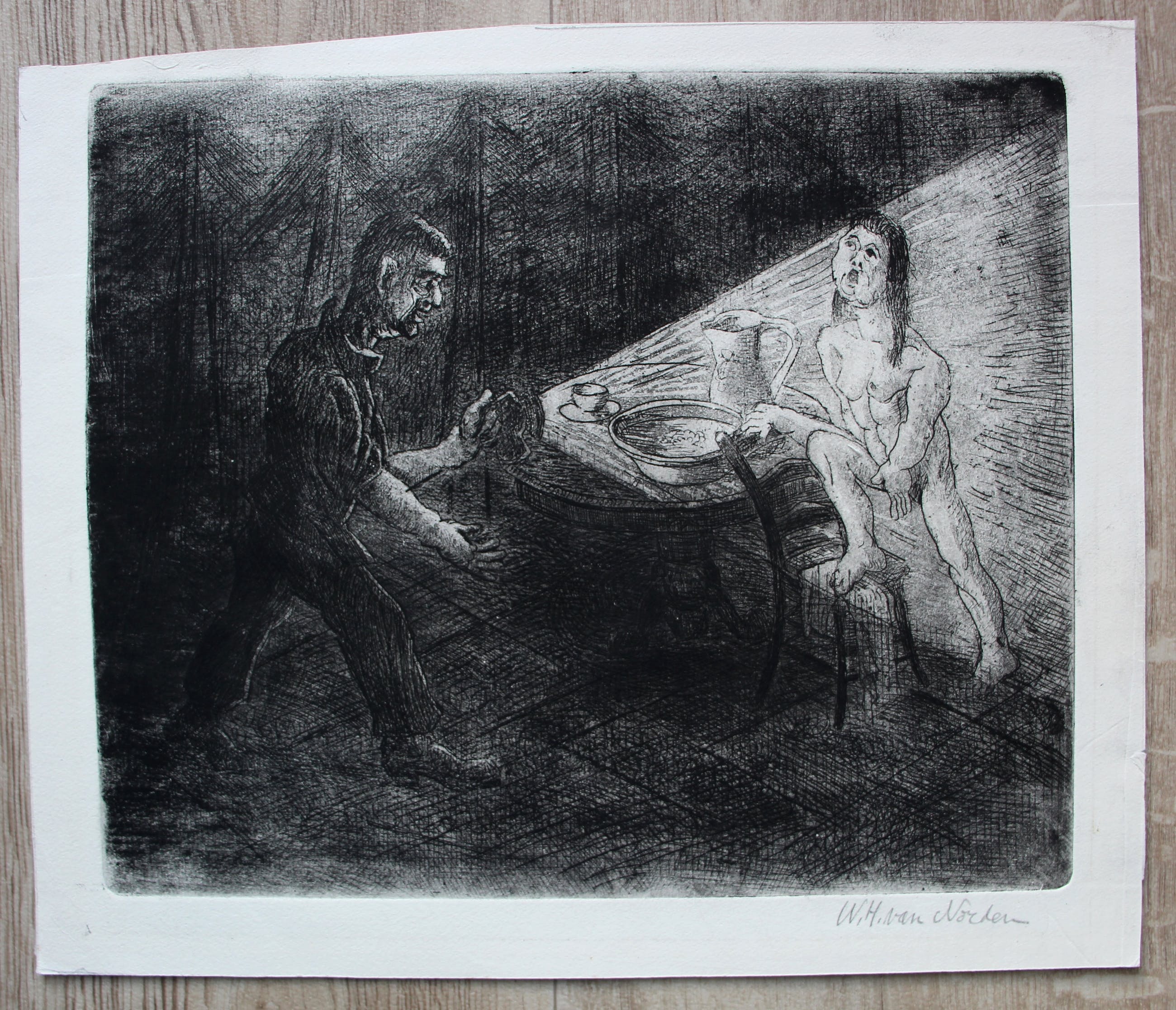 Ets van Willem Hendrik van Norden. Titel: Naakt in licht. Afmetingen blad: H29 x b34 cm. Afmetingen voorstelling H25 x b29,5. Het werk is rechtsonder gesigneerd door de kunstenaar. De authenticiteit van het aangeboden werk kan volledig worden gegarandeerd. Een certificaat van echtheid kan, op aanvraag, worden gemaild.