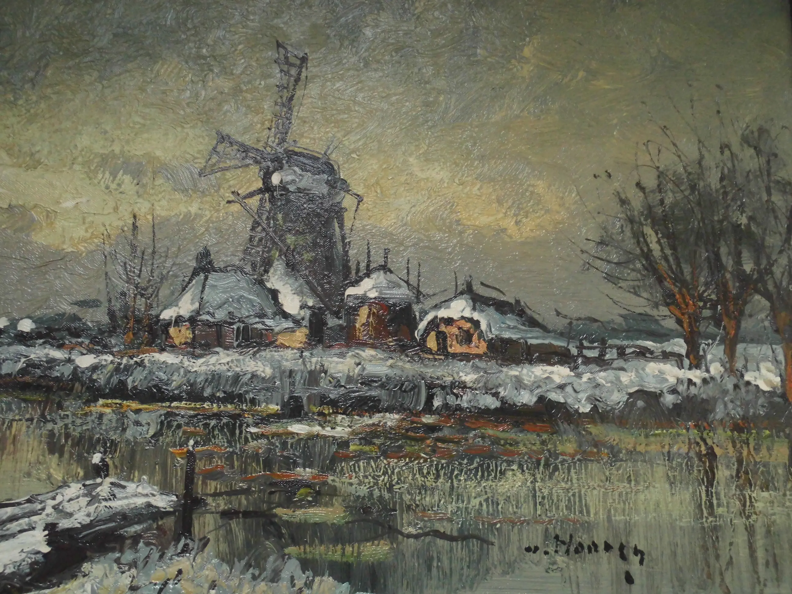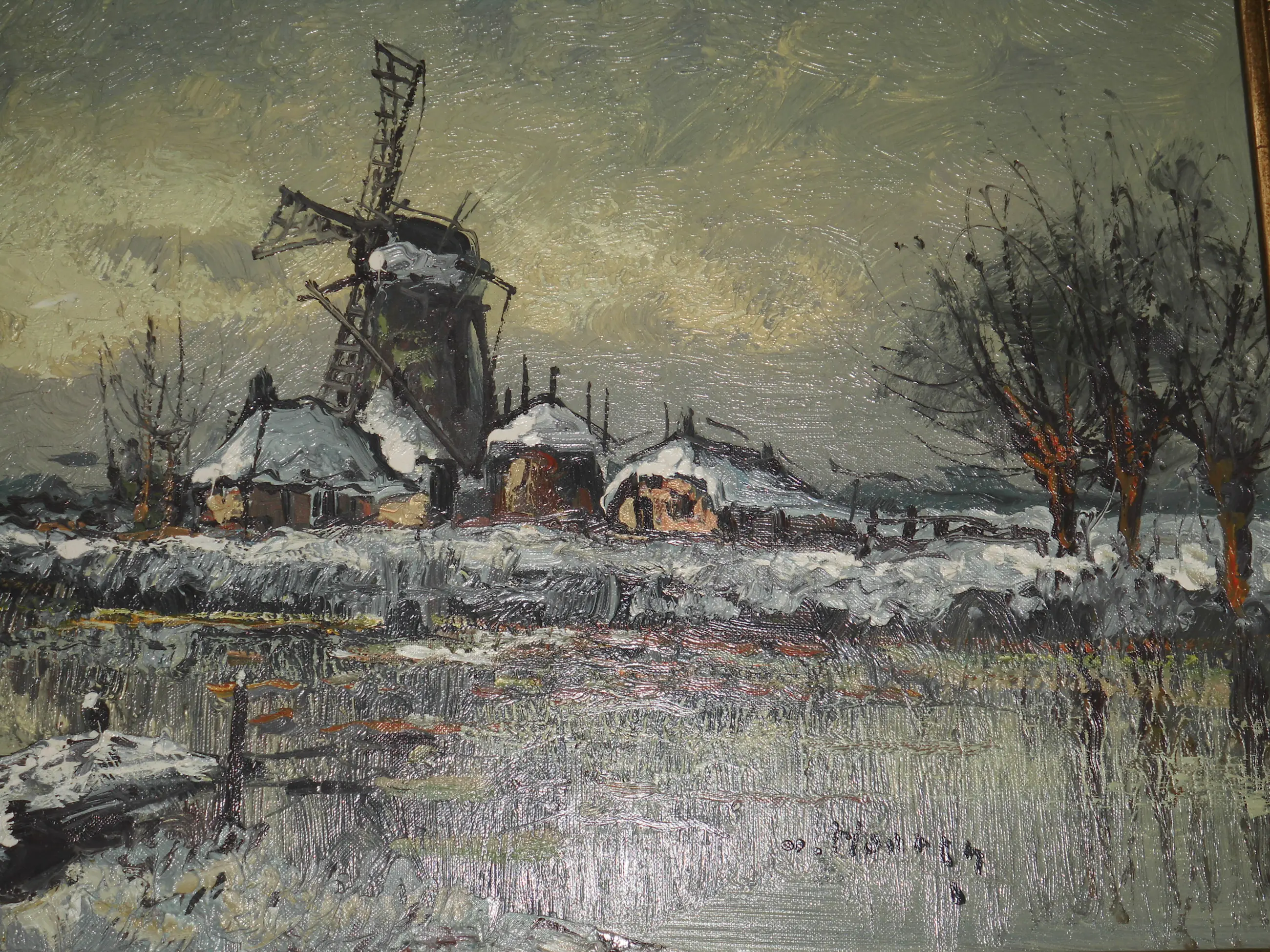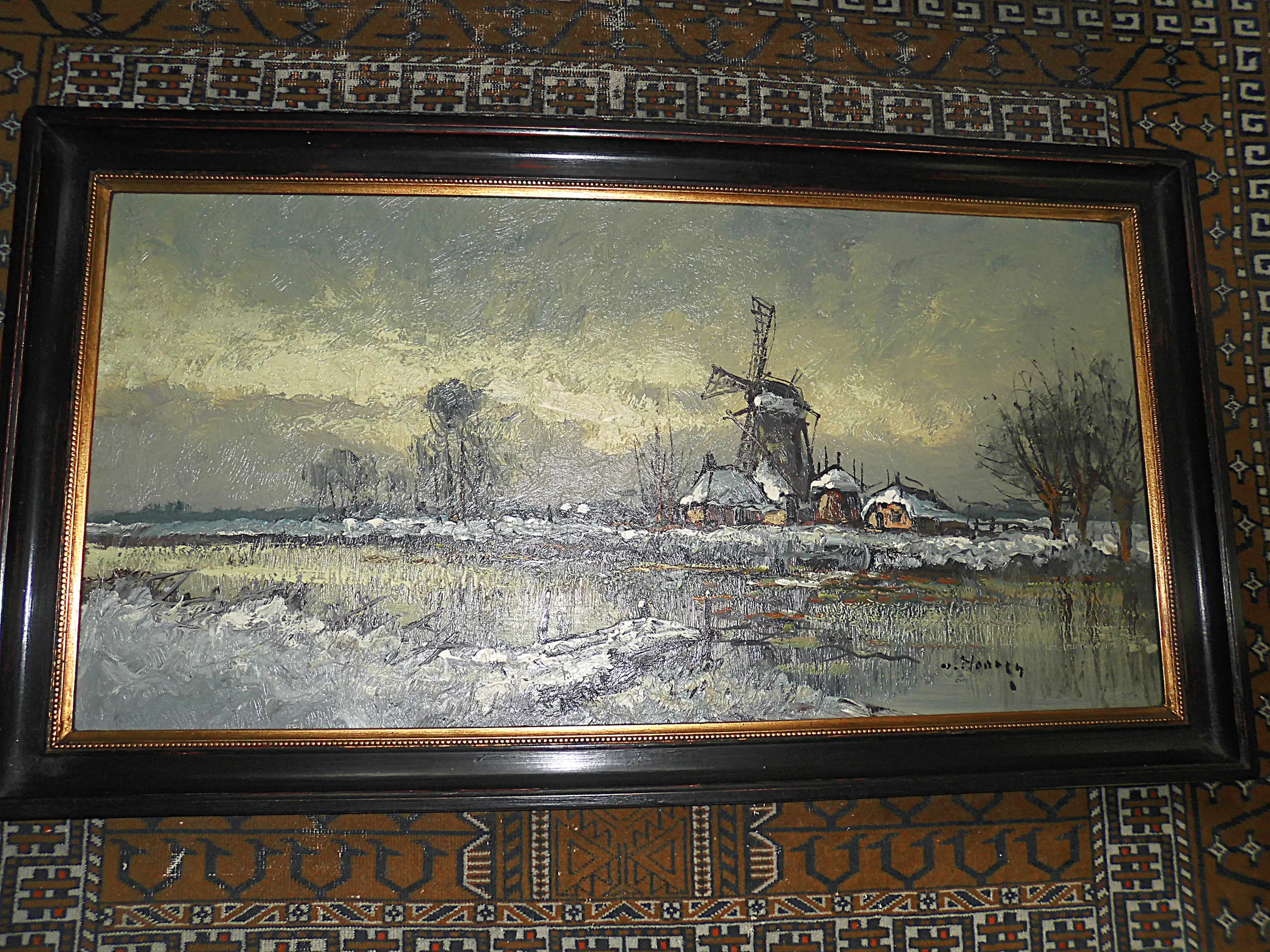 Willem Hendrik van Norden - Olieverf - Winters Landschap met Molen