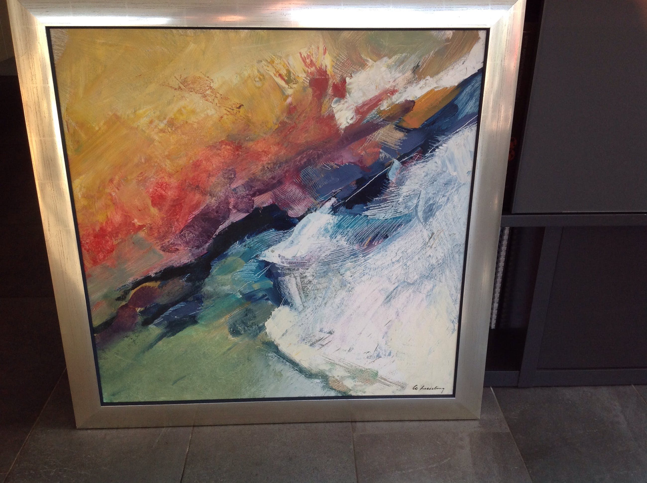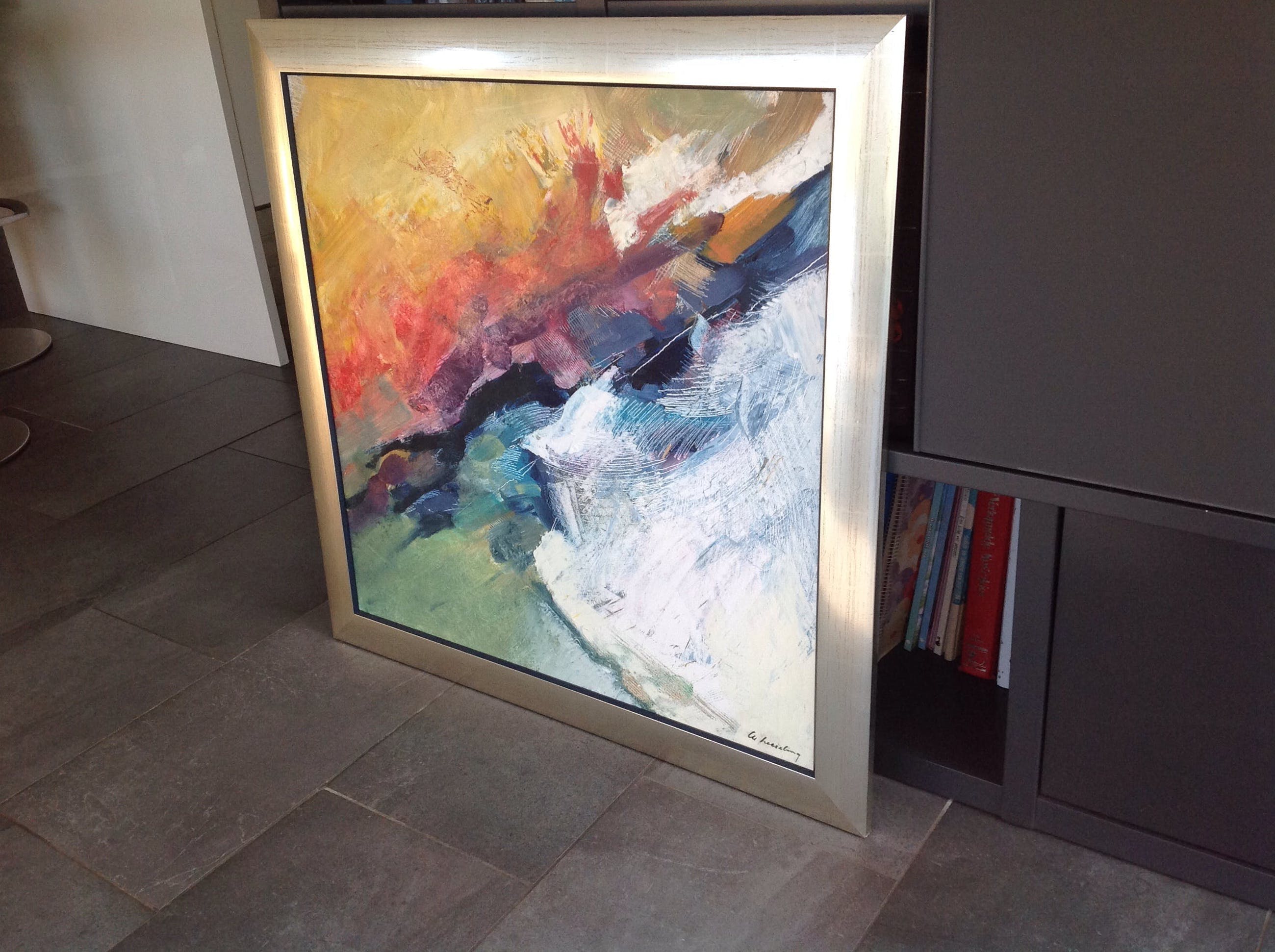 Mooi ingelijst werk. Rechtstreeks gekocht bij de kunstenaar in de jaren 80. Ik lever dit schilderij het liefst zelf persoonlijk af