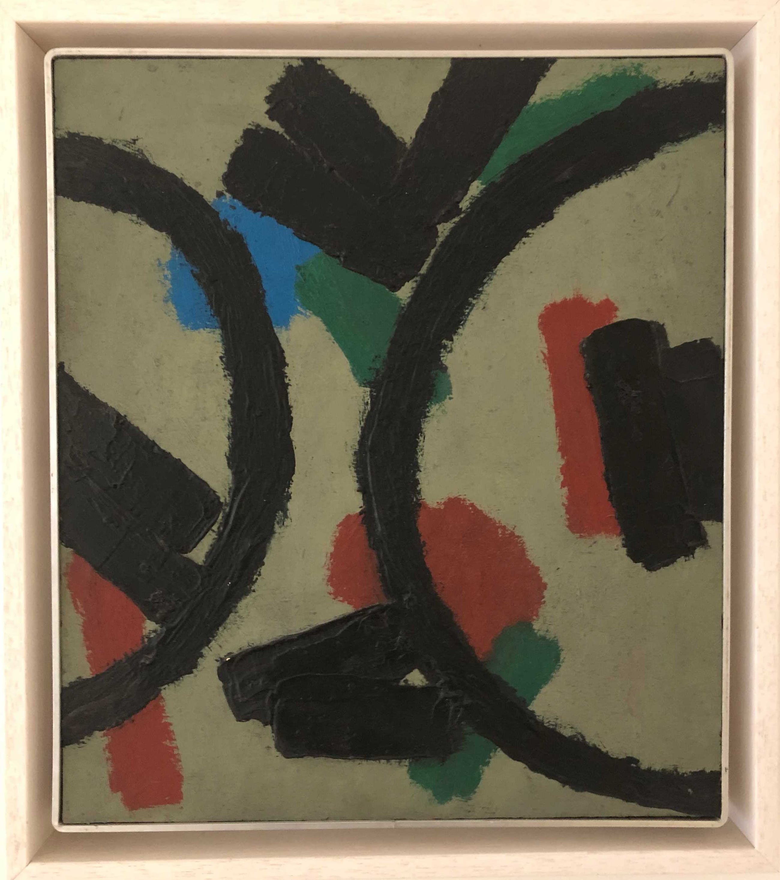 Gesigneerd met initialen en gedateerd "WH 63" aan achterzijde.Het werk heeft een authentieke metalen Hussem lijst en heeft er omheen een houten baklijst.Het werd gekocht bij Christie's.