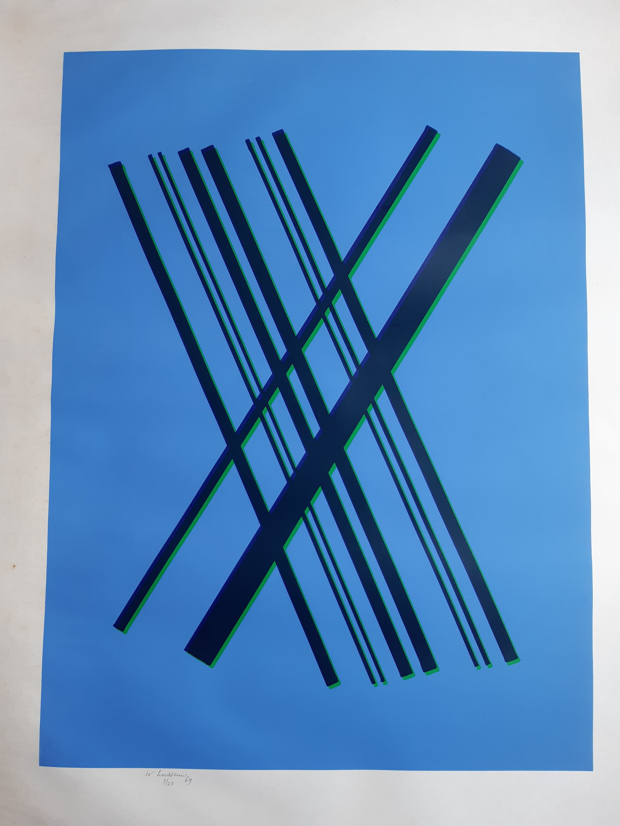 Deze mooi abstract litho van Willem Hussem, was direct gekocht vanuit zijn atelier in 1969, het is een bijzonder zeldzaam litho, uit een zeer laag oplage van 25.