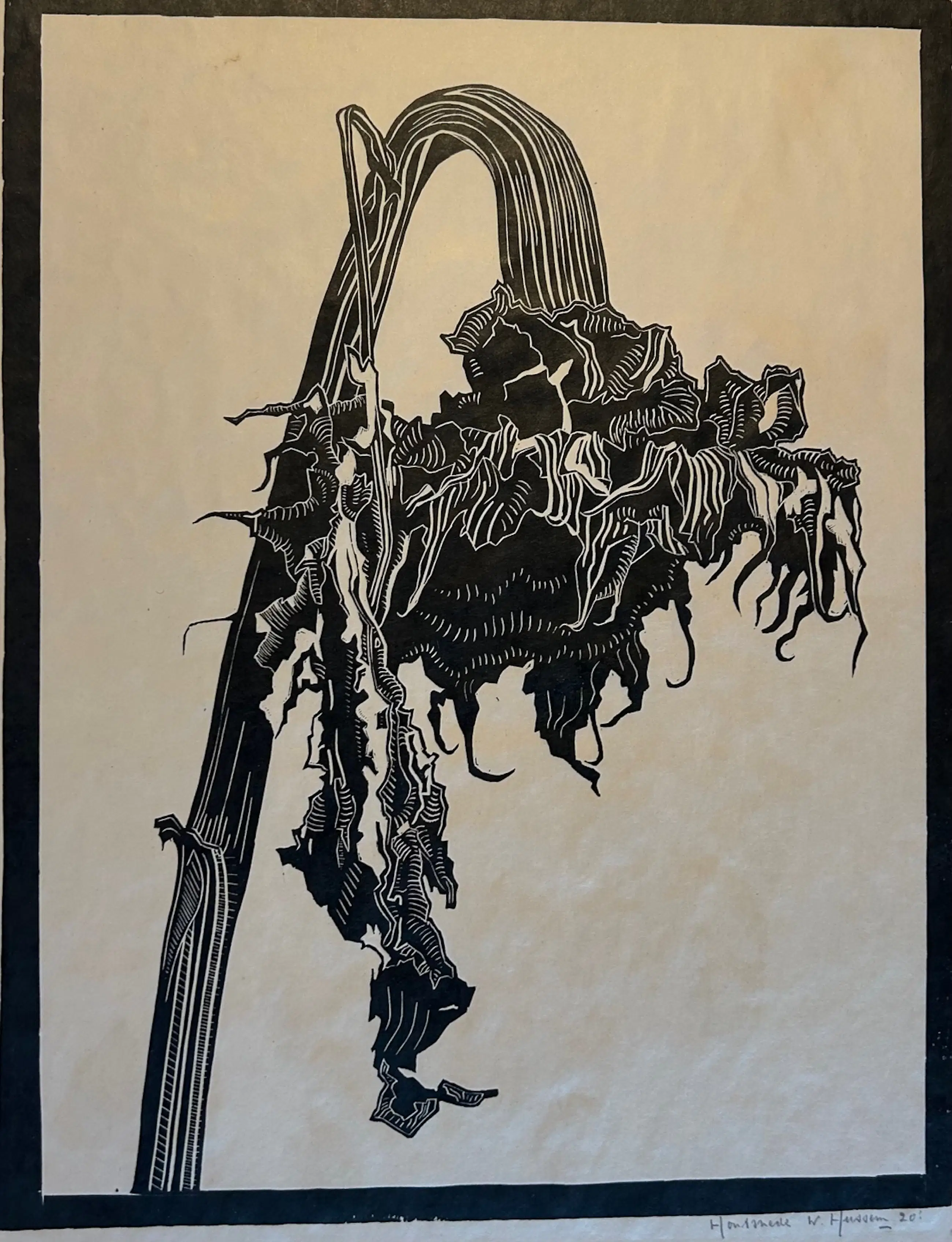 In potlood: "Houtsnede W. Hussem 20". Een heel vroege Hussem dus