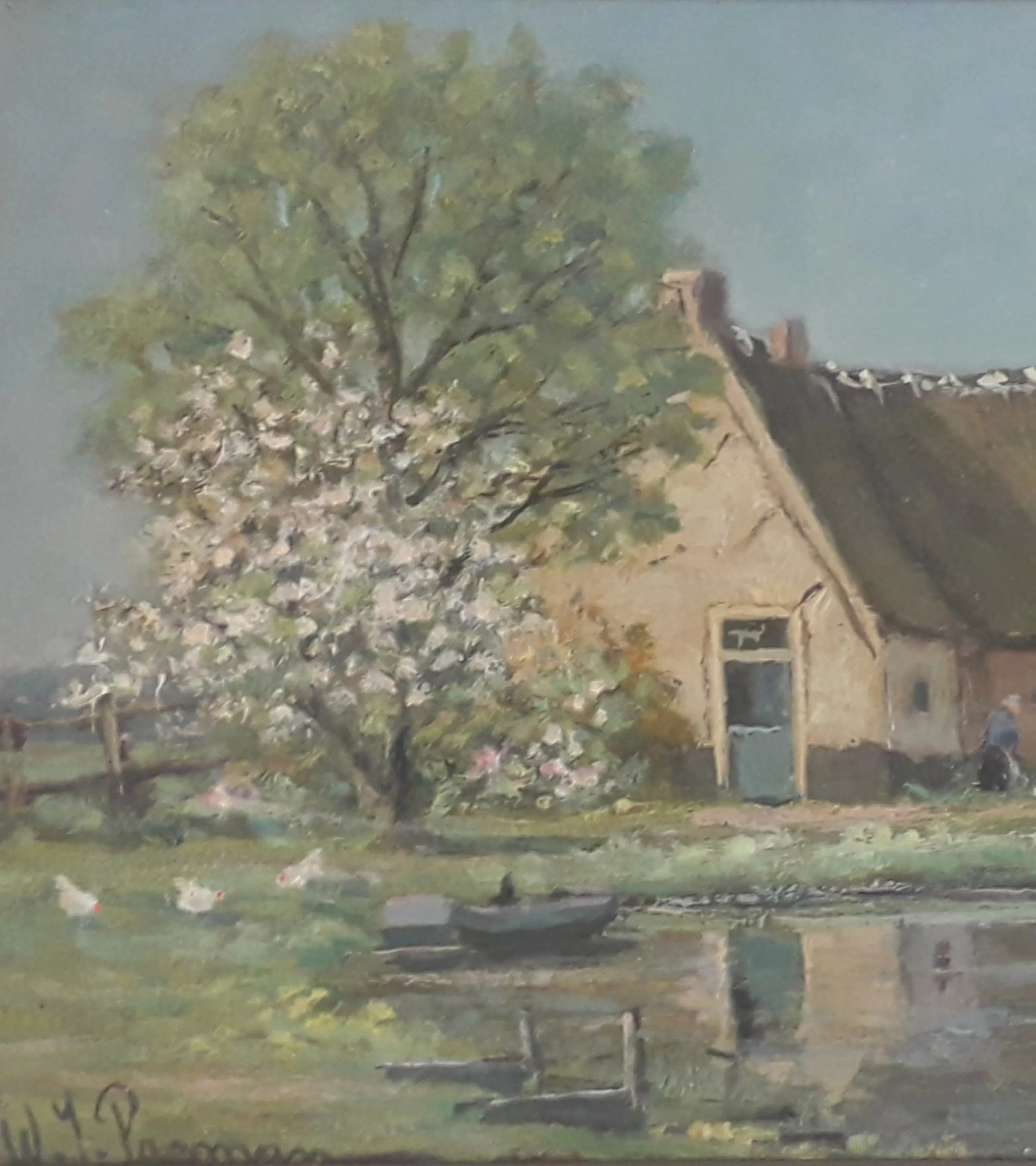 Willem J. Pasman - Zomerse boerderij met bloesembomen