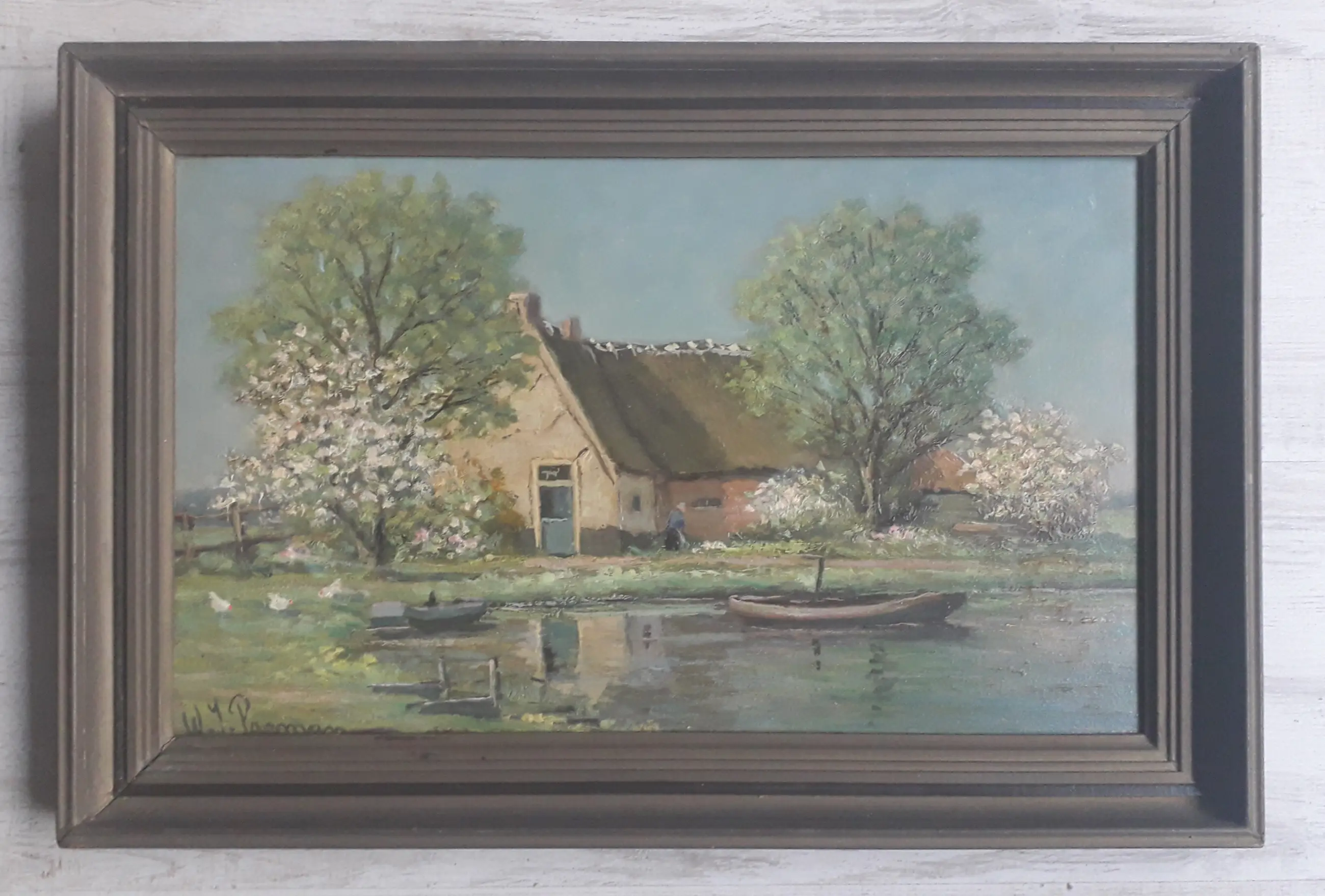 Het gesigneerde olieverfschilderij is circa 80 JAAR OUD en impressionistisch geschilderd door de BEKENDE nederlandse kunstschilder WILLEM JOHANNES PASMAN (1905-1984). Hij schilderde vooral landschappen.