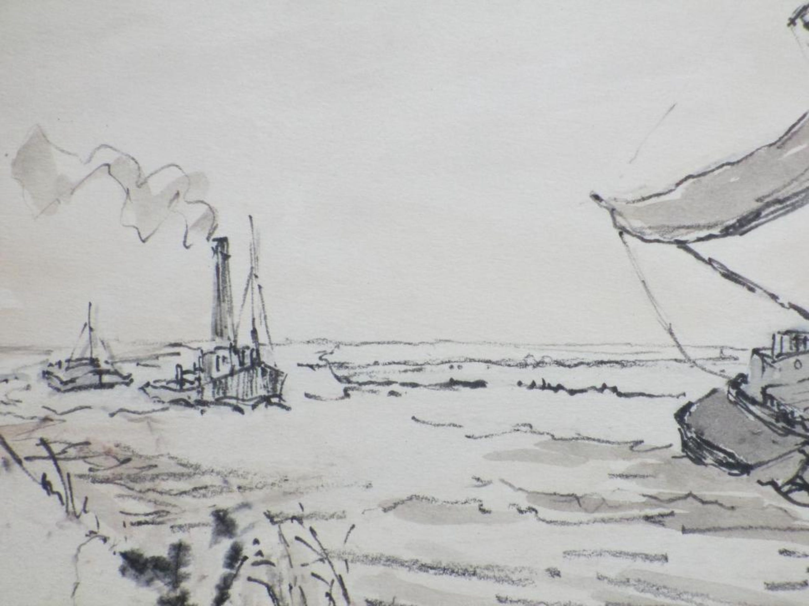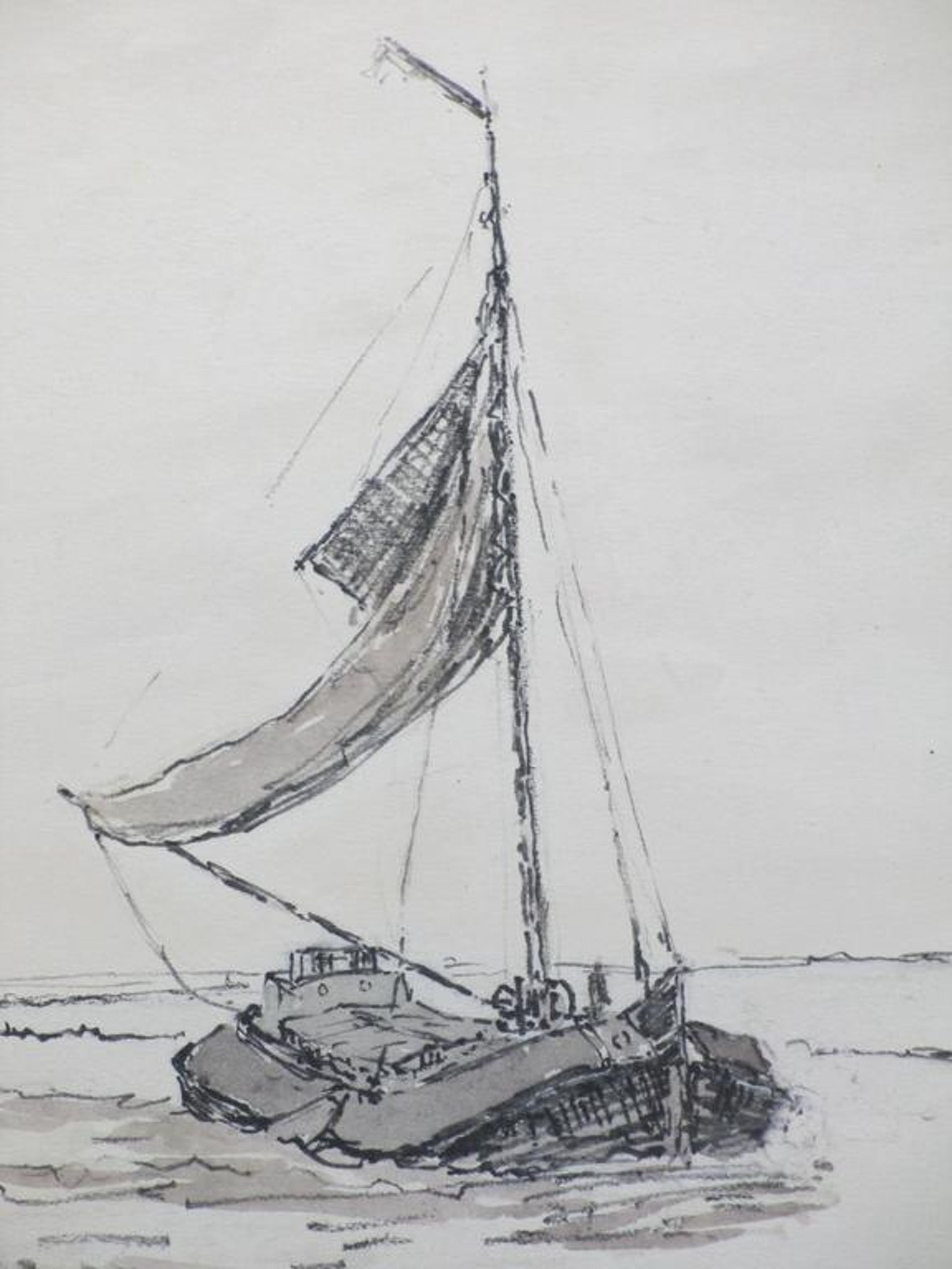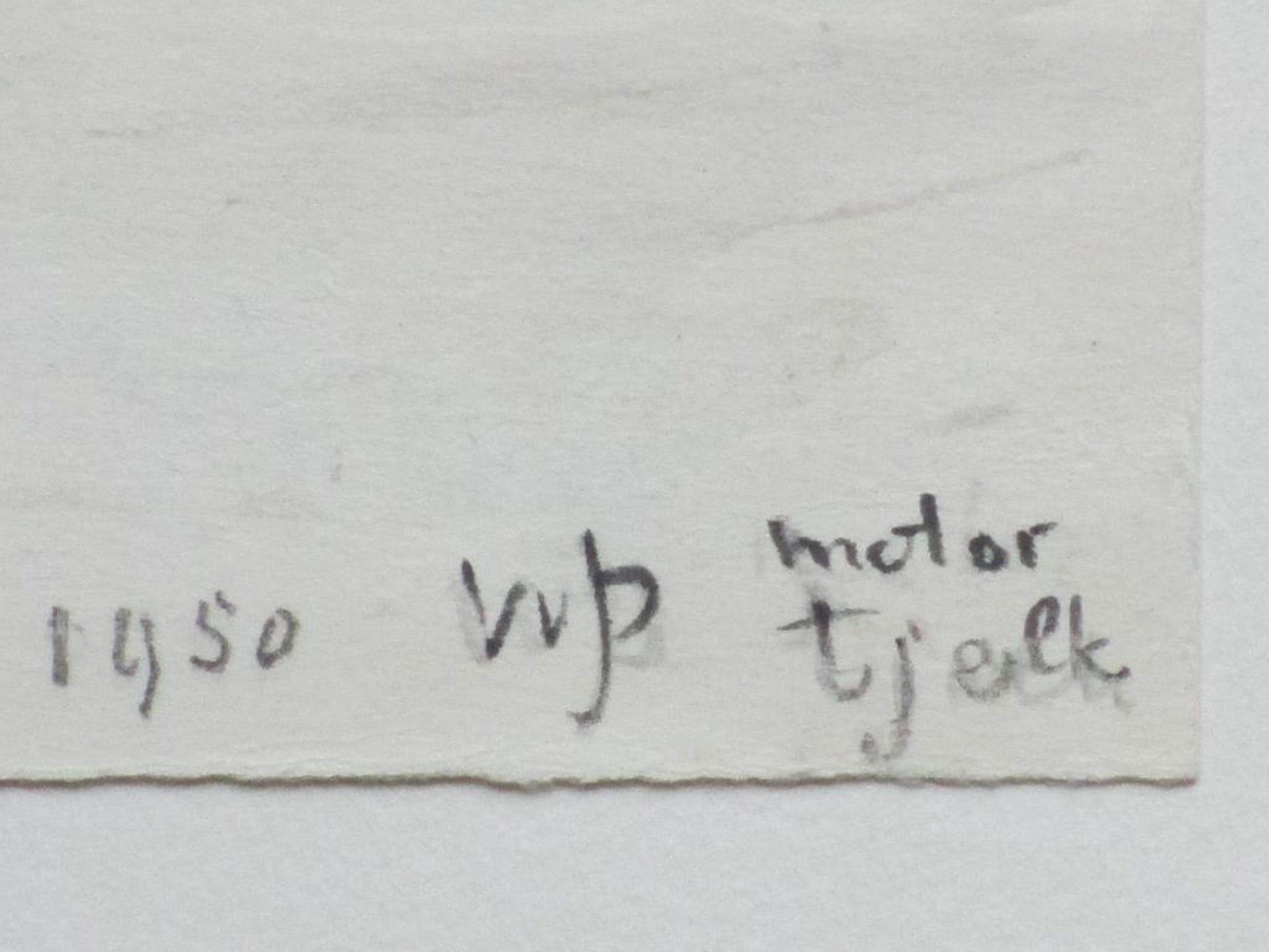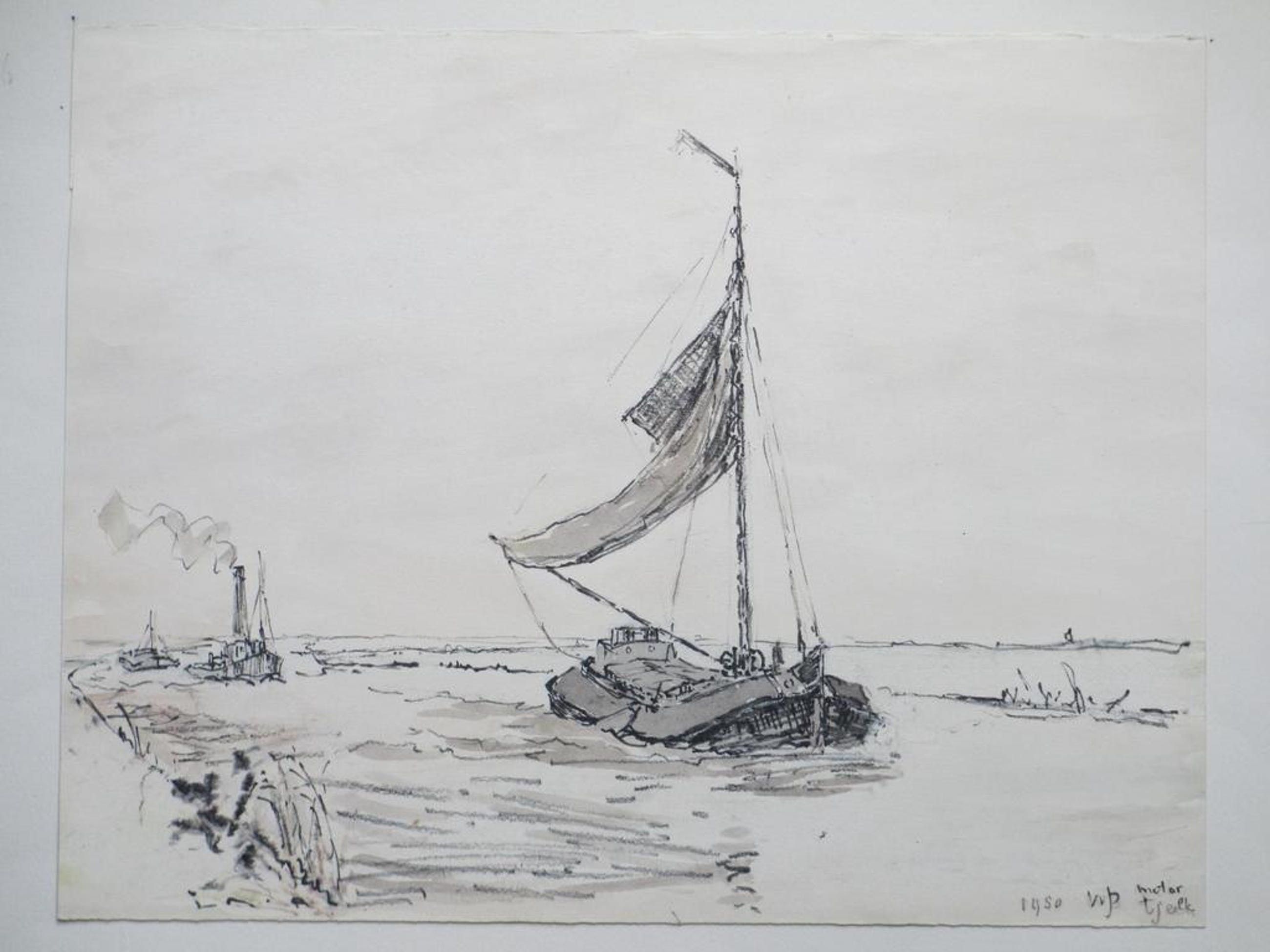 Gemonogrammeerd, gedateerd en getiteld r.o. 'WJD' '1950' en 'Motor Tjalk'