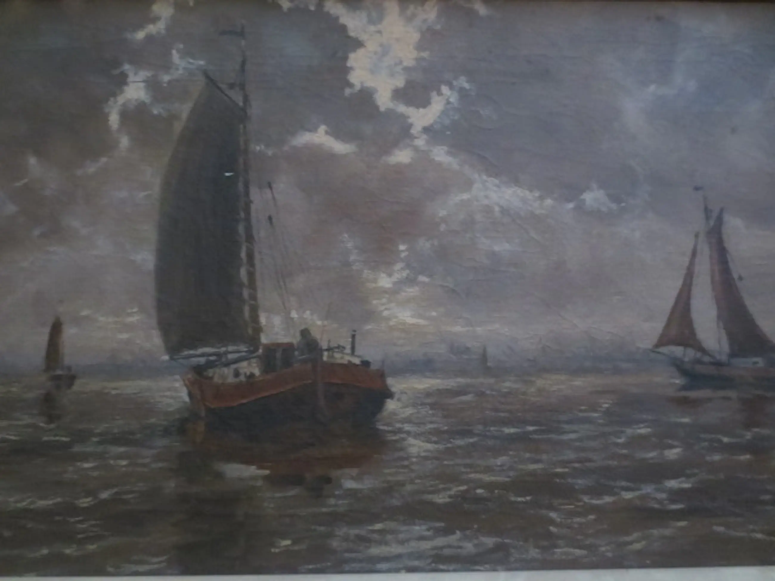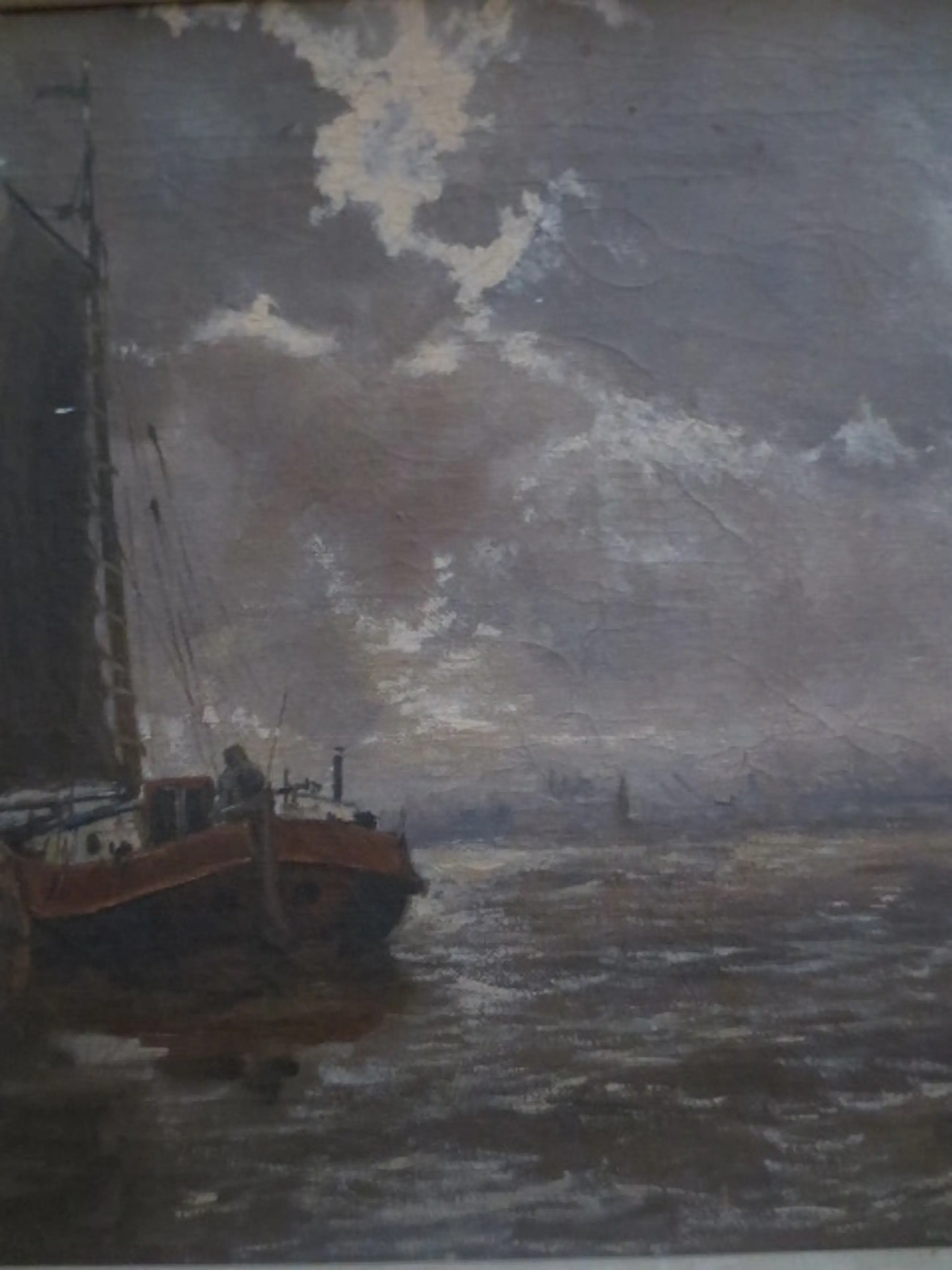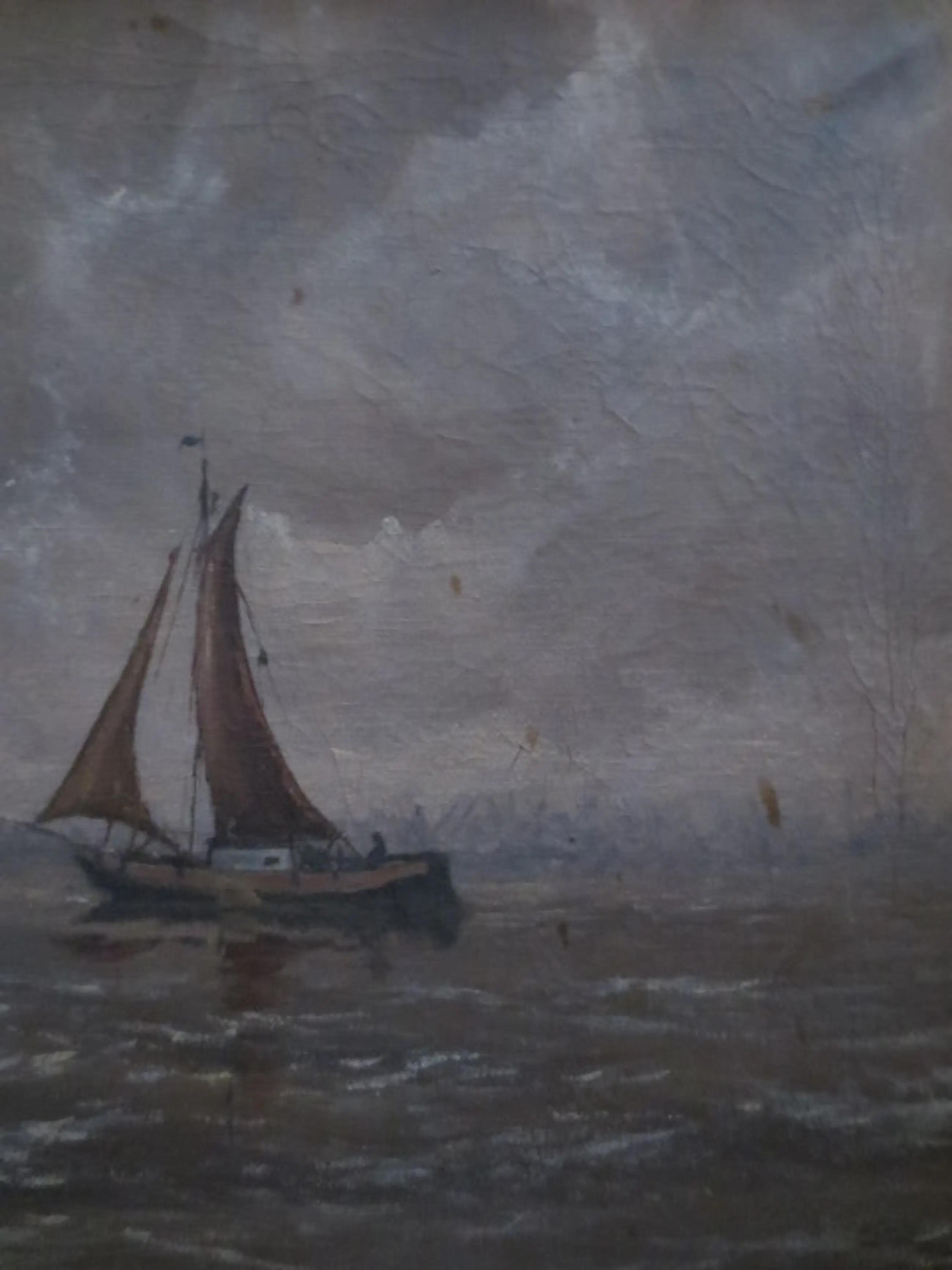 Willem Jansen (1923-1992) Riviergezicht Dordrecht uitzicht Papendrecht Olieverf op Doek Gesigneerd linksonder