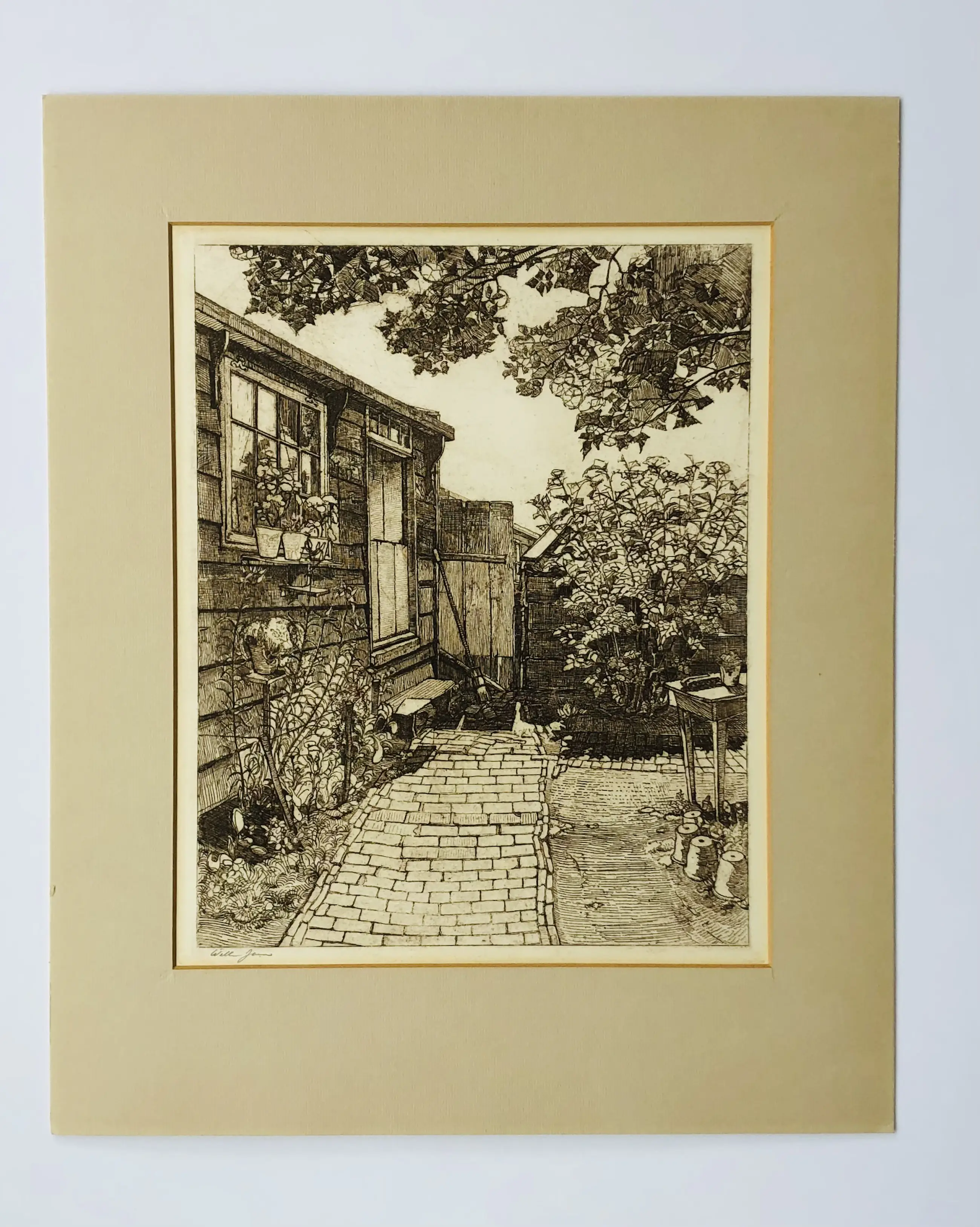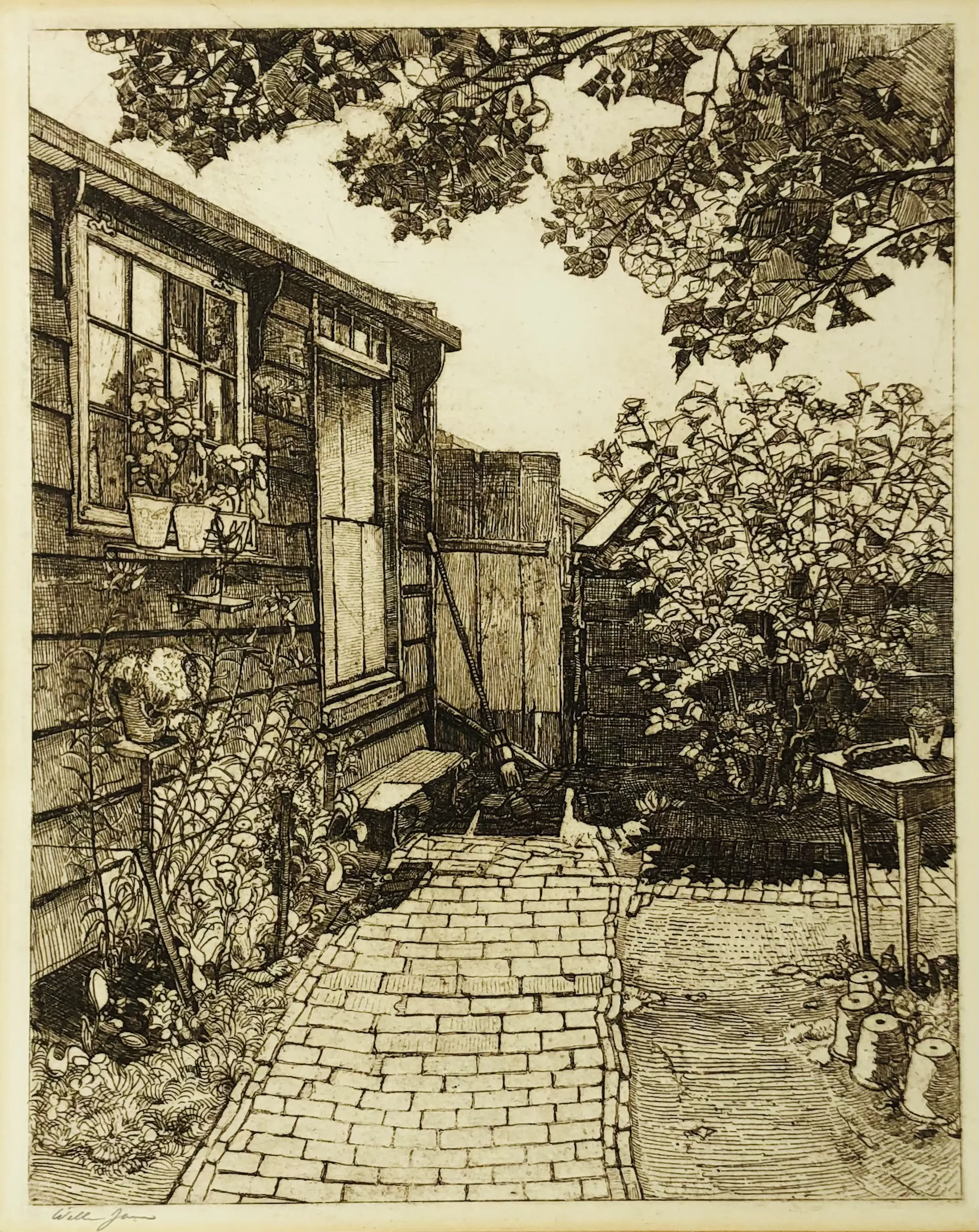 Fraaie ets van Willem Jansen (1892-1969). Werk op leeftijd, is ietwat egaal verkleurd.
