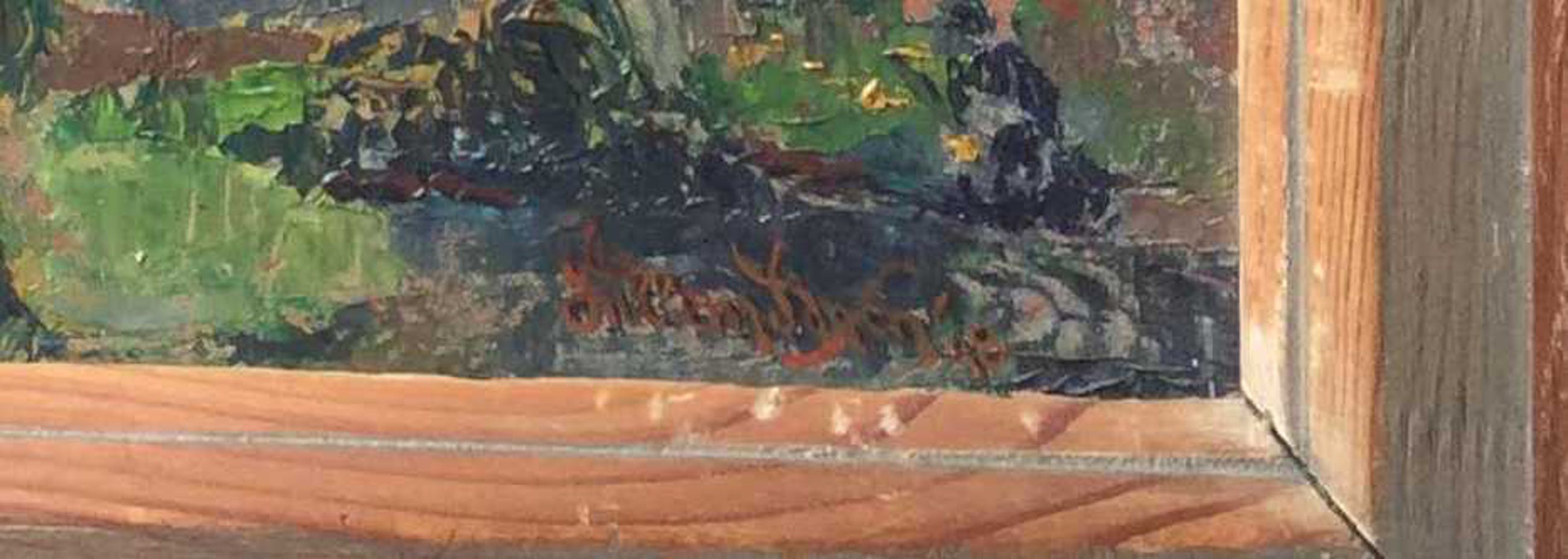 | Vergeelde vernis, oppervlaktevuil, schraal geschilderd waardoor board zichtbaar is. Lijst bevat oppervlaktevuil en slijtschade door de tijd. | |