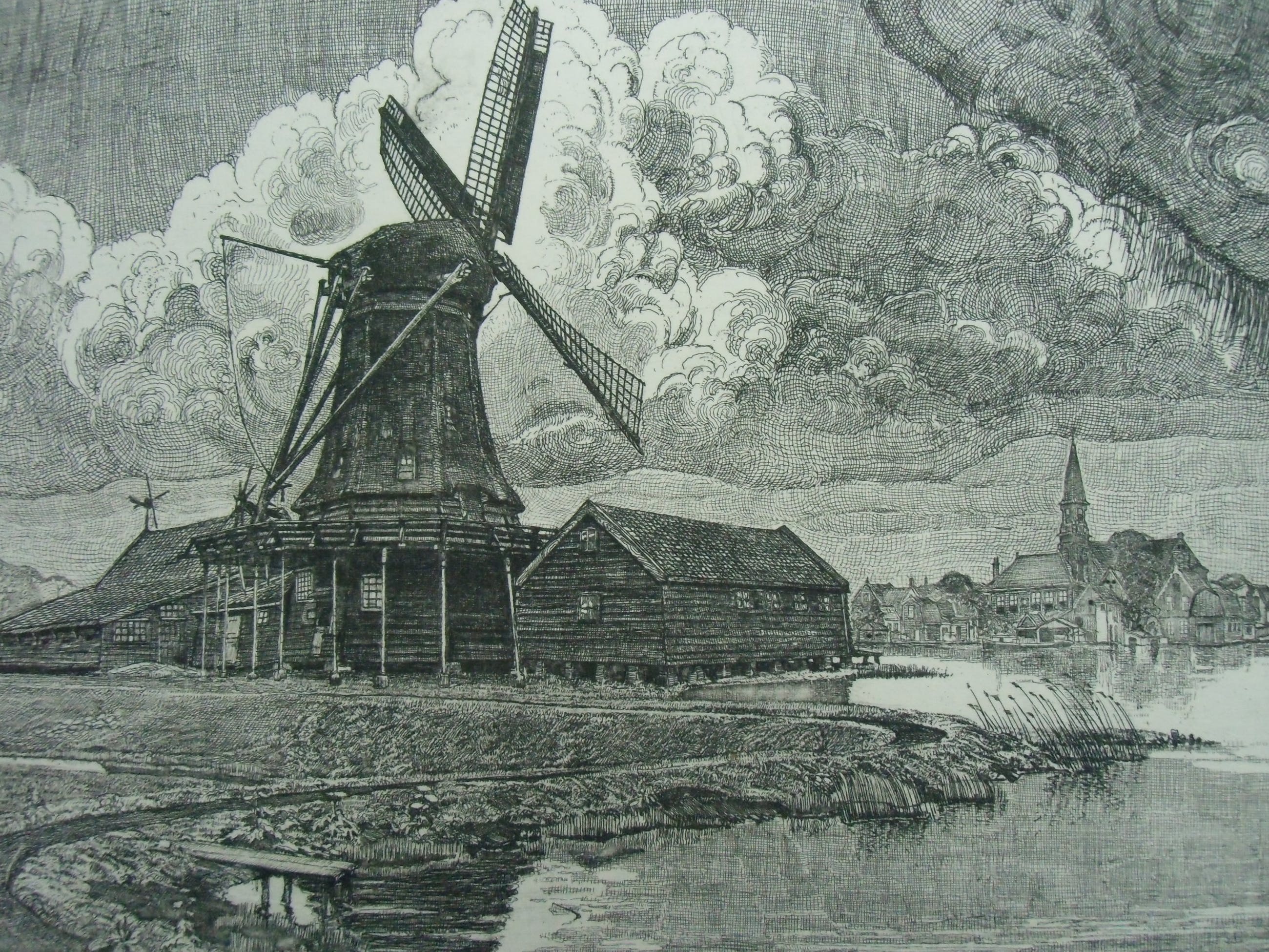 Doorwerkte ets van Willem Jansen uit de eerste helft van de vorige eeuw. Onberispelijke prent , betiteld en gesigneerd met potlood. Monogram in de plaat. Afgedrukt op geschept papier.