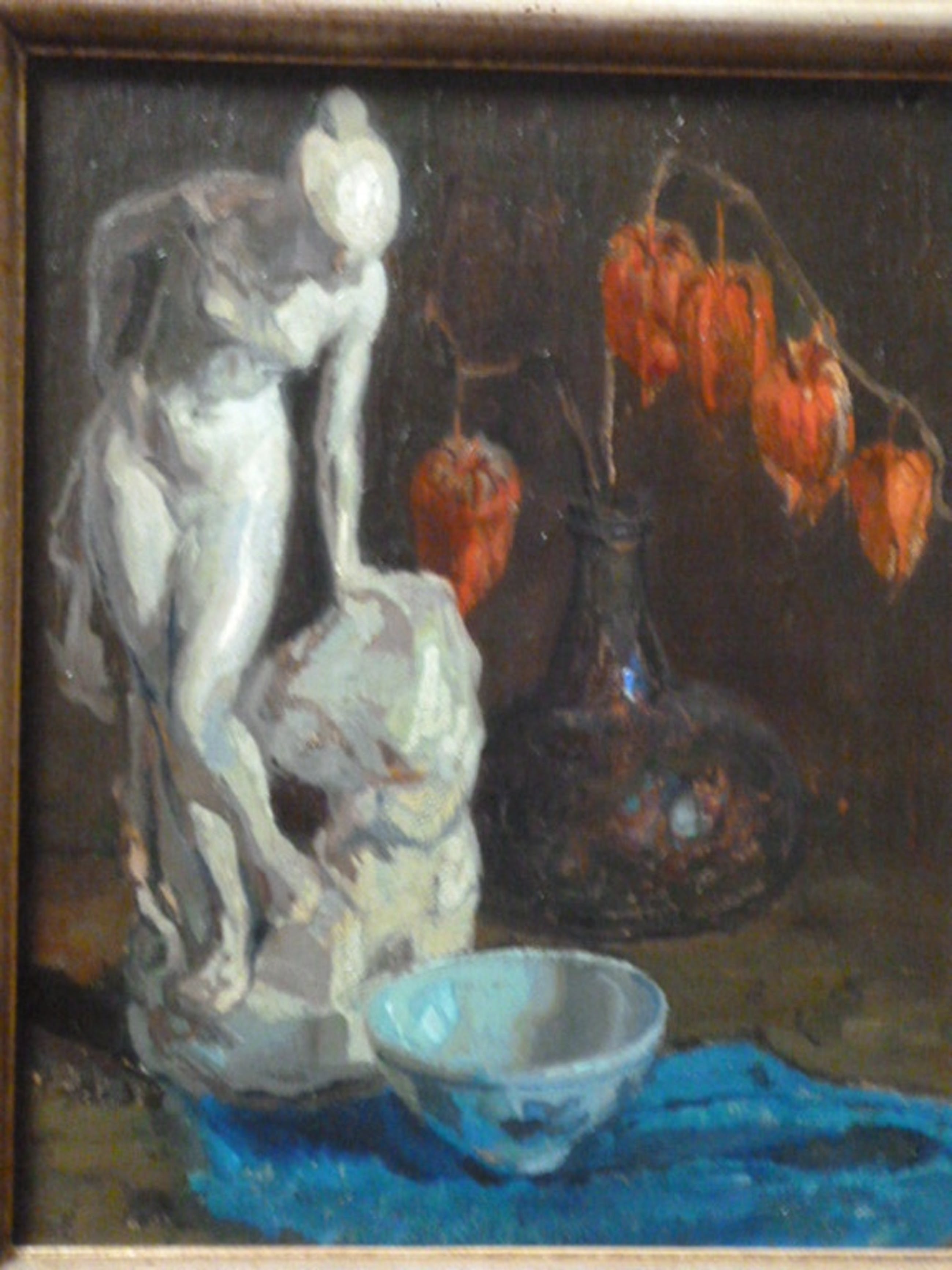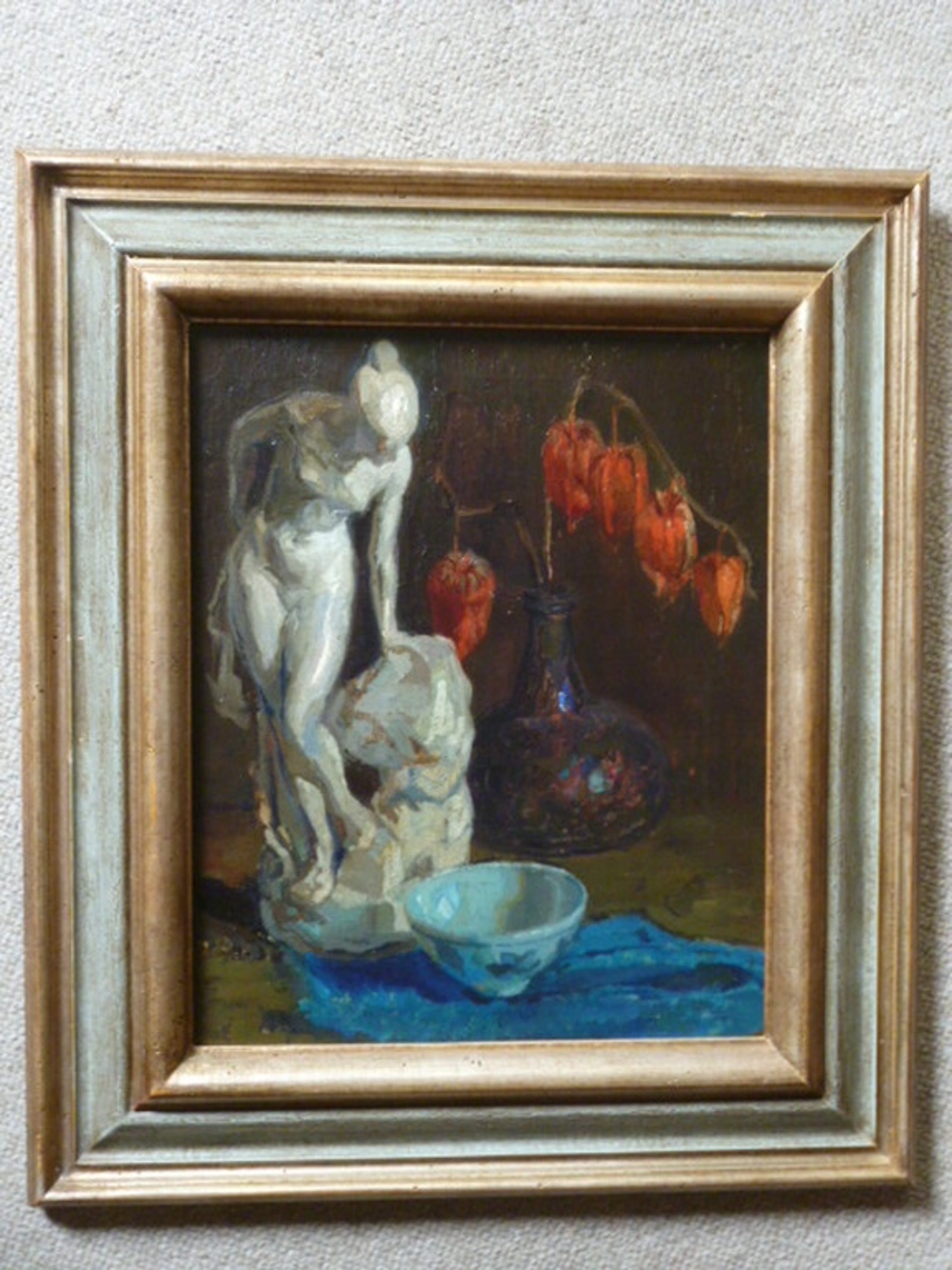 Gesigneerd rechtsboven. Doekmaat 43 x 35 cm.