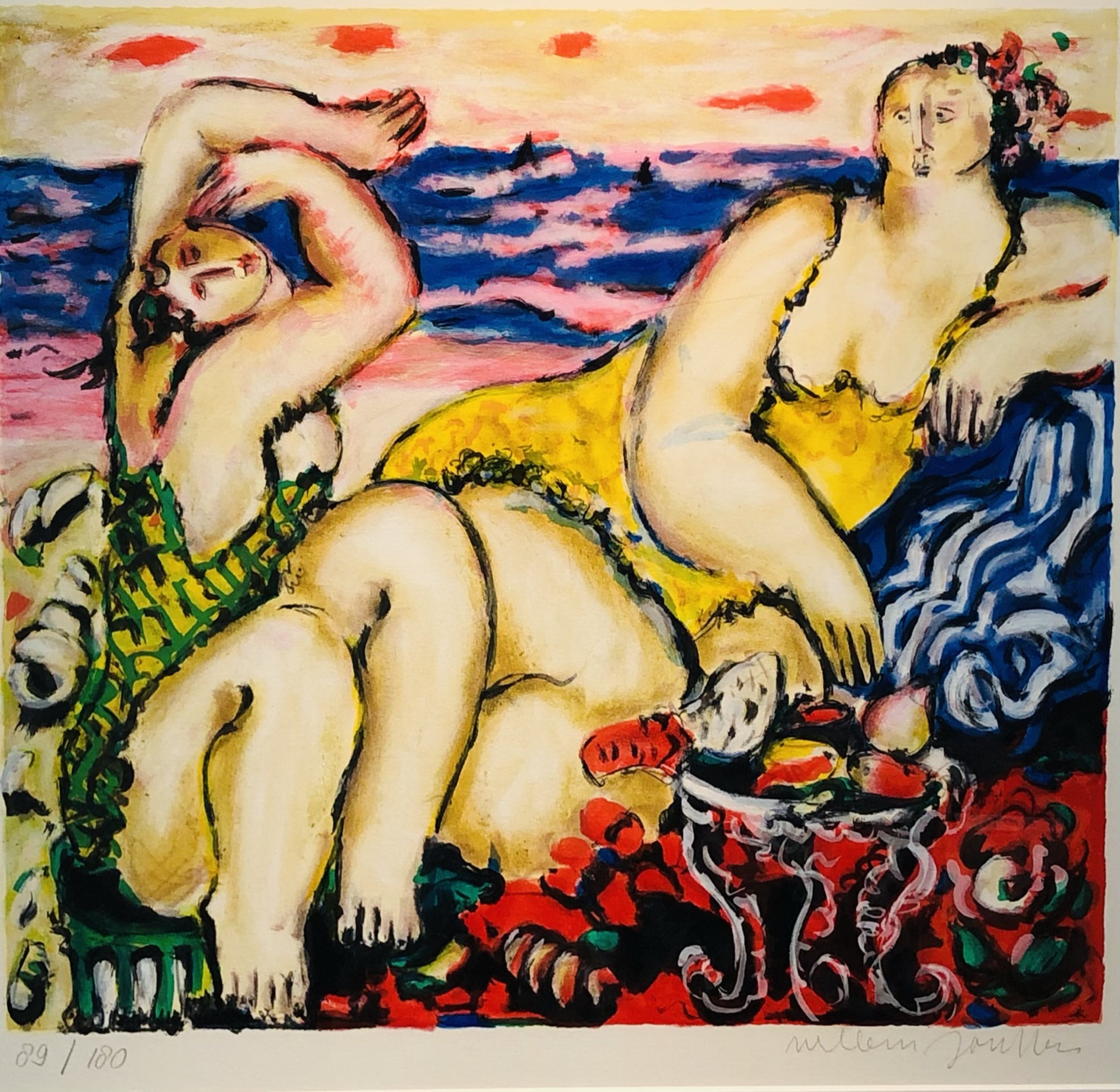 Vrolijk werk van Willem Janssen . Een werk dat zo aan de muur kan worden gehangen! U kunt het werk vooraf komen bekijken in de Schatkamer van galerie Rotor in Gorcum, na aankoop afhalen of verzenden per koerier met lijst of zonder lijst per aangetekende post toegestuurd krijgen. Het werk zit in een prima maar gebruikte lijst. De foto is door het glas van de lijst heen genomen.