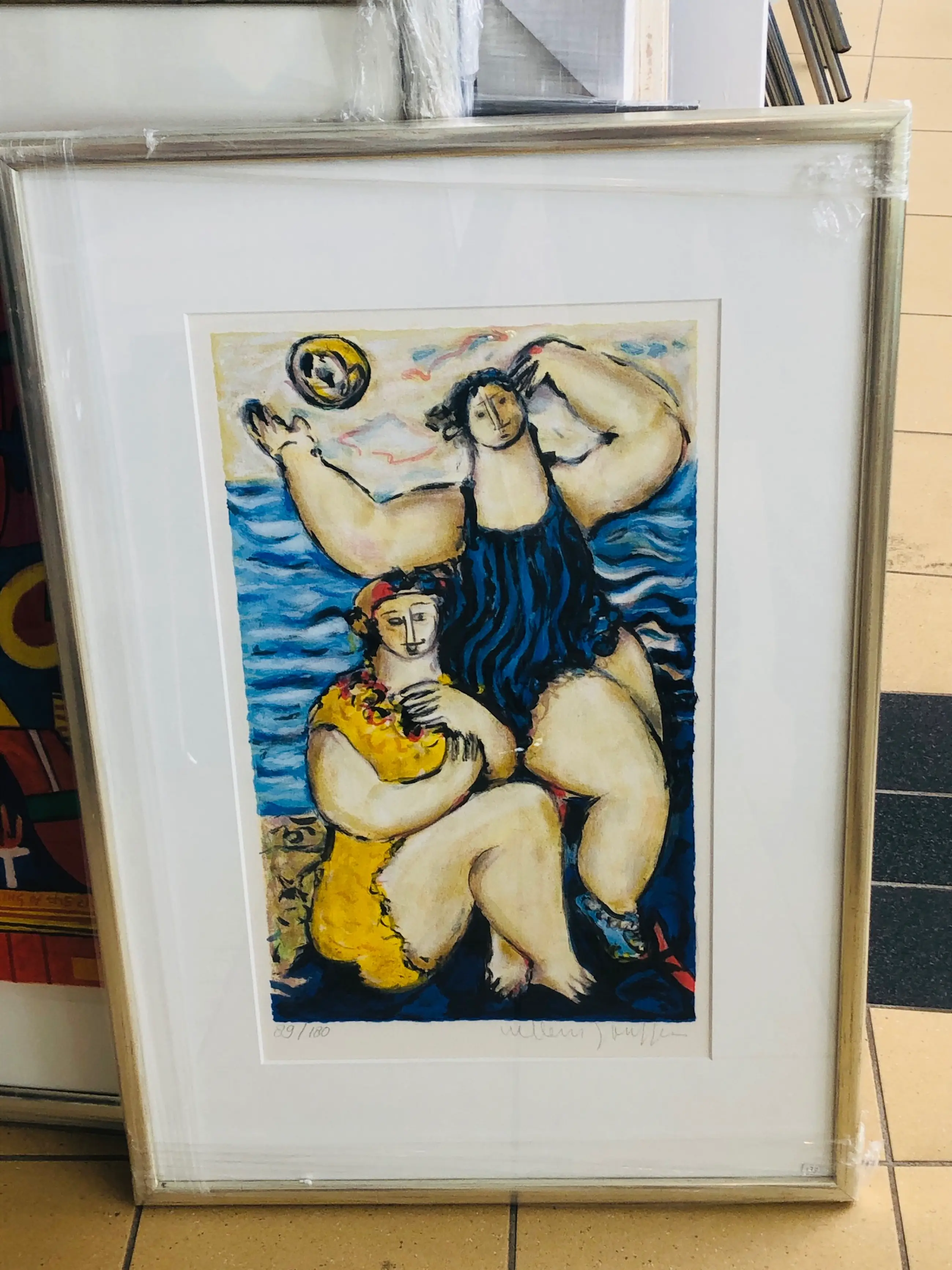 Vrolijk werk van Willem Janssen . Een werk dat zo aan de muur kan worden gehangen! U kunt het werk vooraf komen bekijken in de Schatkamer van galerie Rotor in Gorcum, na aankoop afhalen of verzenden per koerier met lijst of zonder lijst per aangetekende post toegestuurd krijgen. Het werk zit in een prima maar gebruikte lijst. De foto is door het glas van de lijst heen genomen.