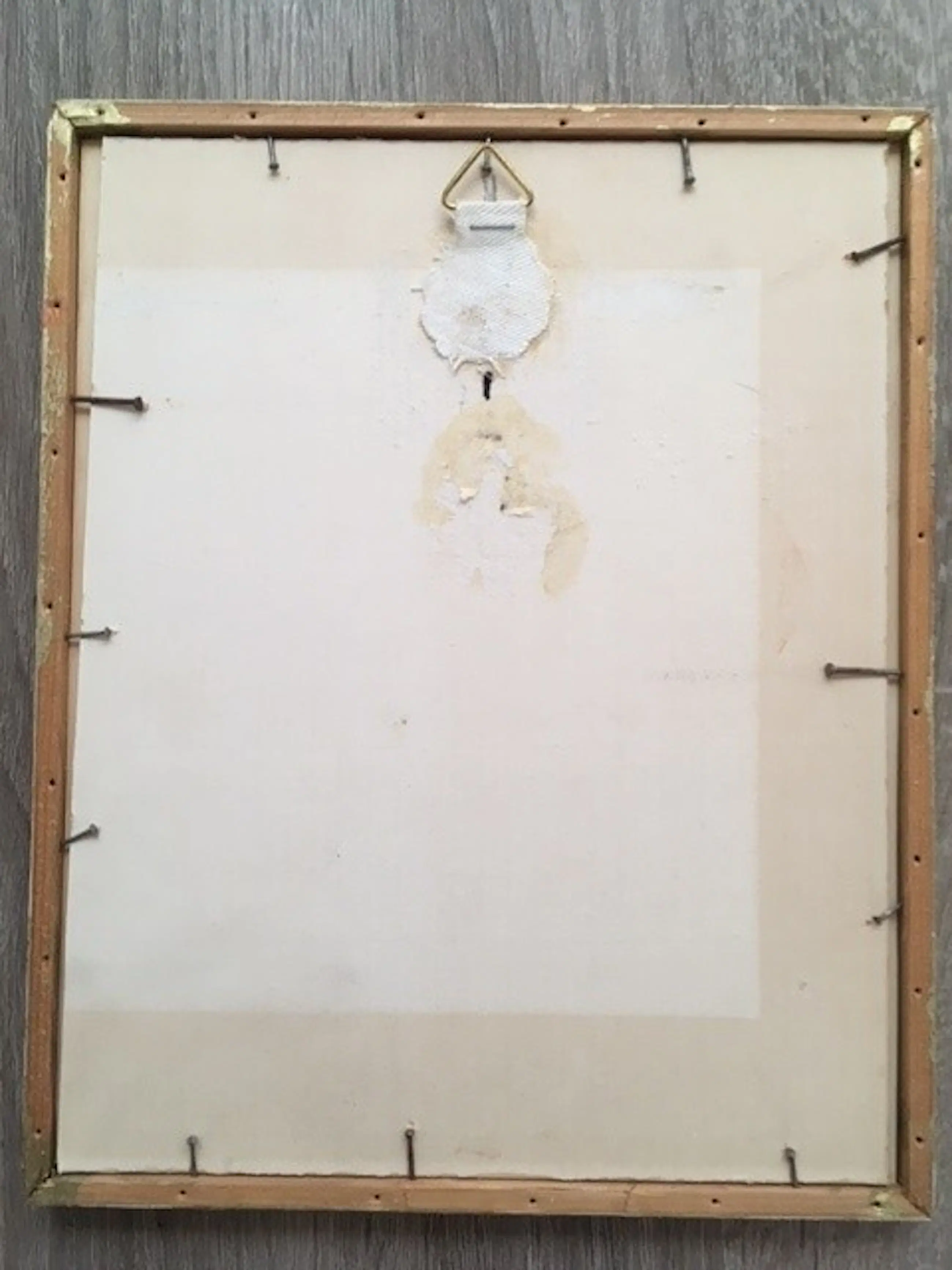 zie foto's portret is vergeeld en lijst heeft ouderdomssporen