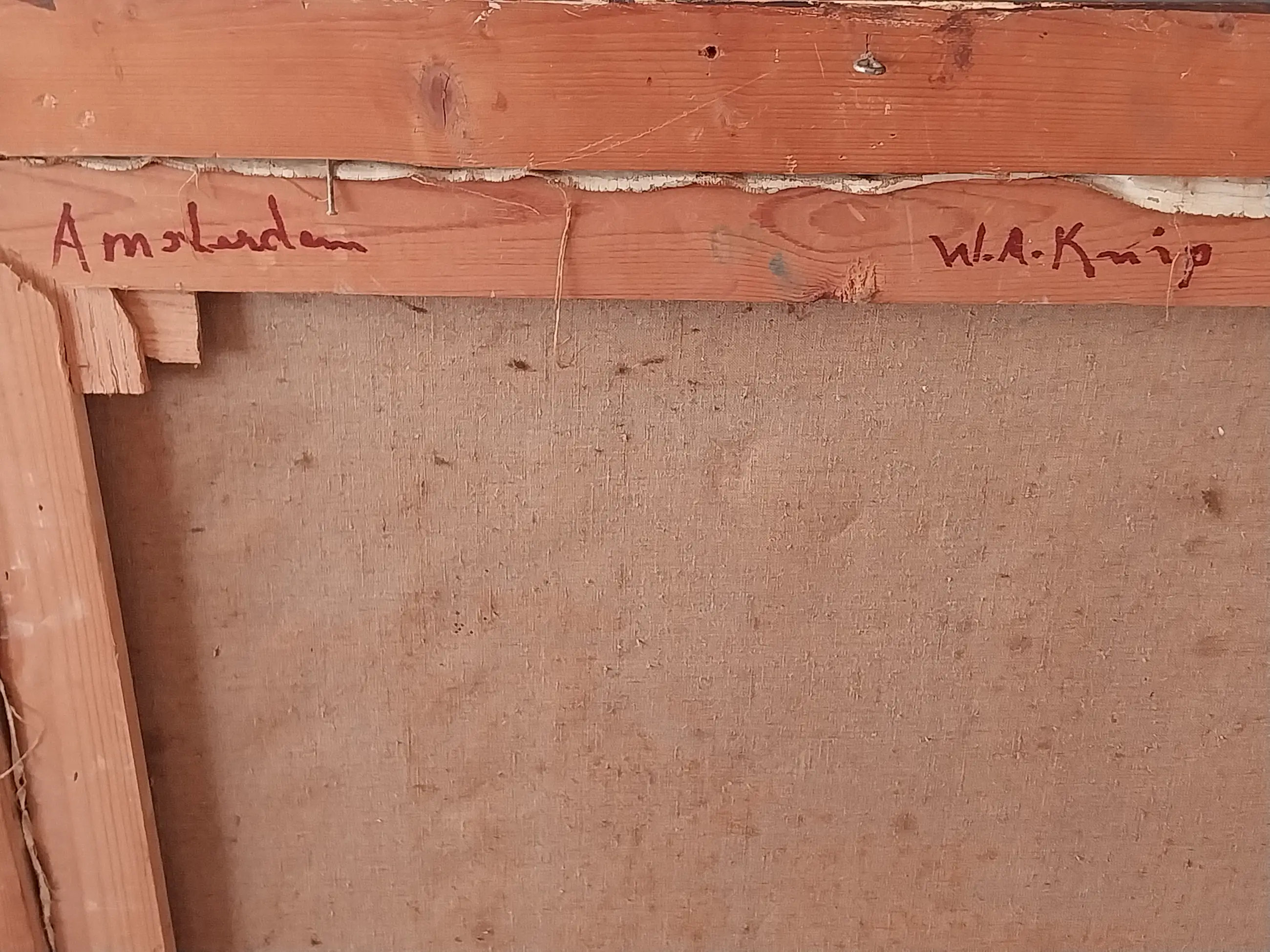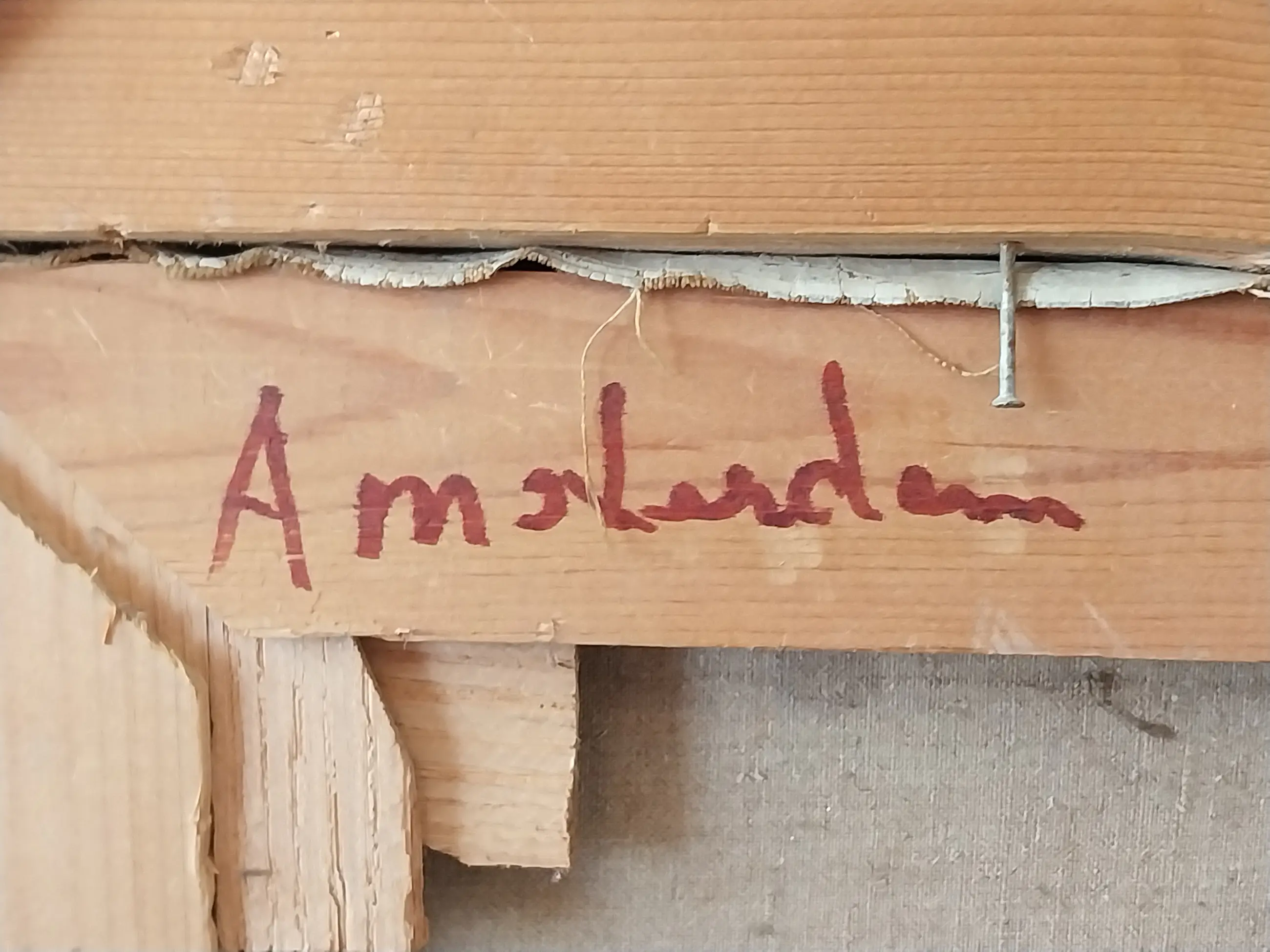 Olieverf schilderij van Amsterdam gemaakt door Willem Knip 1967. Oude omlijsting zie de foto's voor een eigen beoordeling.