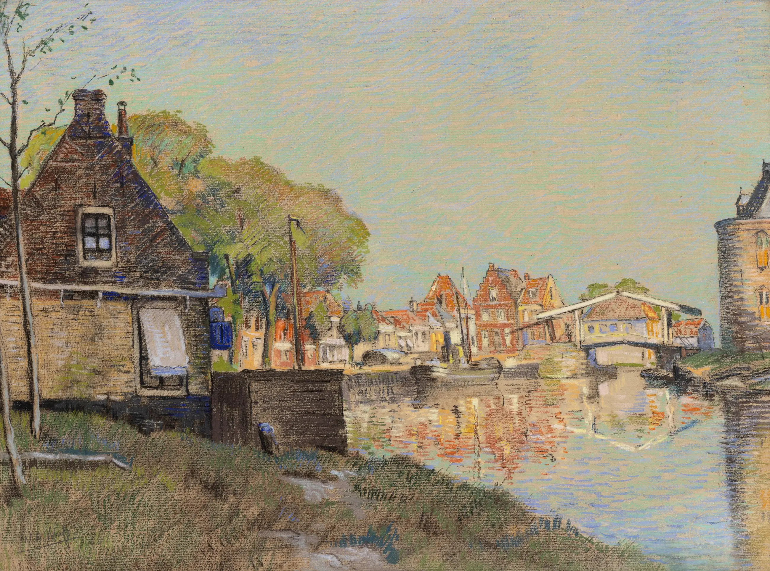 Daarbij werd hij als impressionist steeds weer aangetrokken door het spiegelende water en de activiteiten rond de boten. De Bretonse havens van Knip zijn goede voorbeelden – ze tonen soms verwantschap met die van zijn artistieke vriend Hendrik Jan Wolter (1873-1952) –, maar ook zijn knappe weergaven van het drukke bootverkeer in de grachten van Venetië zijn bekend.