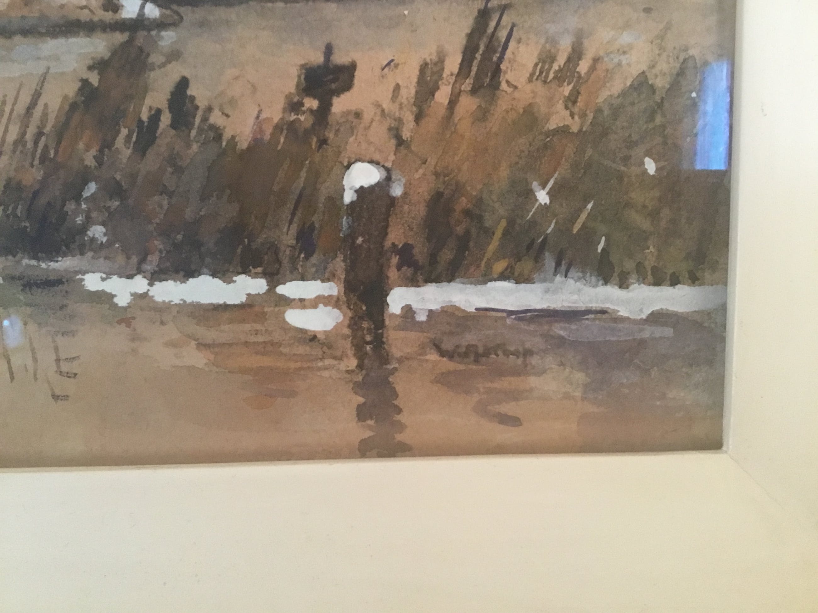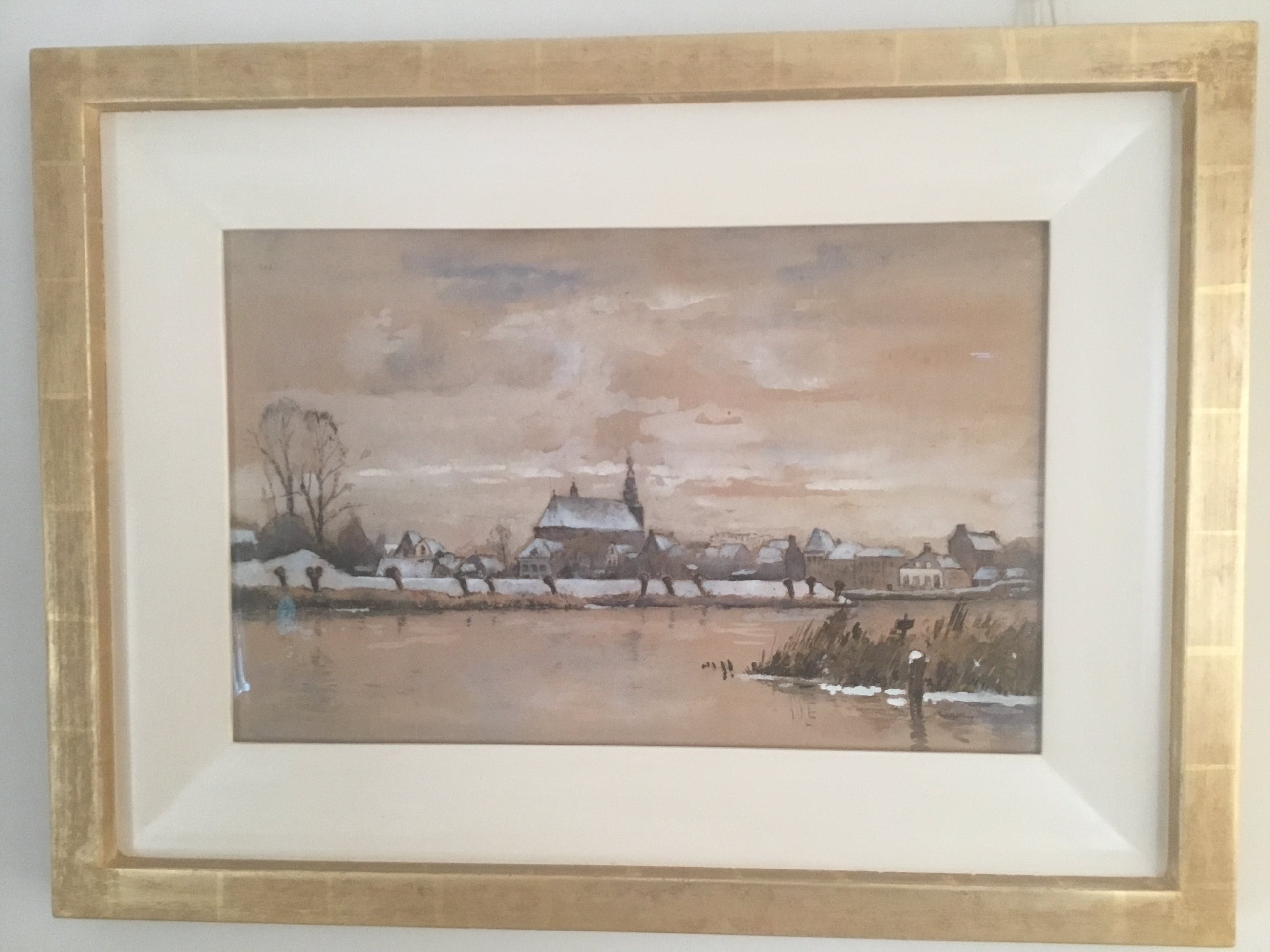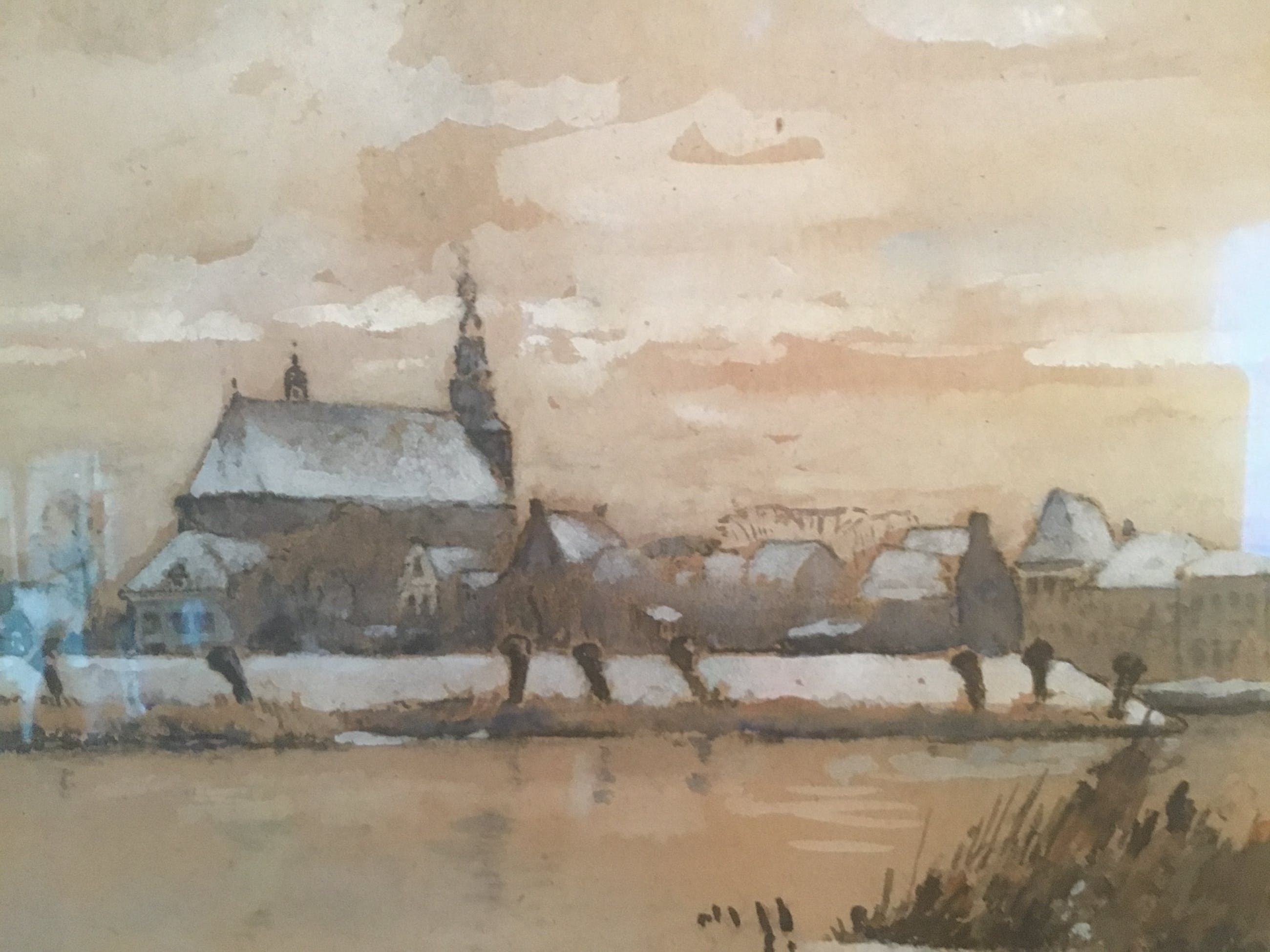 Zeer mooie aquarel in zeer goede staat. De weerspiegeling is van het glas.