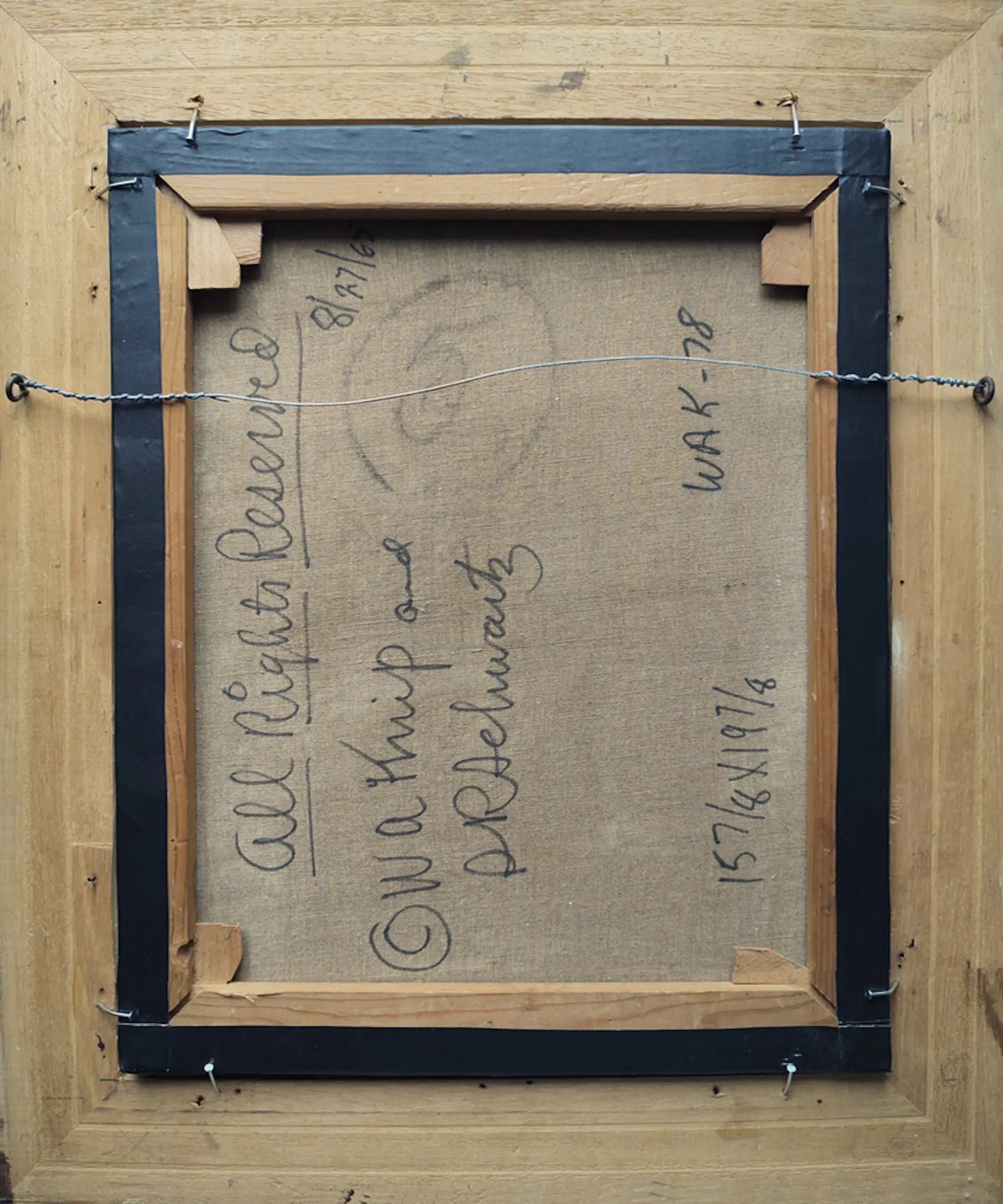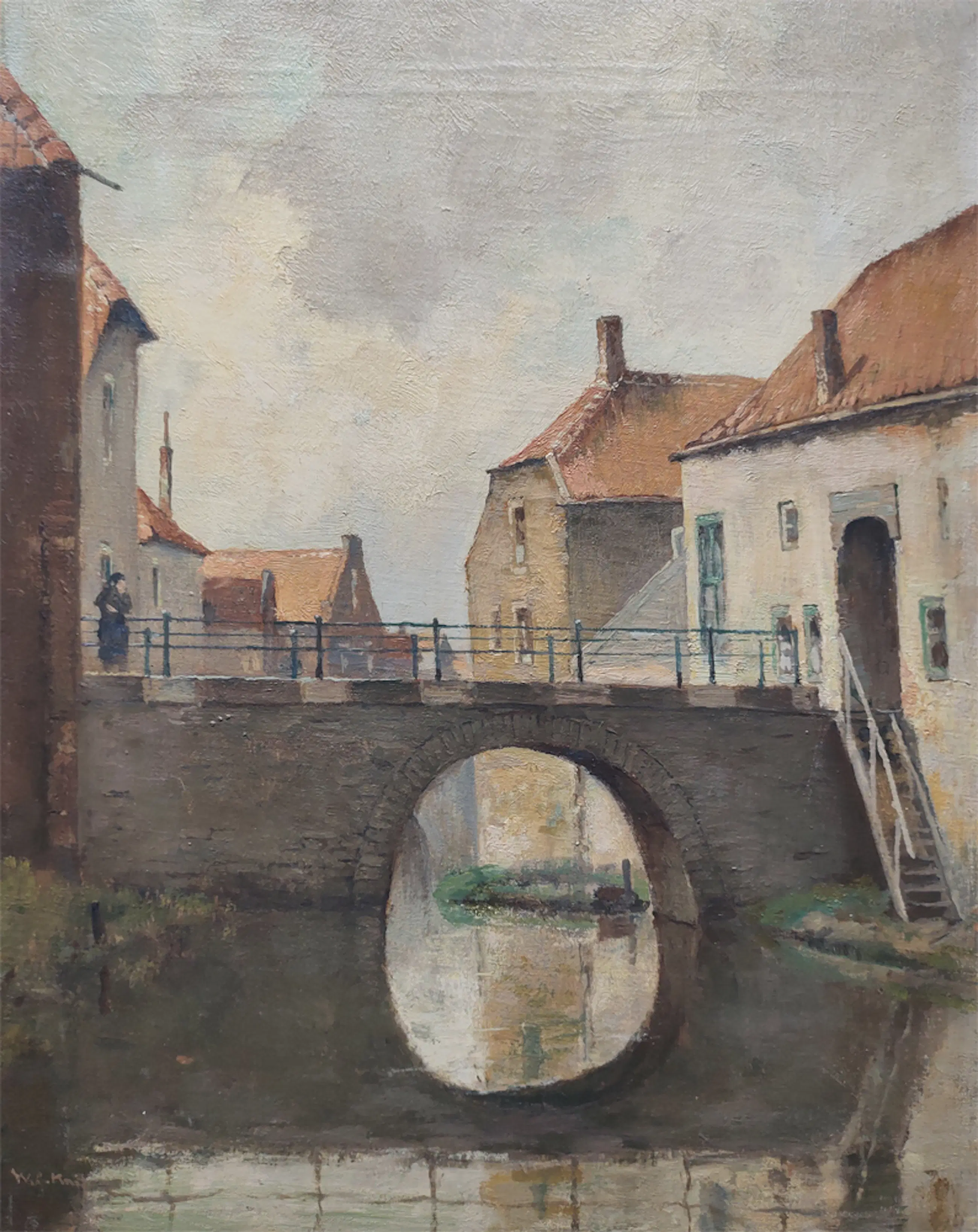 Olieverf op linnen doek met een Hollands stadsgezicht. Gesigneerd linksonder met W.A. Knip. Het copyright en voorraadnummer op de achterkant, (met Engelstalige tekst, datering 27 augustus 1965 en het nummer WAK-78), laten zien dat dit werk in de jaren 60 is bedoeld voor galerieverkoop richting de internationale markt.