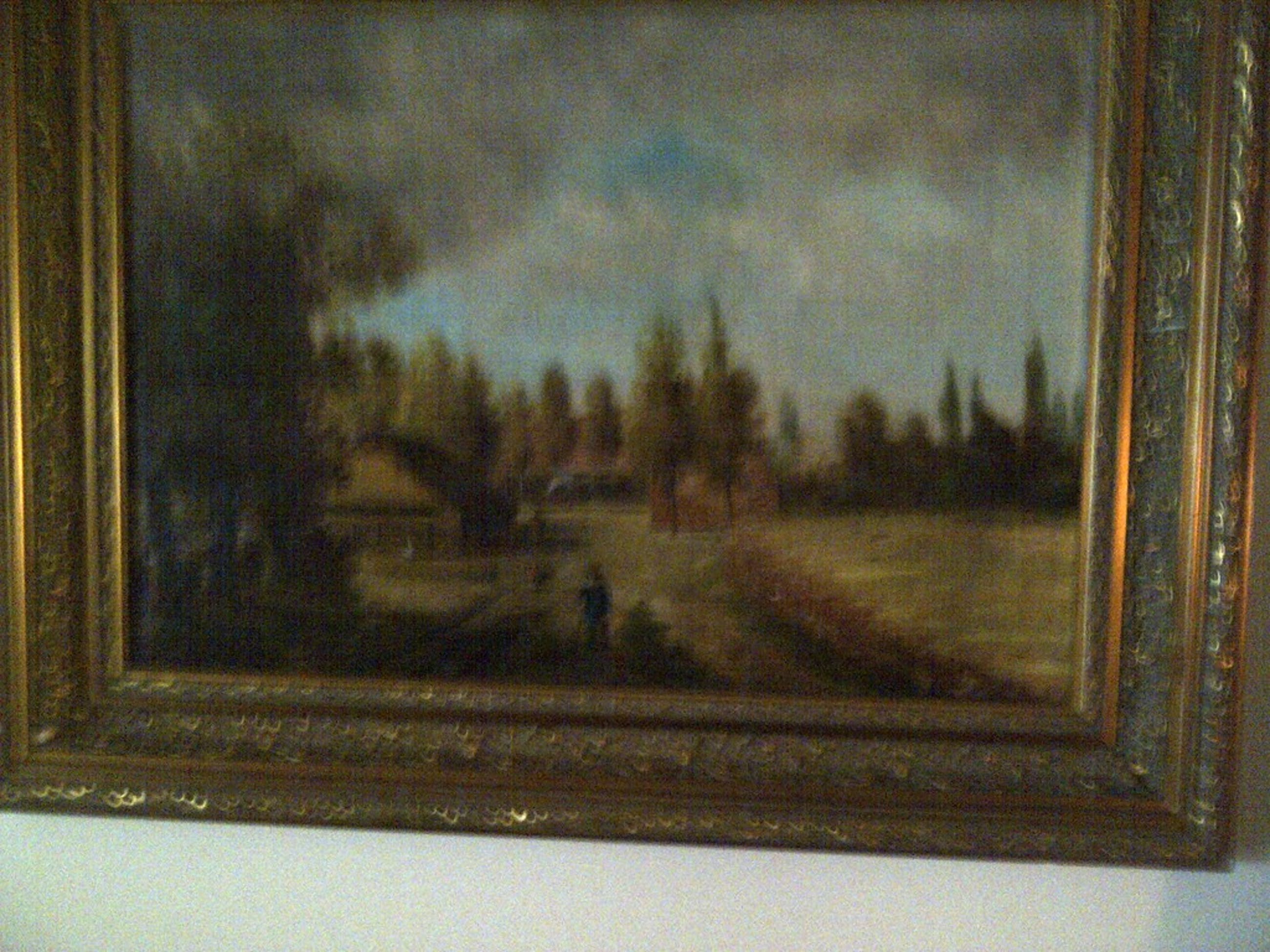 schilderij van knip henri periode van 1850 boerenerf .ingekaderd in vergulde kader in perfekte staat .