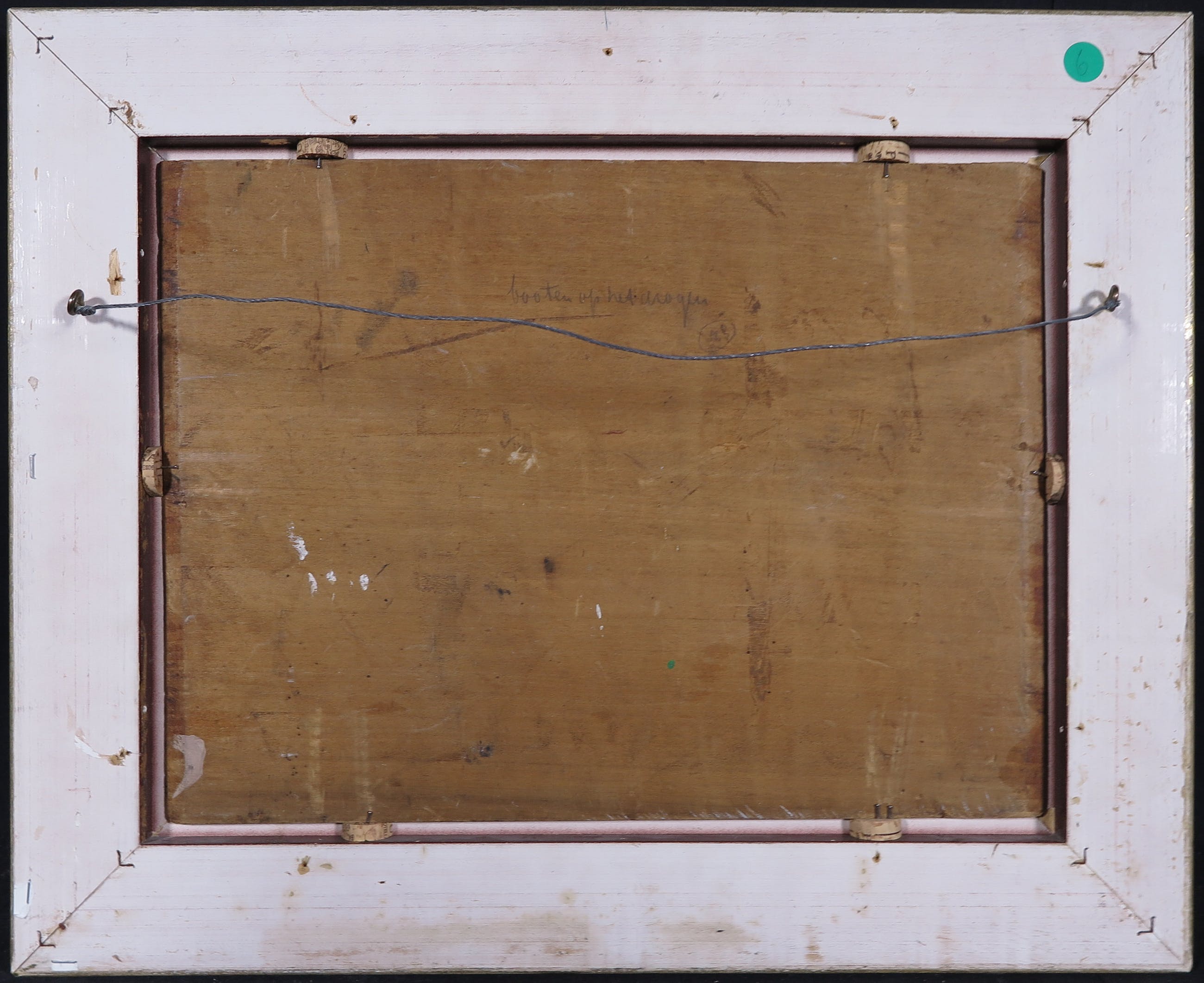 | Dun scheurtje in het paneel door werking van het hout (linksmidden, circa 10 cm, zie foto's). | |