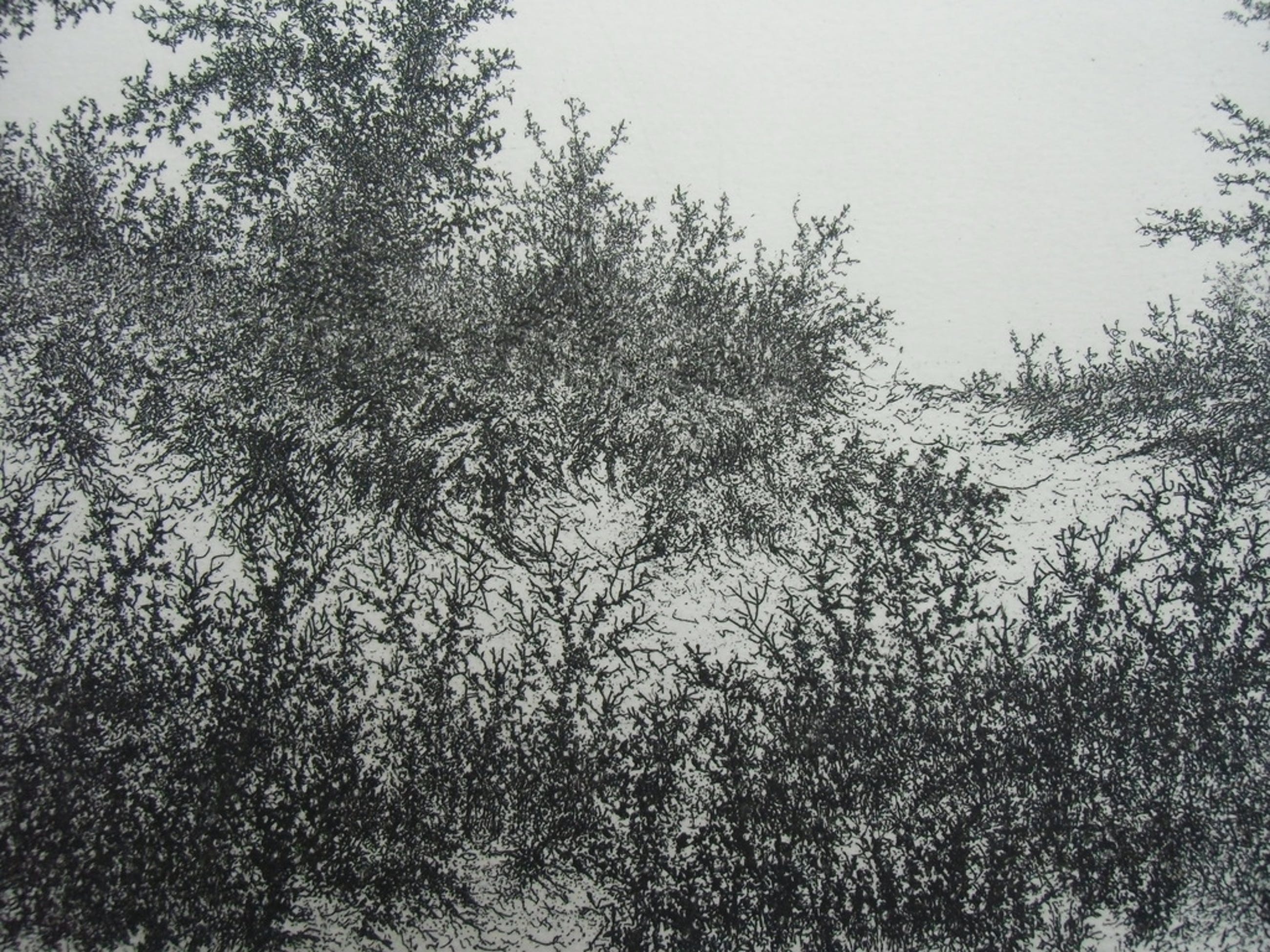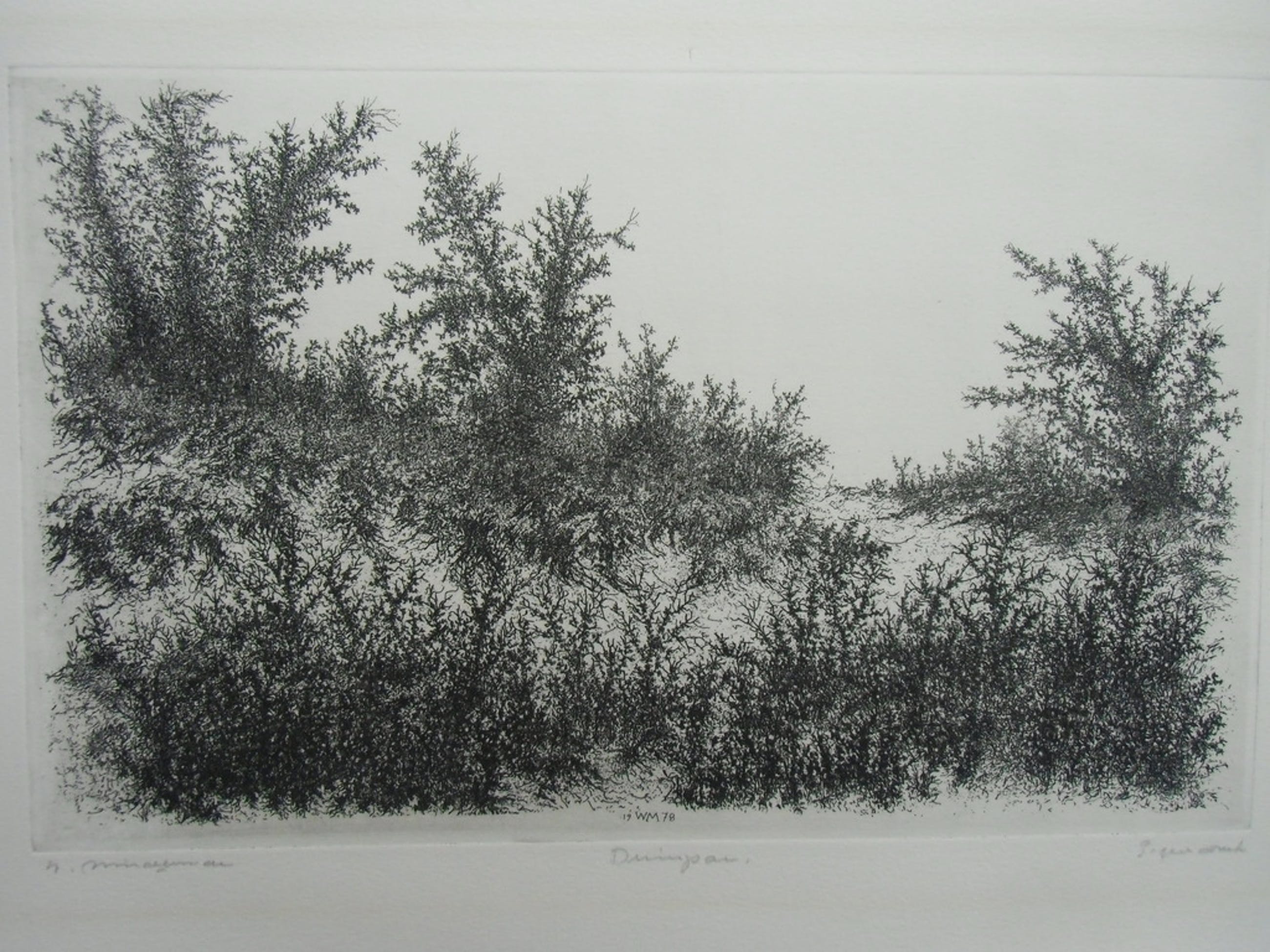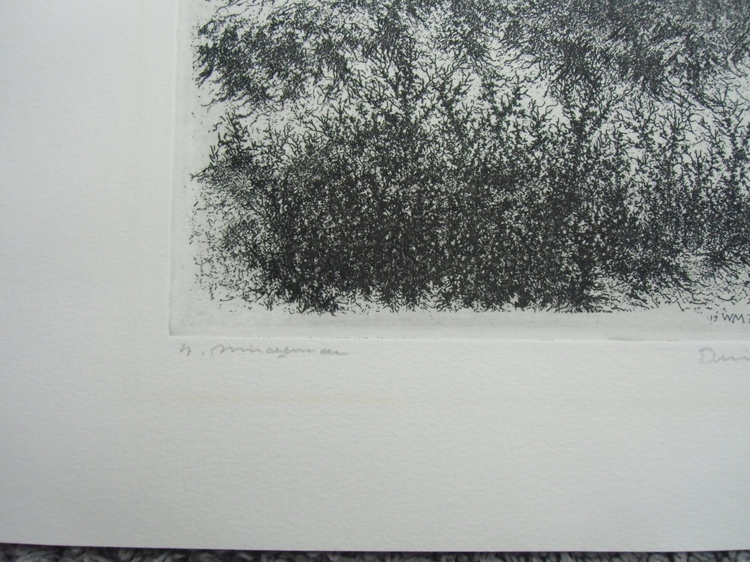 Deze ets op geschept papier heeft een beeldformaat van 20.5 x 33.5 cm. Jaartal 1978.