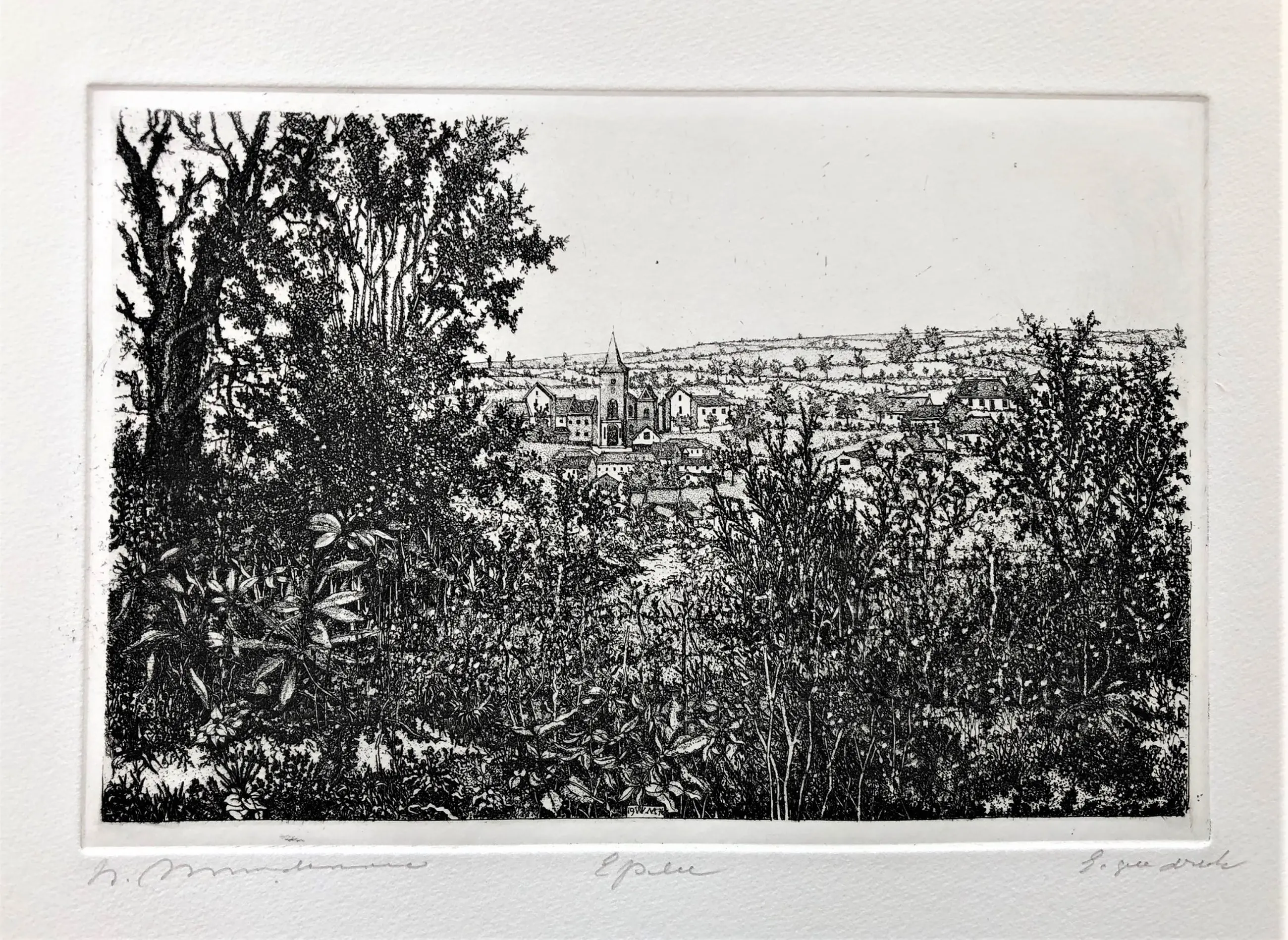 Midden onder in de etsplaat gesigneerd: 19WM76 Linksonder met potlood gesigneerd: W. Minderman Rechts met potlood: Eigen druk
