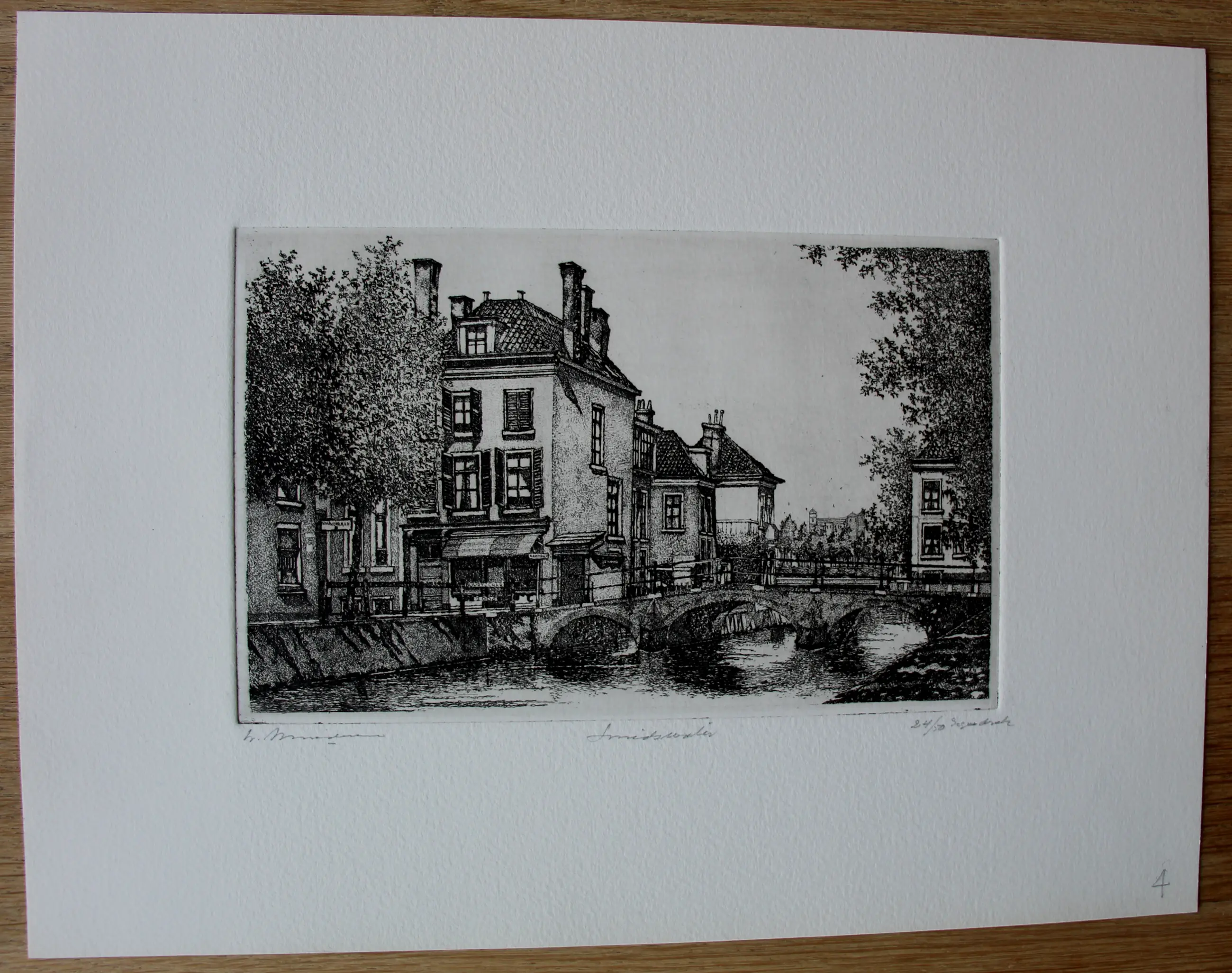 Ets van Willem Minderman. Titel: Smidswater(Den Haag). Oplage: Eigen druk. Afmetingen incl passe-partout: H28 x b35cm. Afmetingen voorstelling: H14 x b21cm. Het werk is linksonder gesigneerd door de kunstenaar. De authenticiteit van het aangeboden werk wordt volledig gegarandeerd. Een certificaat van echtheid kan, op aanvraag, worden gemaild.