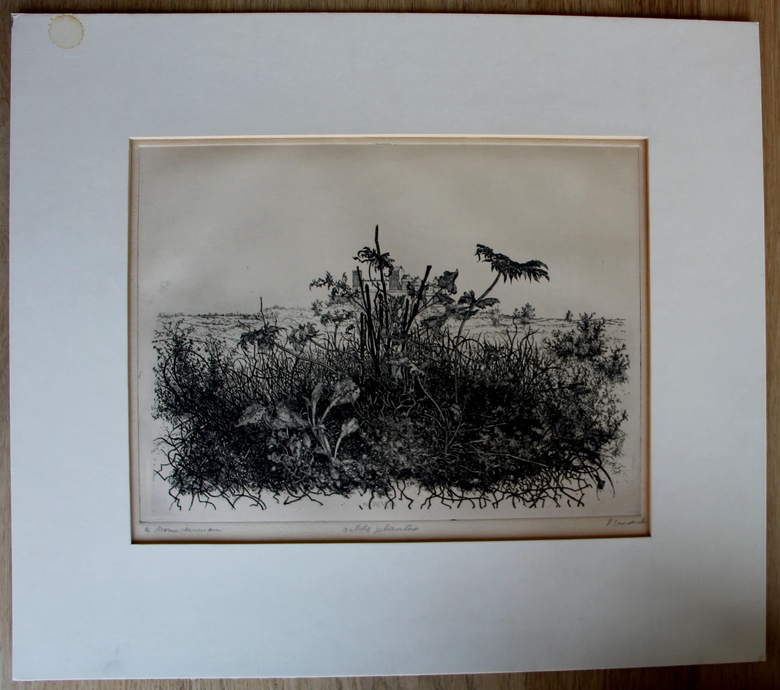 Ets van Willem Minderman. Titel: Wilde planten. Afmetingen incl passe-partout: H37 x b42cm. Afmetingen voorstelling: H22.5 x b28.5cm. Het werk is linksonder gesigneerd door de kunstenaar. De authenticiteit van het aangeboden werk wordt volledig gegarandeerd. Een certificaat van echtheid kan, op aanvraag, worden gemaild.