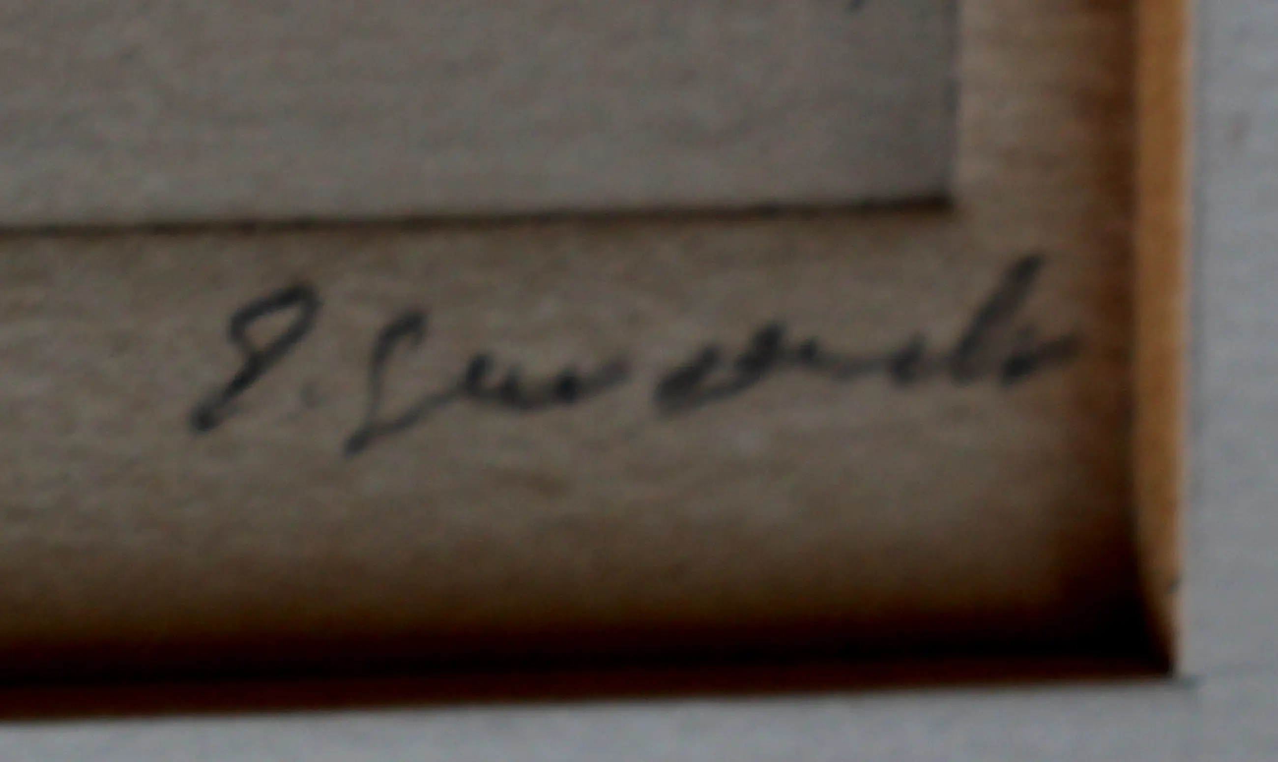 Het werk is verkleurd binnen de randen van het passe-partout.