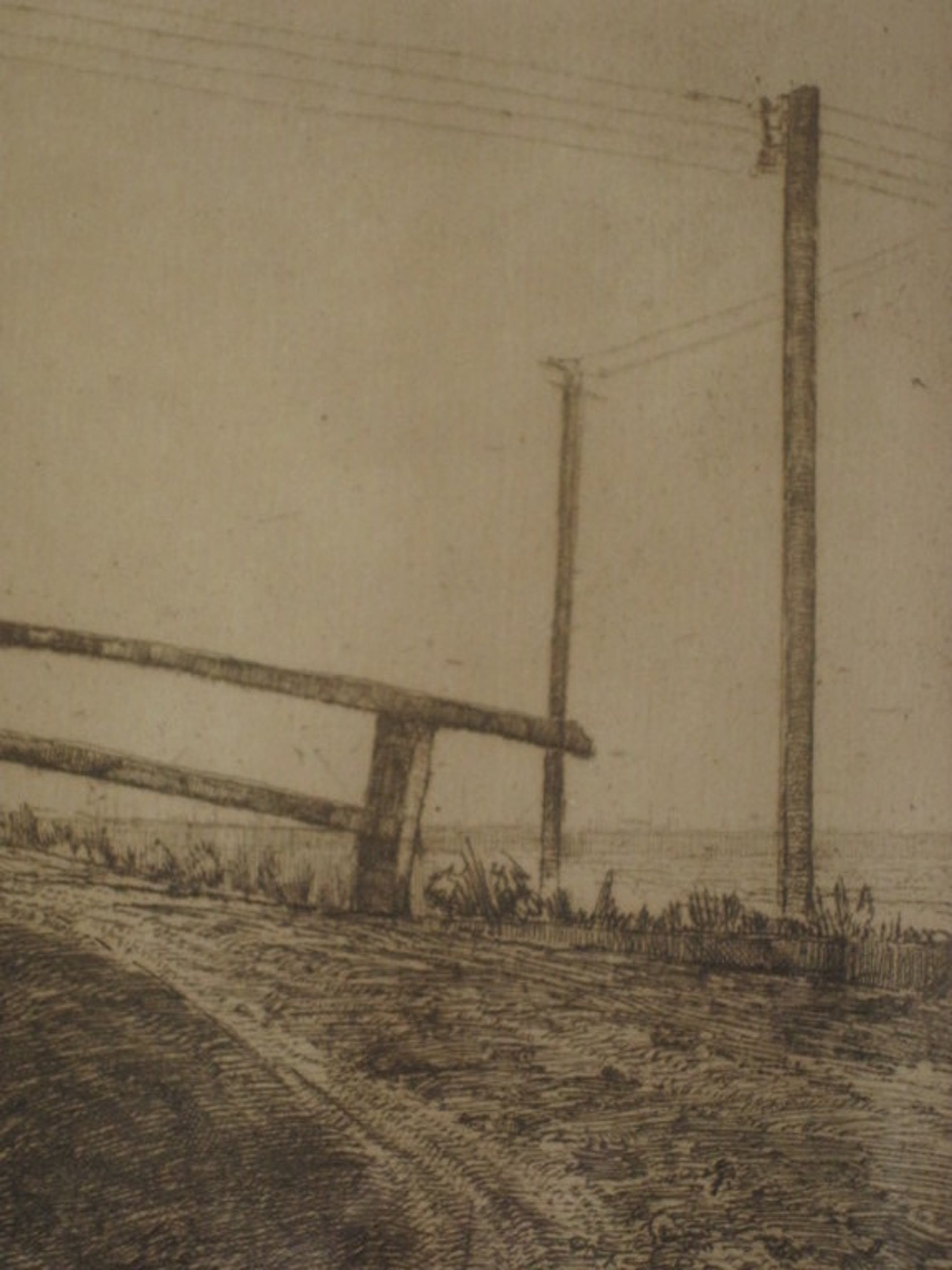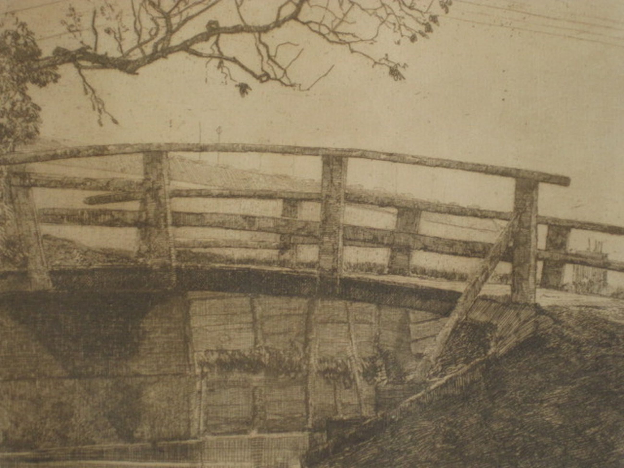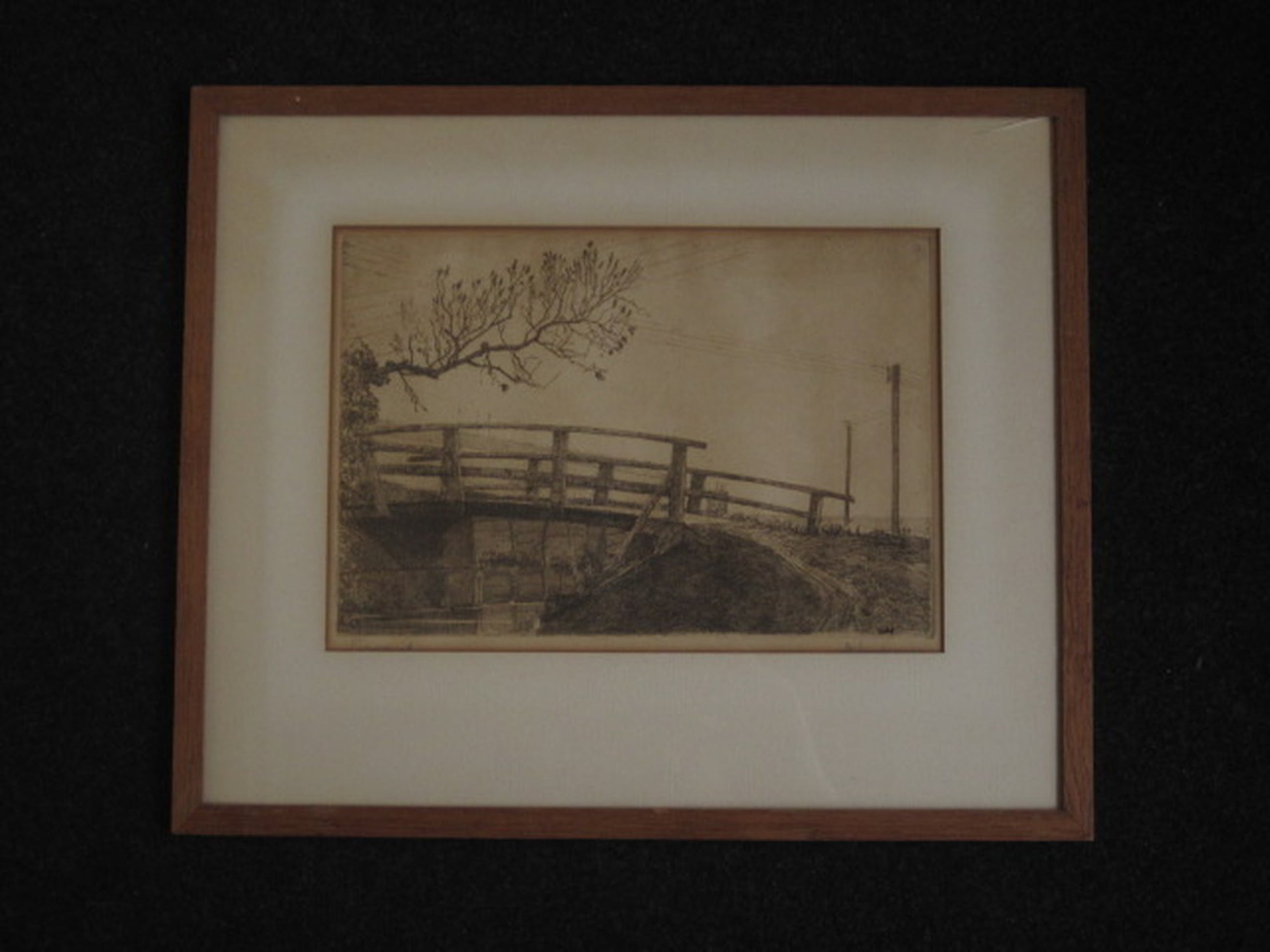 Maten : 45 x 35 (ingelijst) en 30 x 20 cm (ets)