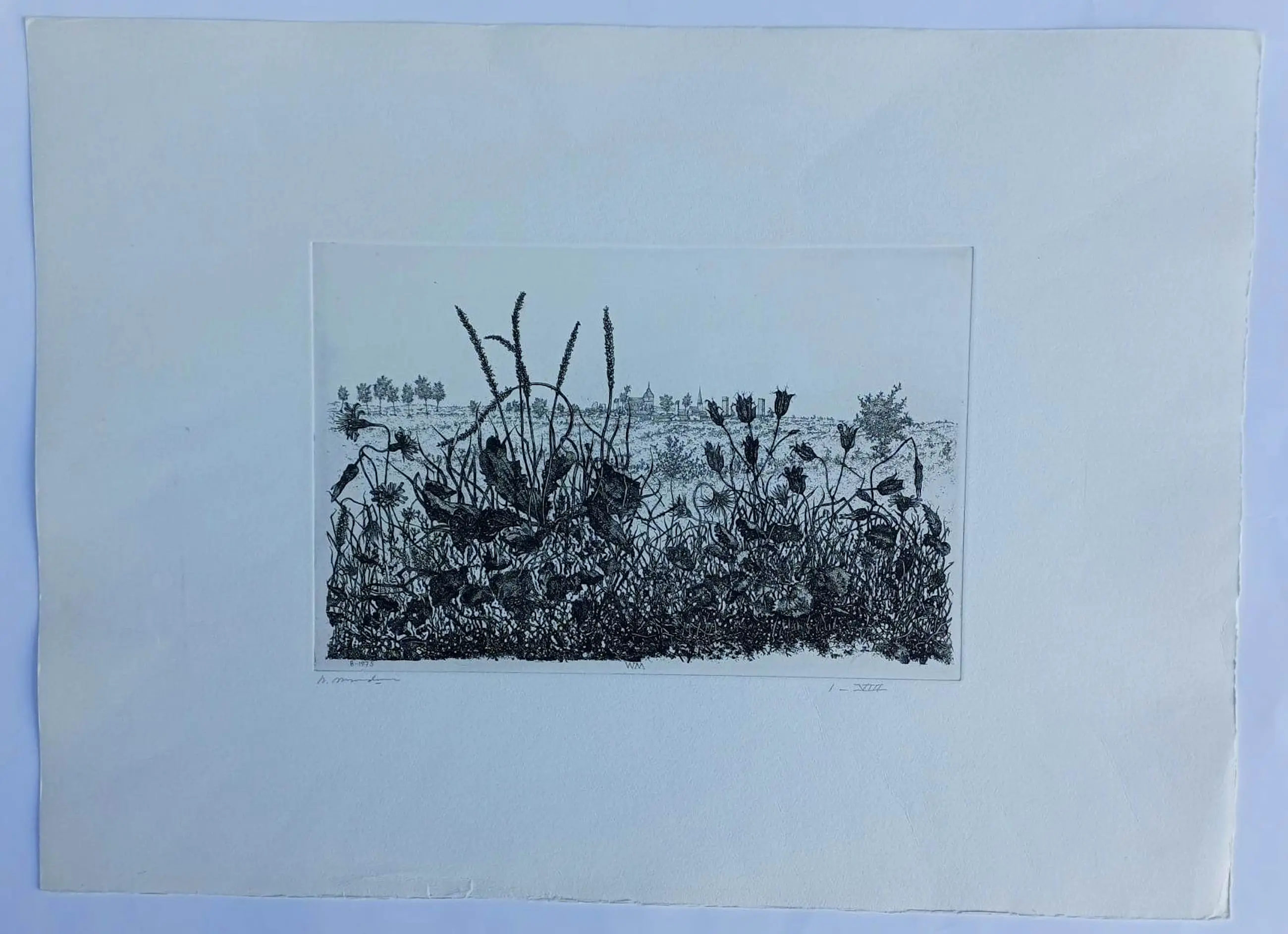 Ets van Willem Minderman. Jaar: 1975. Afmetingen blad: H40 x b55cm. Afmetingen voorstelling: H20 x b30cm. Het werk is linksonder, met potlood gesigneerd, door de kunstenaar. De authenticiteit van het aangeboden werk wordt volledig gegarandeerd. Een certificaat van echtheid kan, op aanvraag, na aankoop worden gemaild.