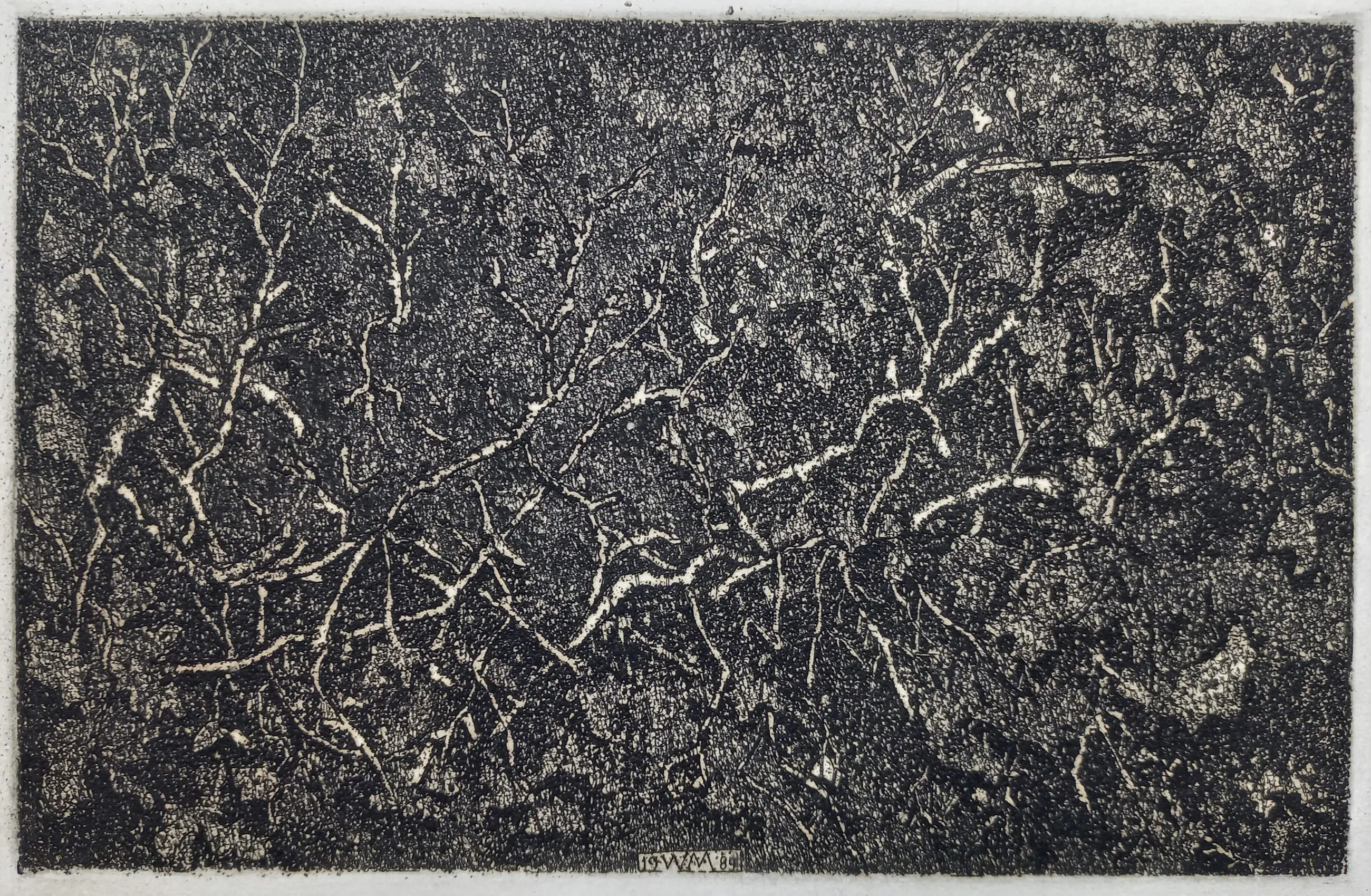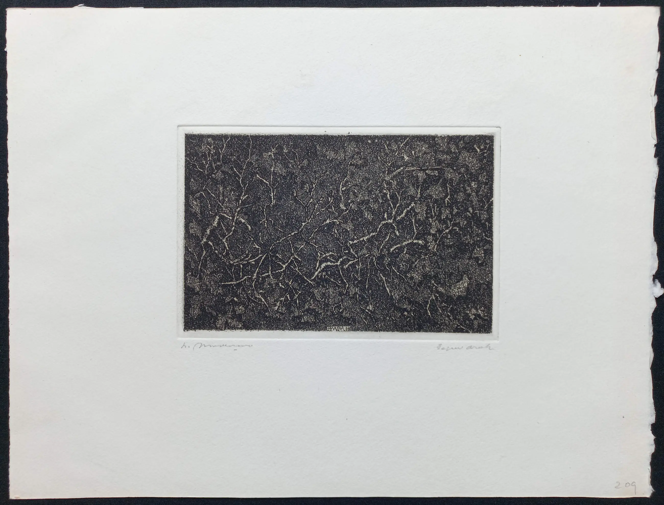 Mooie duistere ets van Willem Minderman. Ets op geschept papier, met potlood gesigneerd, in de plaat gedateerd (‘84) en gemonogrammeerd. In zeer goede conditie.